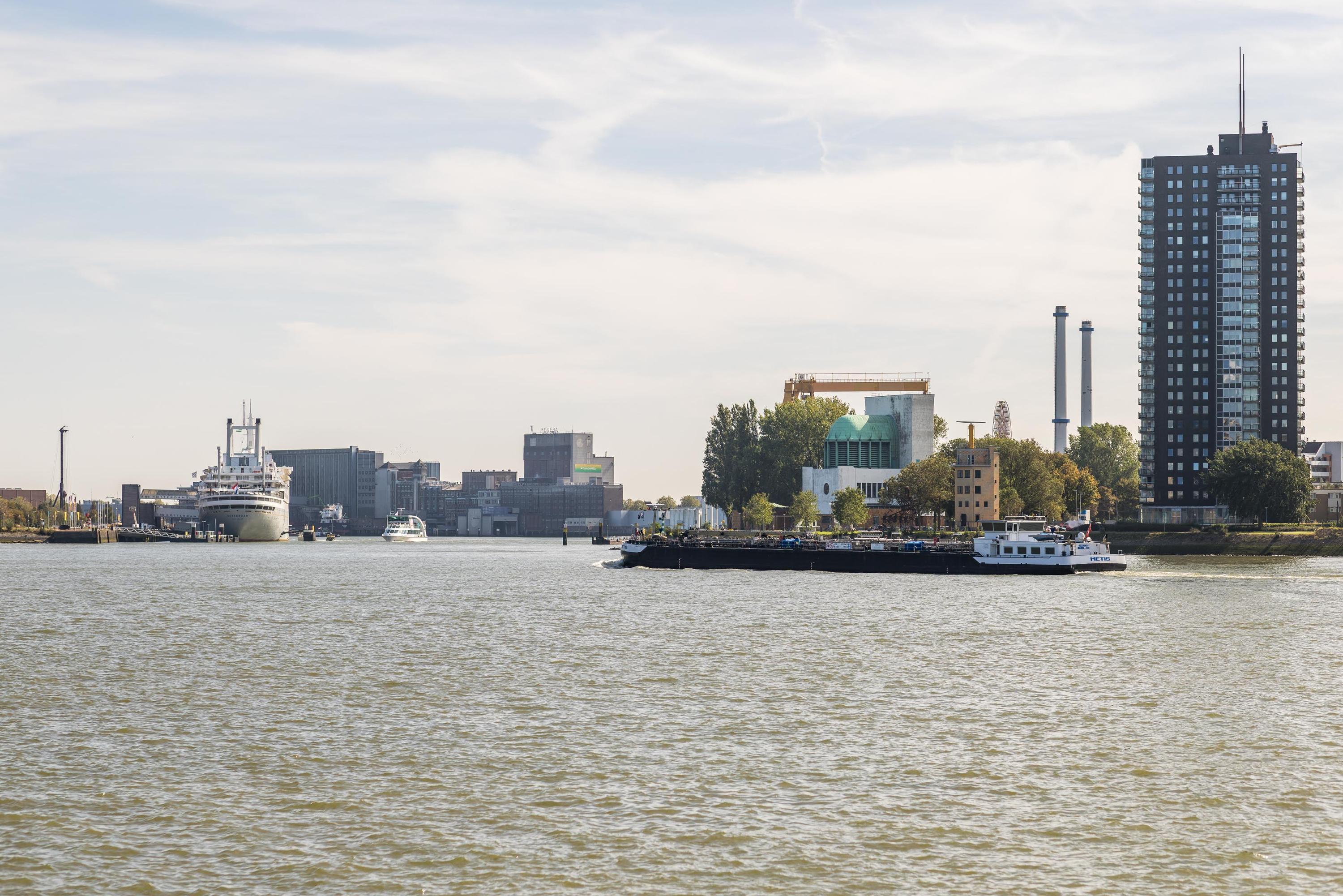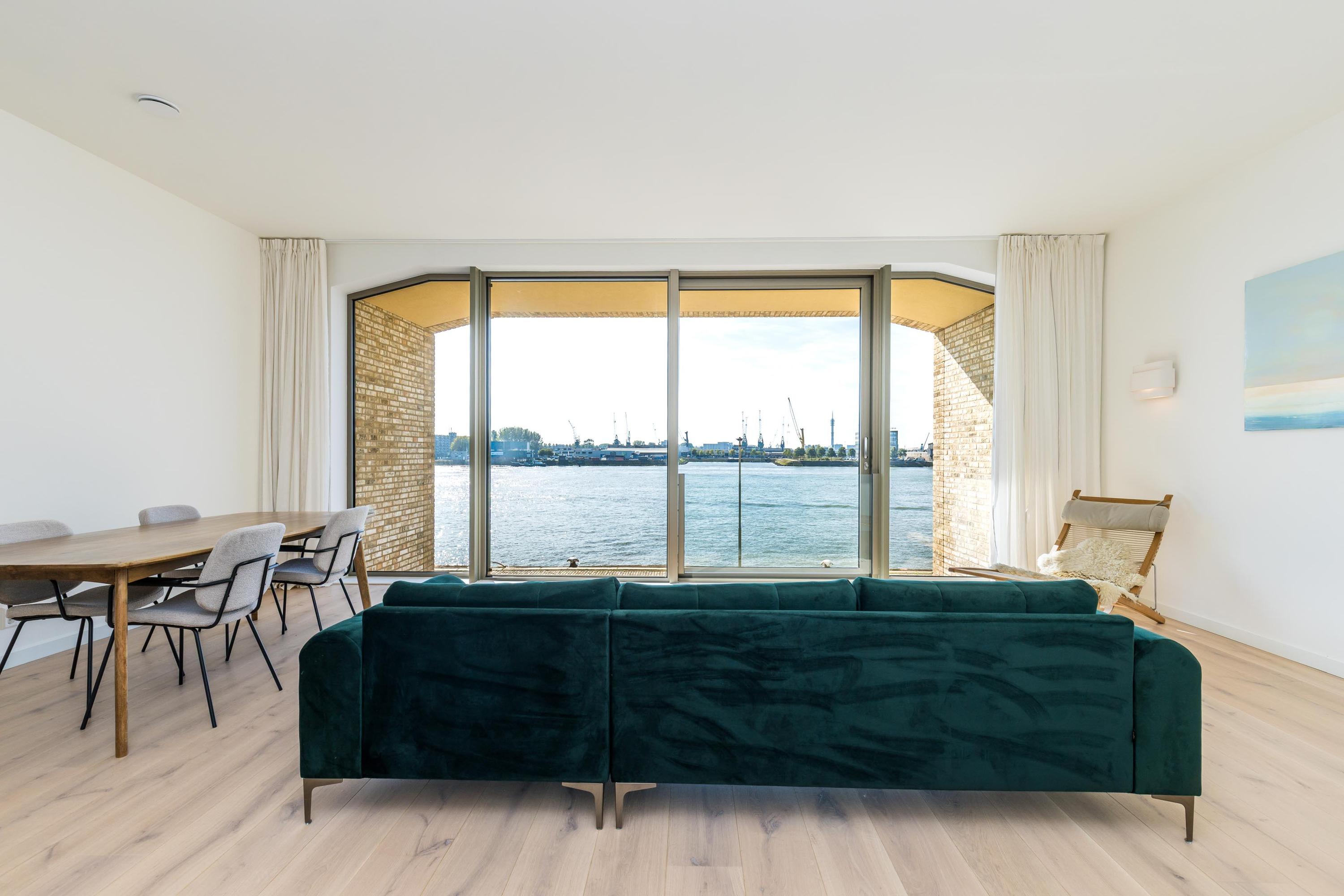 A living painting in your window every day: this spacious and stylishly finished apartment on the Lloydkade offers luxury, space, and panoramic views of the Maas River from sunrise to sunset.