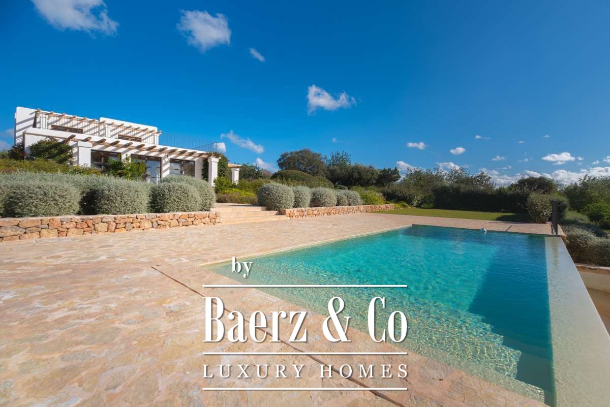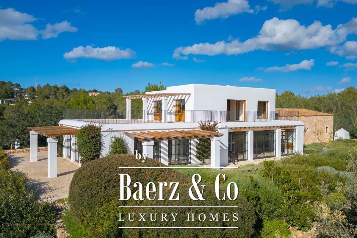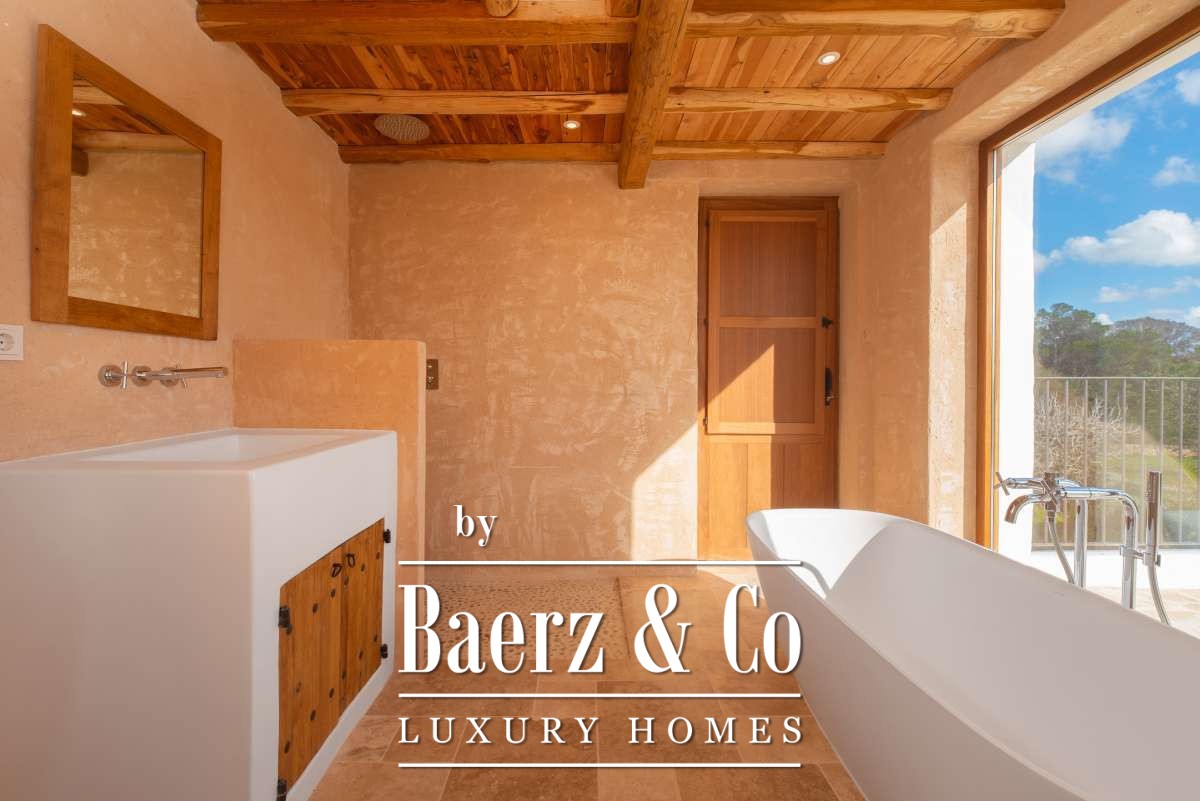 The recently renovated finca blends historic character with contemporary finesse. Every detail of the 620 m² residence, from exposed stone walls to soft, harmonious tones, underlines an enduring elegance. The living areas are open, inviting light and nature into each room, while the seamless integration of kitchen and lounges lends itself to both intimate gatherings and quiet reflection. Six bedrooms and five bathrooms provide refined comfort, with the master suite offering panoramic views and nightly glimpses of Dalt Vila’s illuminated skyline.