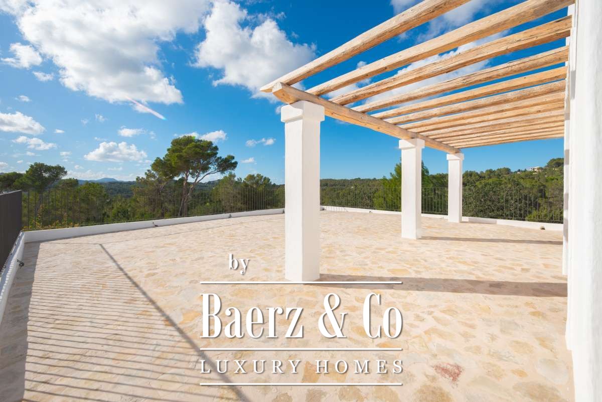 Outside, the finca’s design celebrates Mediterranean living. A private swimming pool is framed by sun-drenched terraces and a thoughtfully landscaped garden, extending into the surrounding natural beauty. Lounge areas shaded by mature trees and broad balconies invite restful afternoons amidst mountain and forest vistas. This property is not simply a home, but a rare retreat—an intersection of history, luxury, and landscape for those seeking a truly unique Ibiza estate. The experience is one of peace, timelessness, and effortless sophistication, fully captured by this finca Santa Gertrudis De Fruitera.