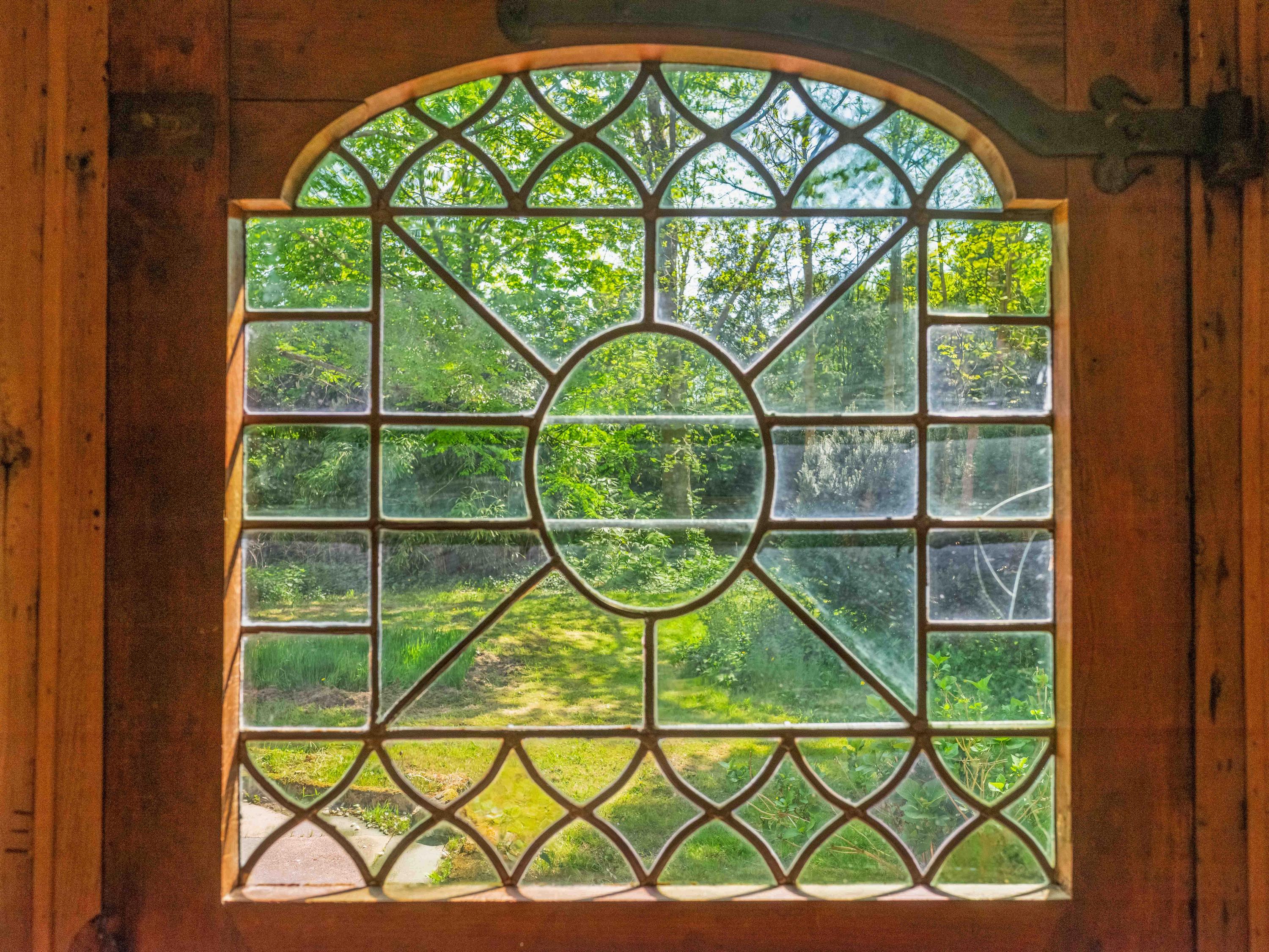 Constructed using 17th-century materials, the main house echoes its heritage with robust fireplaces, exposed oak beams, clay-plastered walls, and expansive oak flooring. The generous living area of 273 m² unfolds into quiet nooks and sunlit rooms, including a garden-facing living room warmed by a fireplace, an inviting front living space with a raised alcove, and an attached office that inspires focus looking into the grounds. Modern comforts blend with history, including a bathroom finished in tadelakt and energy delivered by a central heating system.