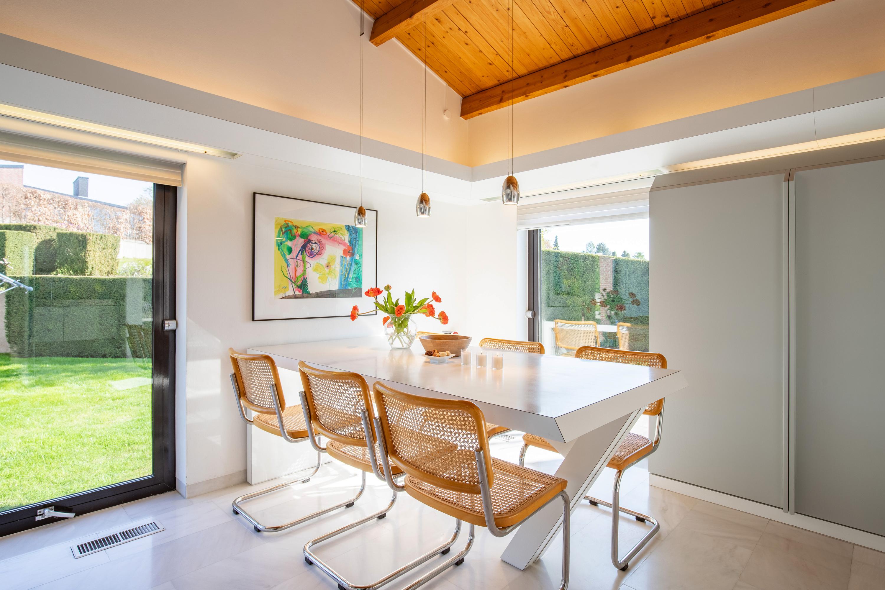 To say that this detached, exquisitely designed villa offers beautiful living on a spacious lot in the rolling hills of Limburg is an understatement. The villa was designed and built in the late 1970s based on a concept by architect Starren. A key element of the design is the undulating landscape. In many places both inside and outside the house, the architect has embraced the beautiful views.