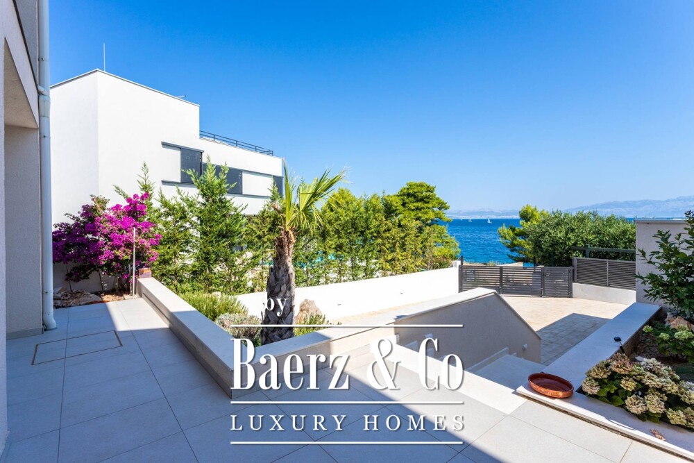 Villa Šolta Stomorska stands just 40 meters from the Adriatic on the coveted Cape Pelegrin, offering a rare intersection of privacy and direct coastal access. This villa, designed across a net floor area of 260 m² and a total living area of 366 m², occupies a plot of 714 m², providing an understated yet luxurious setting for refined living.