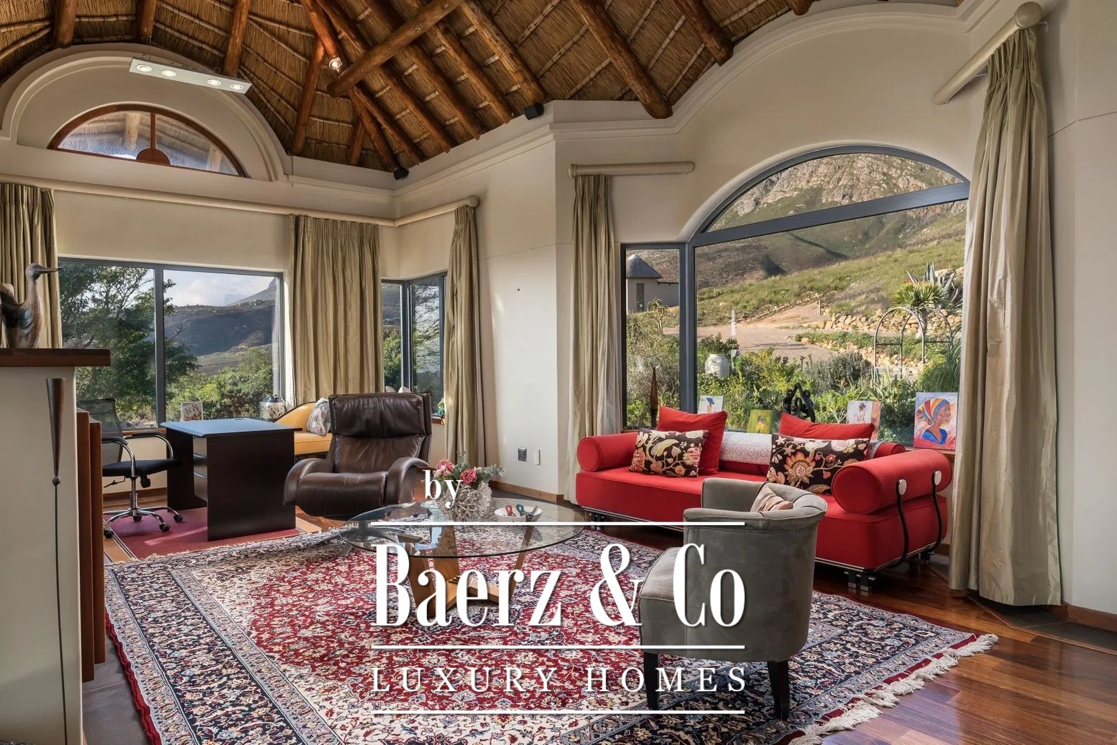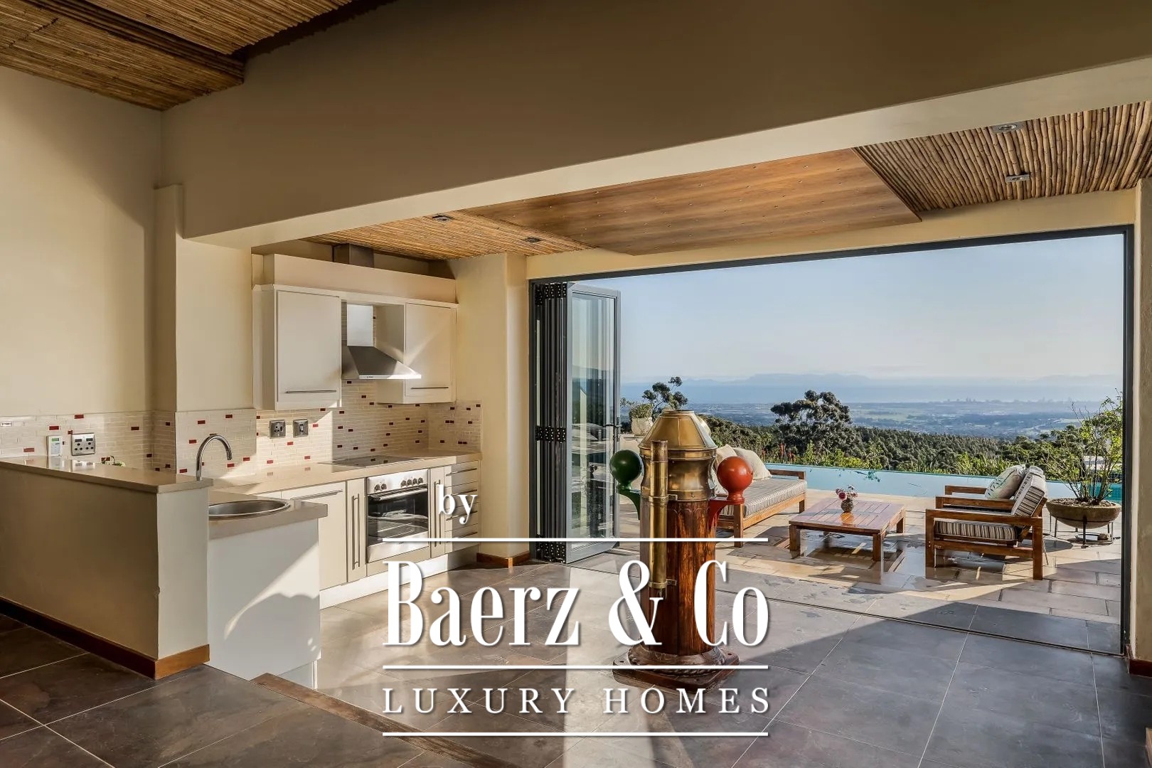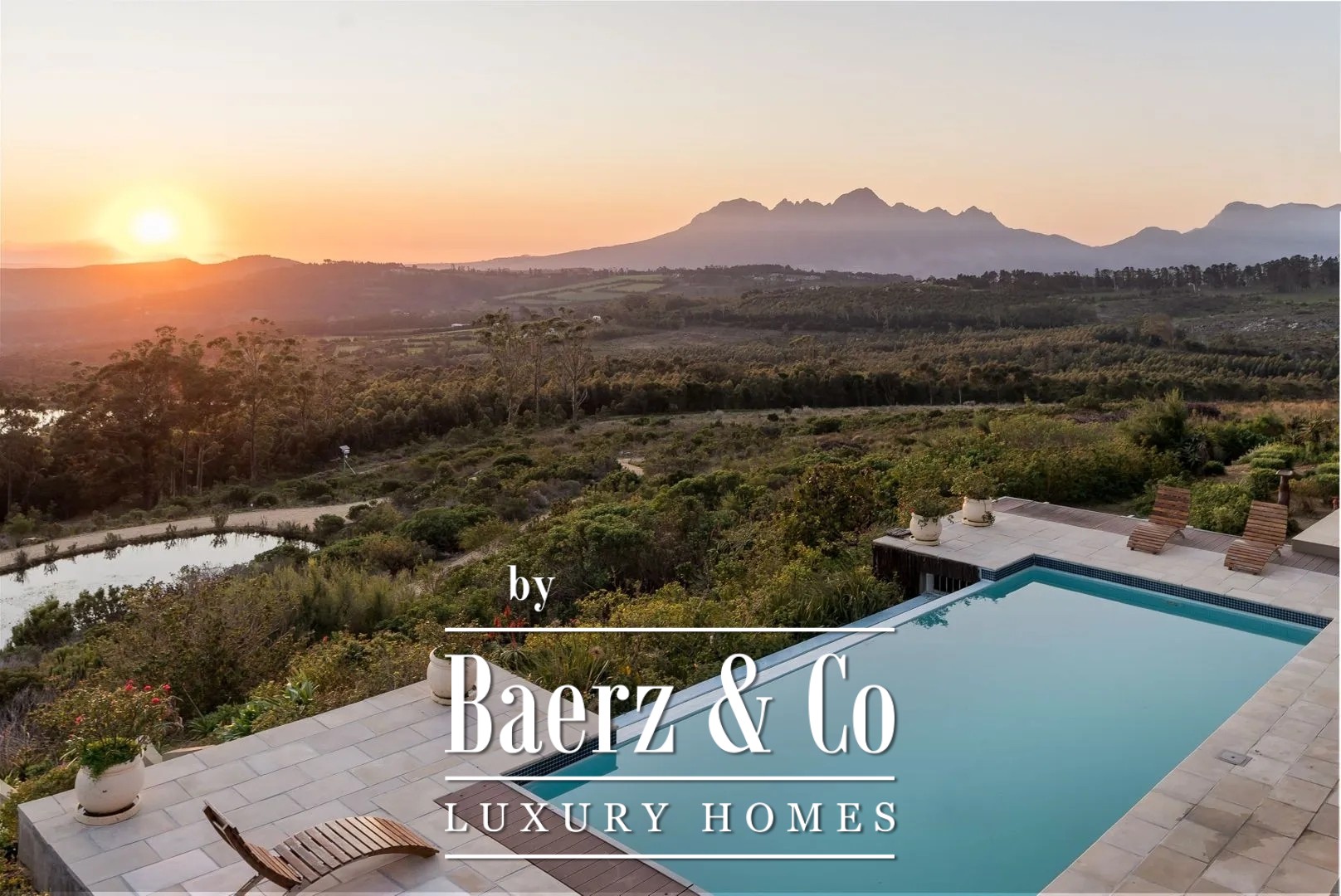 Estate Somerset West presents a rare convergence of scale, architectural presence, and environmental consciousness, set on approximately 25,000 m² of secluded fynbos. This estate is both a sanctuary and an accomplishment, with 1,500 m² of refined space designed for those who value both privacy and lasting connection to place. The property’s sweeping mountain and sea views, including False Bay and Tafelberg, form a living panorama visible from every vantage point.