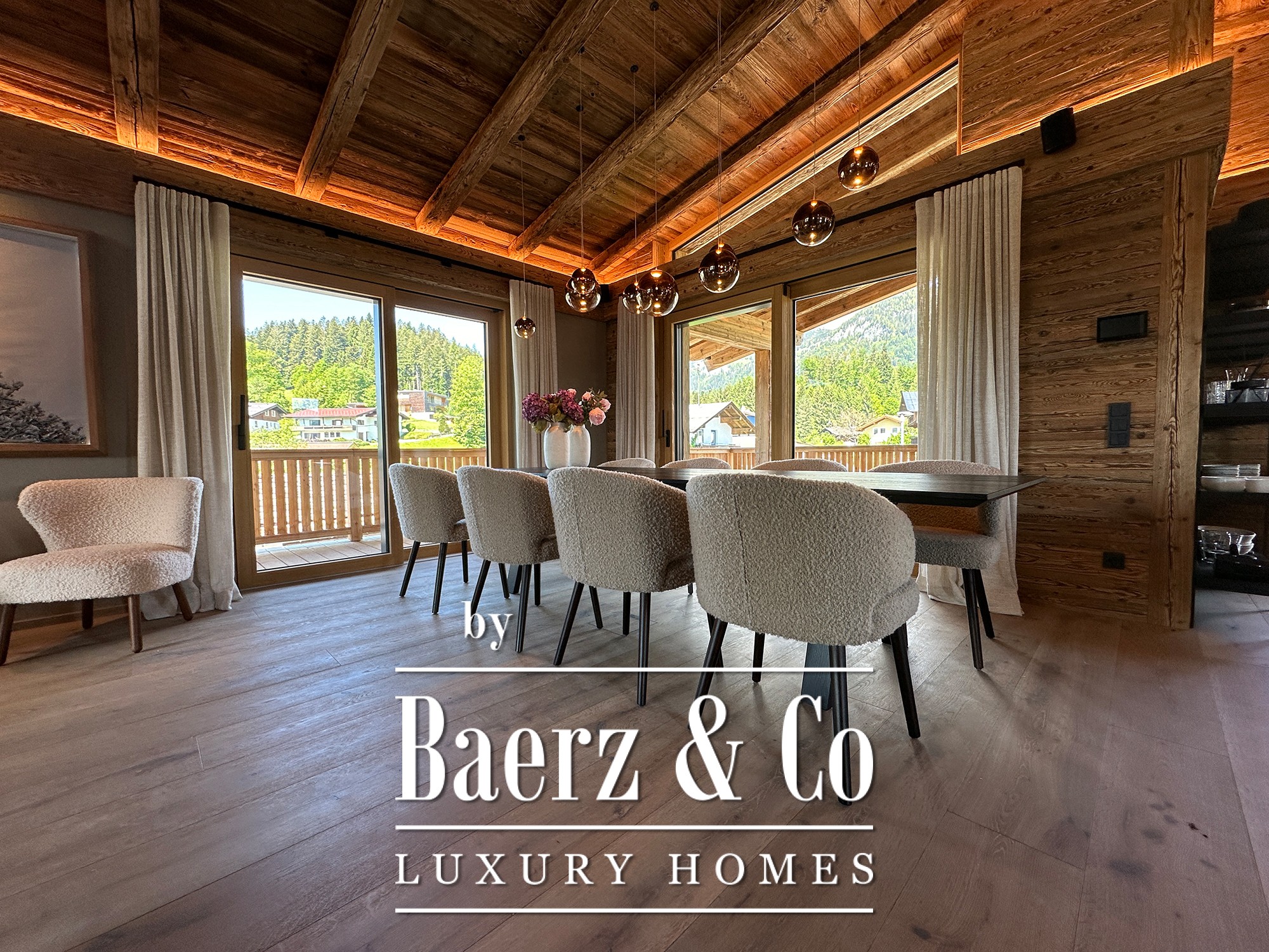 Situated in a sunny location with spectacular views of the Wilder Kaiser and the Kitzbüheler Horn, this gorgeous chalet is built in a traditional style yet designed for luxurious living and memorable entertaining. Completion is scheduled for mid-December 2023; the chalet will be sold fully furnished.