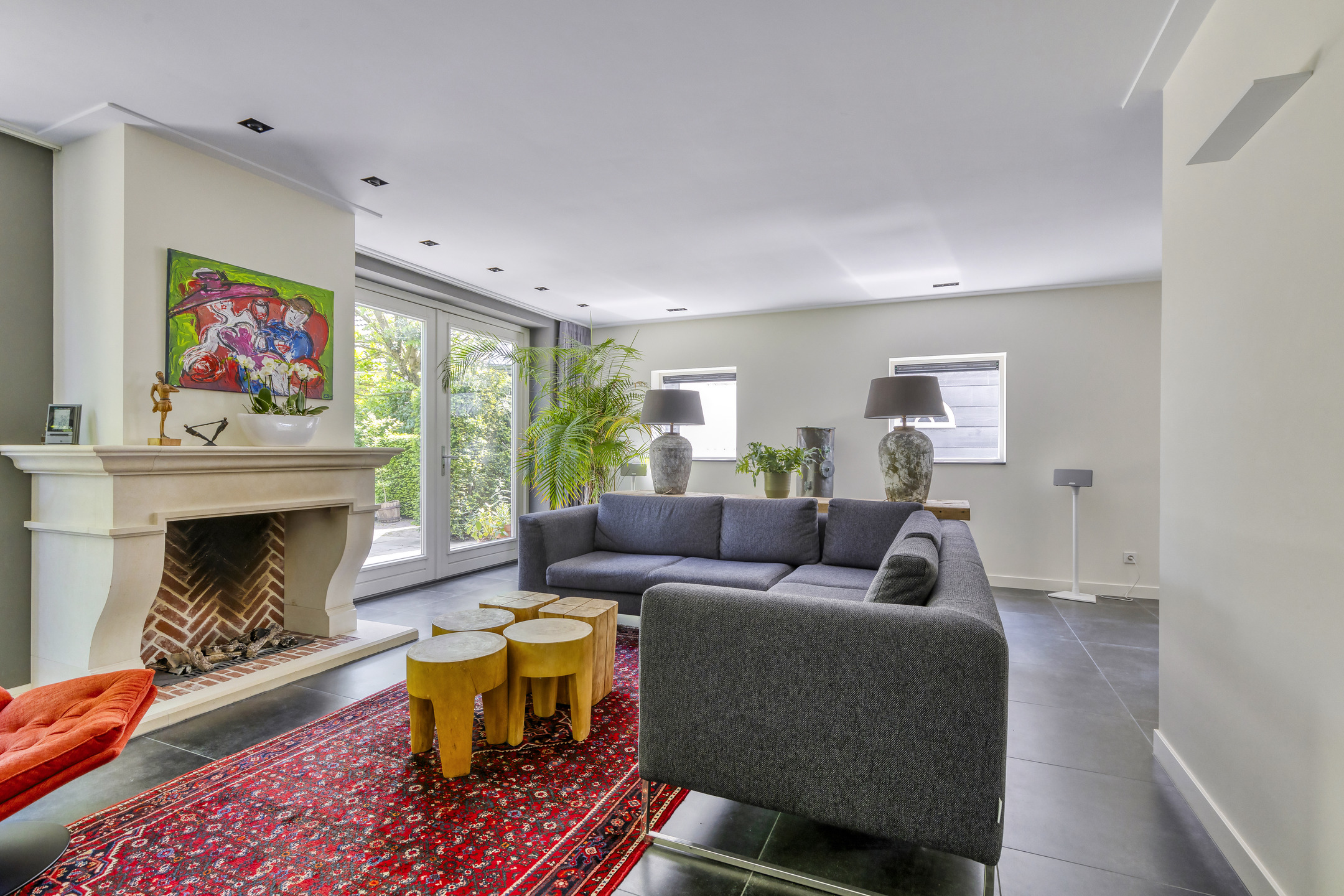 De royale en sfeervolle woonkamer bevindt zich aan de achterzijde met zicht op de tuin. Tevens bevindt zich op de begane grond ook een keuken en bijkeuken.