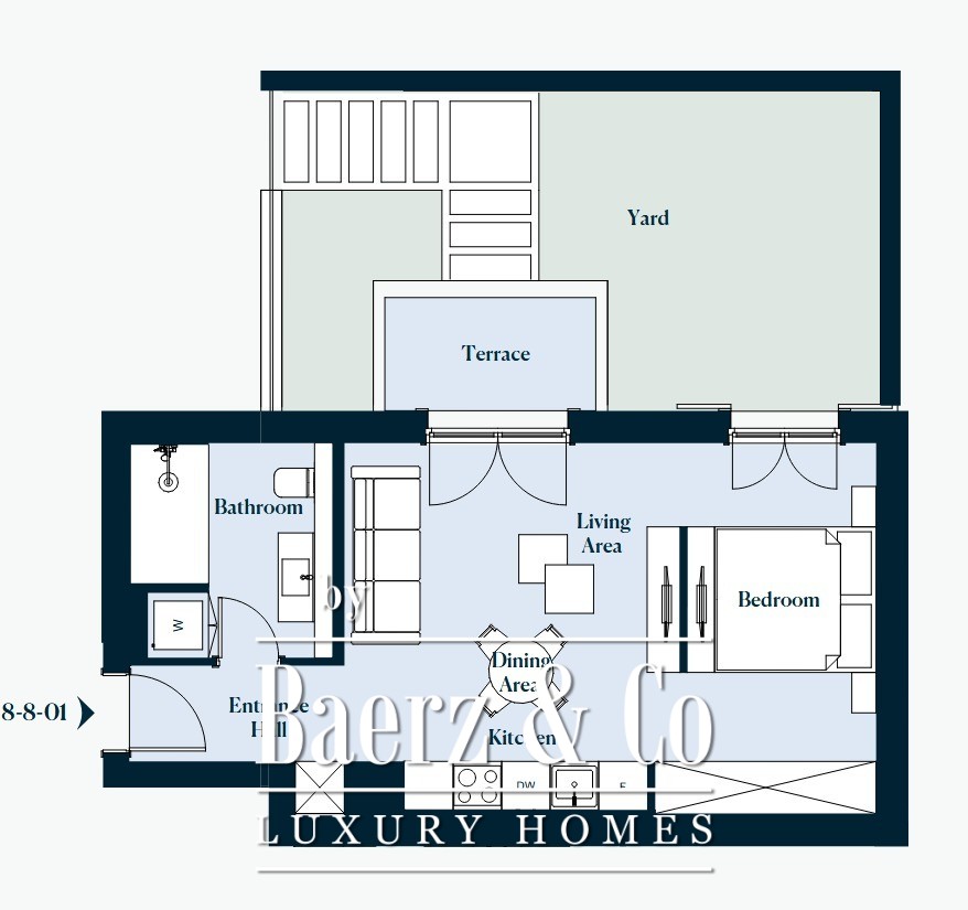 This apartment measures 44 m² with a 23 m² terrace, comprising a living room with bed, kitchen, dining area, and a bathroom. Completion is scheduled for December 2027. Residents can enjoy seamless access to the resort's fine-dining venues, a selection of boutiques and supermarkets, elegant beach clubs, and wellness amenities that meet global standards.