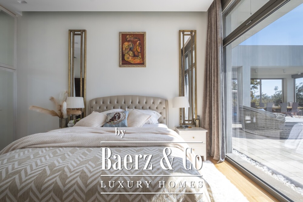 Technical excellence includes underfloor heating, central air conditioning, advanced insulation, double-glazed windows, LED lighting, and Wi-Fi throughout. Outdoor amenities, like an electric buggy, covered parking, mature olive and fruit trees, and automatic irrigation, support effortless year-round living. Offered fully furnished and move-in ready, this luxury villa for sale in Tolo balances architectural clarity, refined amenities and an intimate connection to its Aegean setting. The property may be acquired together with Villa Sunrise, creating an exceptional retreat on the Greek coast.