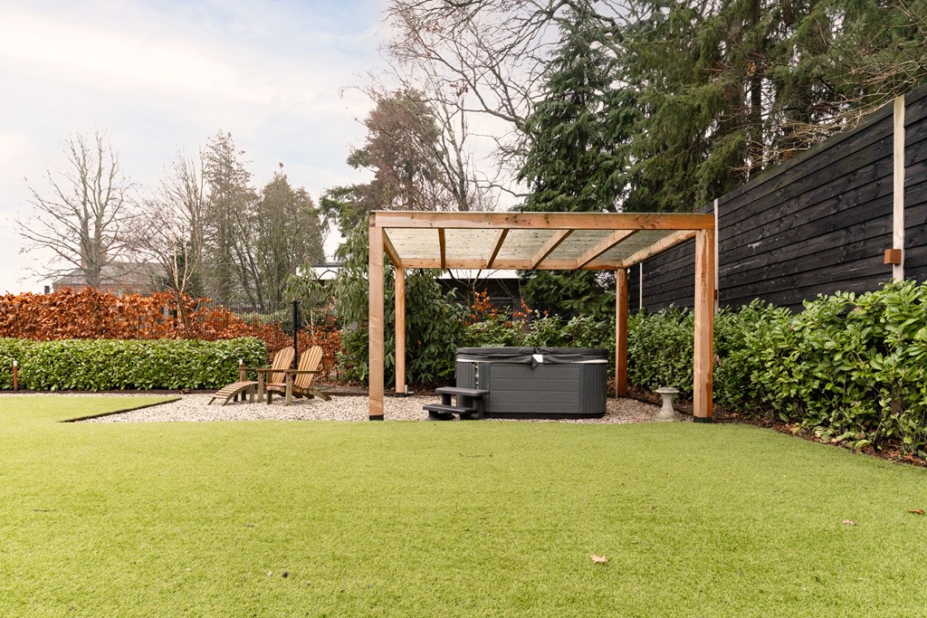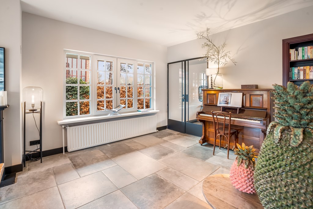 Villa Veenendaal stands as a testament to thoughtful restoration and bespoke craftsmanship. This 1937 villa, 'Domus Paterna', is gracefully set along Kerkewijk, offering 160 m² of living space and a generous plot of 1,043 m². The property exudes authenticity, with features such as a vestibule, original glass-in-lead, a living room en-suite, and a staircase with a landing. Expanses of light and classic finishes define each room, while a modern veranda with wood stove and bar overlooks lush, landscaped gardens for privacy and outdoor enjoyment.