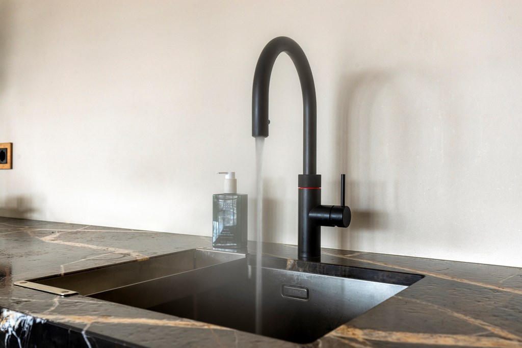 De luxe keuken vormt een waar pronkstuk. Het royale kookeiland nodigt uit tot lange diners en gezellige momenten, terwijl de hoogwaardige inbouwapparatuur van onder andere Gaggenau, waaronder een combi-oven, stoomoven, koffiemachine, inductiekookplaat met downdraft afzuiging, Quooker, vaatwasser, koelkast en vriezer, garant staat voor optimaal kookcomfort. Aansluitend bevindt zich de luxueuze eettafel, perfect gepositioneerd in het daglicht.