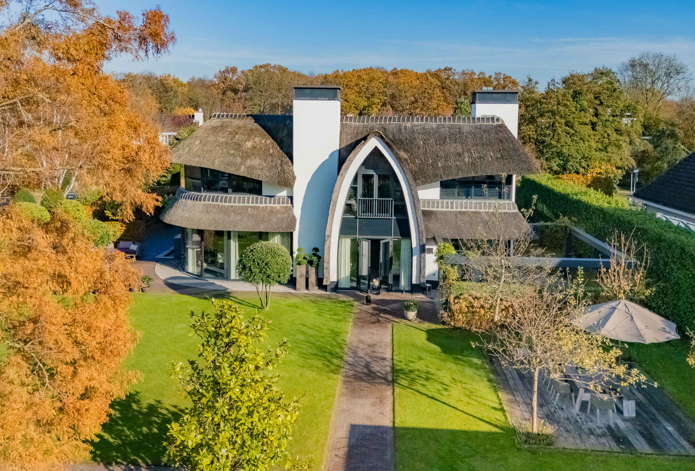 Waterfront villa Warmond is a statement of architectural grace and enduring comfort set along the water in the Netherlands. On a landscaped plot of 2,089 m², this property offers 573 m² of living space defined by sculptural lines and a thatched roof, providing calm privacy and striking views.