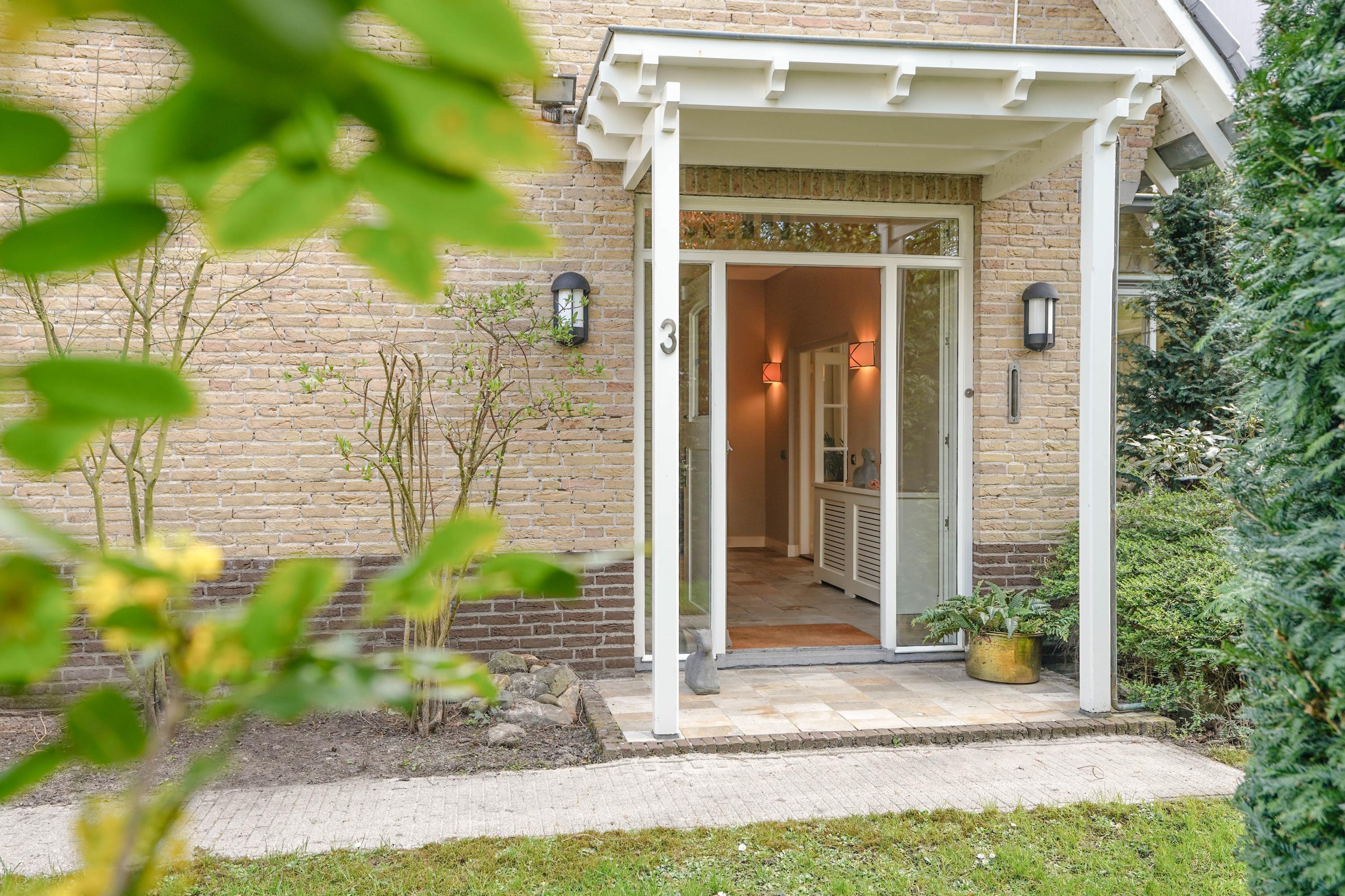 Via the private road through the park you reach the villa, with several parking spaces and a double, indoor garage with electric overhead doors. The front door gives access to the spacious and bright entrance with meter cupboard, wardrobe and a guest toilet. The hall also provides access to the basement with fixed stairs and standing height.
