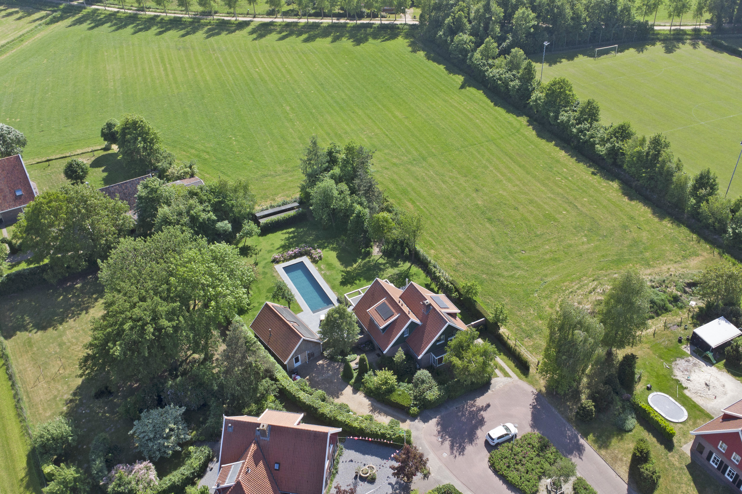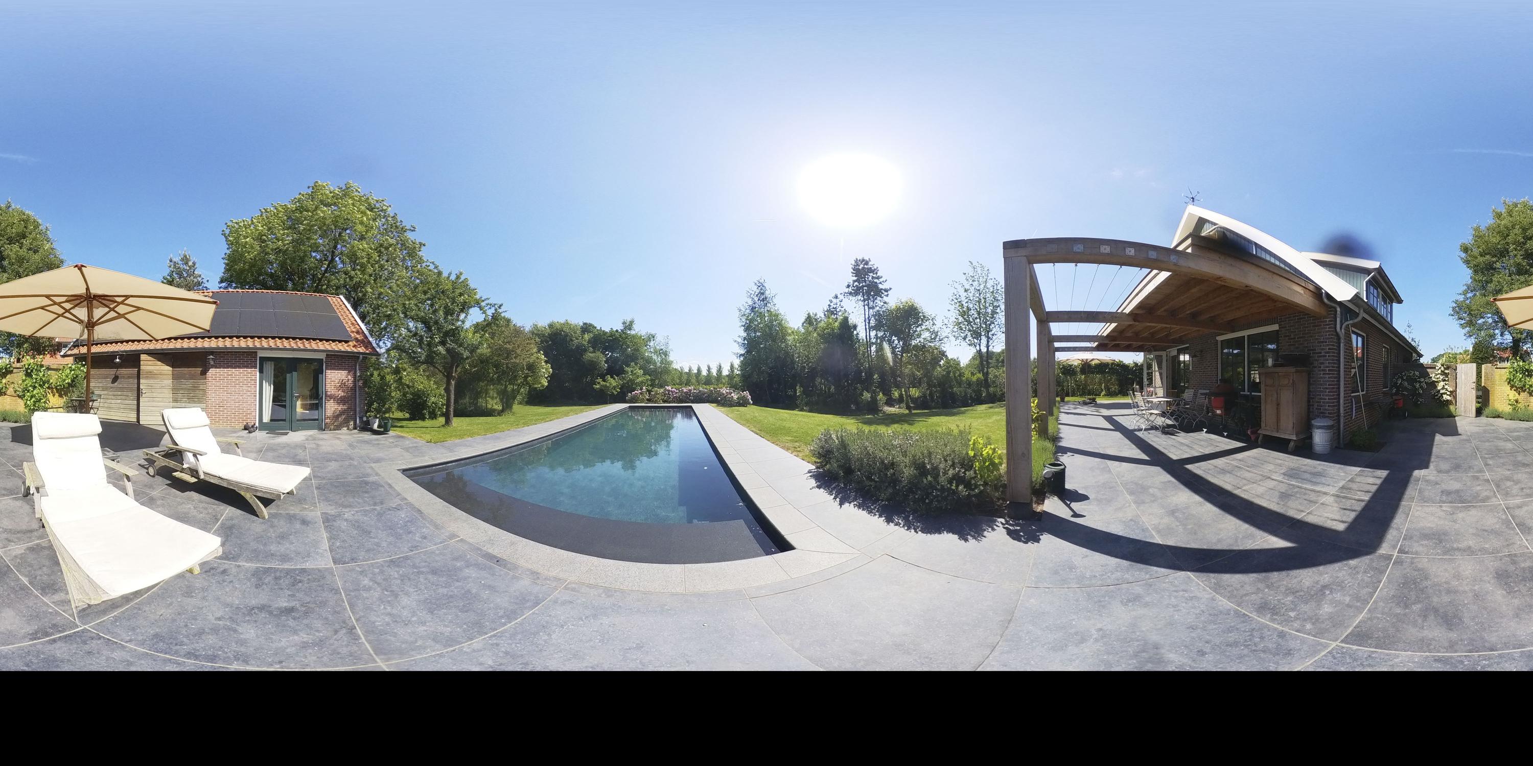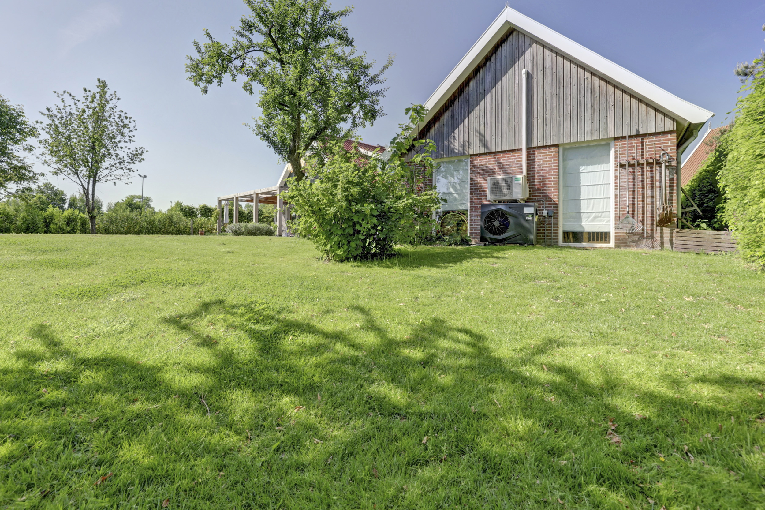 There are three bedrooms, two bathrooms, and a study that can become a future-proof suite. Air conditioning and modern ventilation systems ensure comfort throughout. Outdoors, an insulated, automated pool, expansive green lawns, fruit orchard, and irrigation system invite longer days lived in privacy. Parking is ample, with electric charging options discreetly available. Proximity to Winterswijk’s amenities and swift regional access support an unhurried yet connected lifestyle.