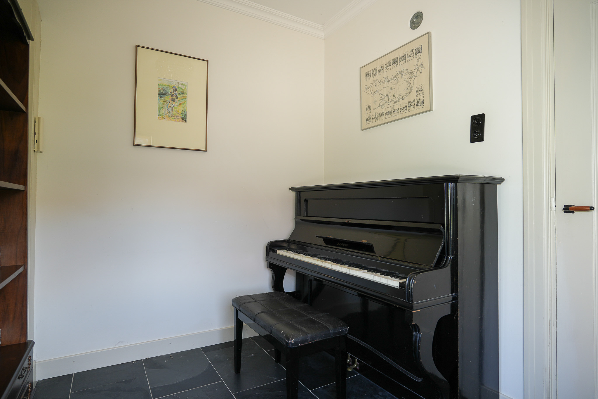 The electrical installation has been completely renewed, incorporating retro-style switches combined with Philips Hue lighting. Twelve solar panels have been installed on the flat roof, and the main roof was fully renovated in 2024, including new battens and tiles. The zinc work had already been renewed the year before.
