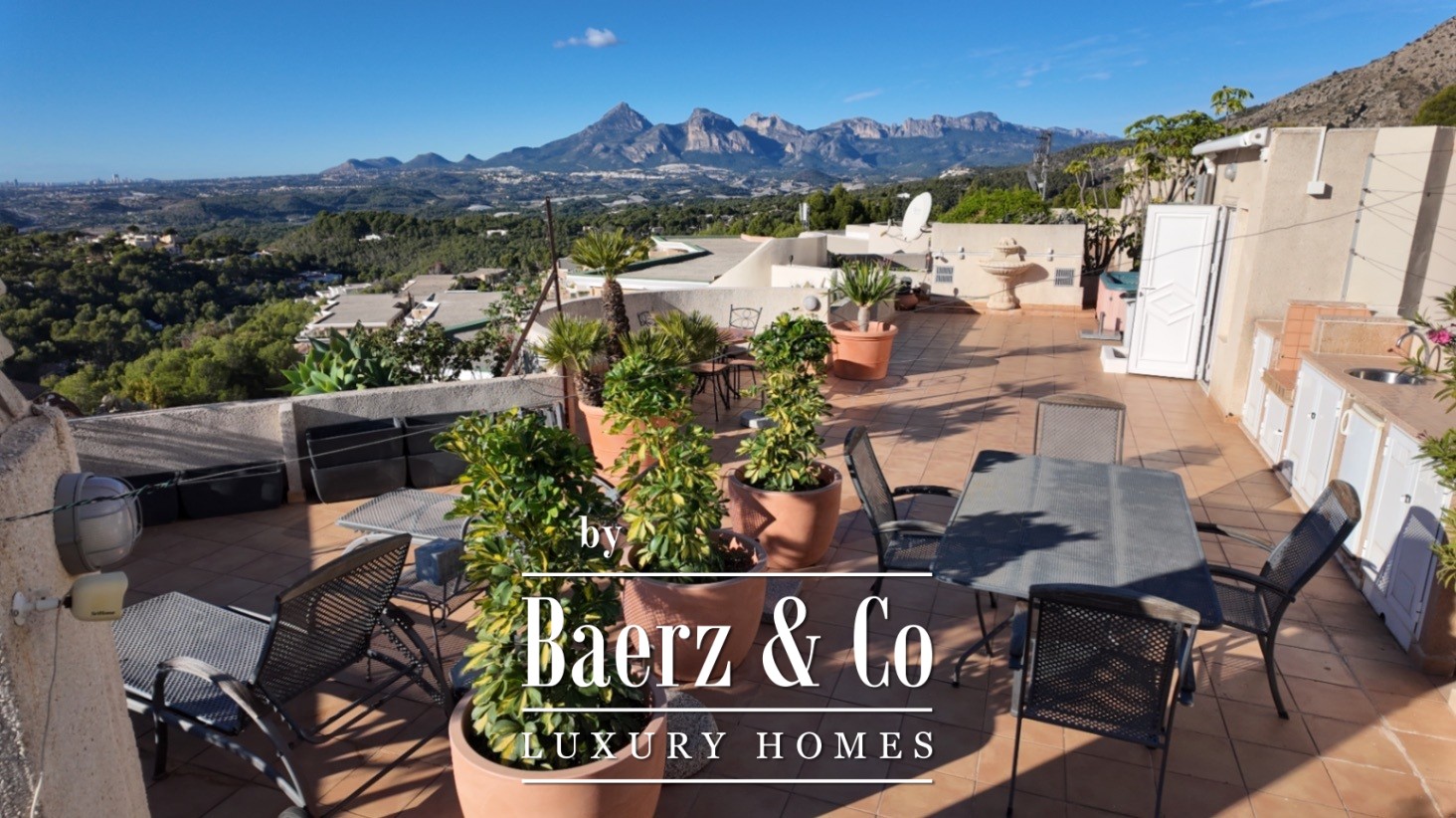 Penthouse Altea la Vieja ofrece una perspectiva privada sobre la Costa Blanca, donde 261 m² de superficie habitable se despliegan entre interiores refinados y amplias terrazas. Situada en Altea la Vieja, a solo 10 minutos de la playa de Mascarat y a minutos del Club de Golf Don Cayo, el puerto deportivo y el centro histórico, esta propiedad ofrece una dirección tranquila, ideal tanto para el descanso como para una conexión sin esfuerzo.