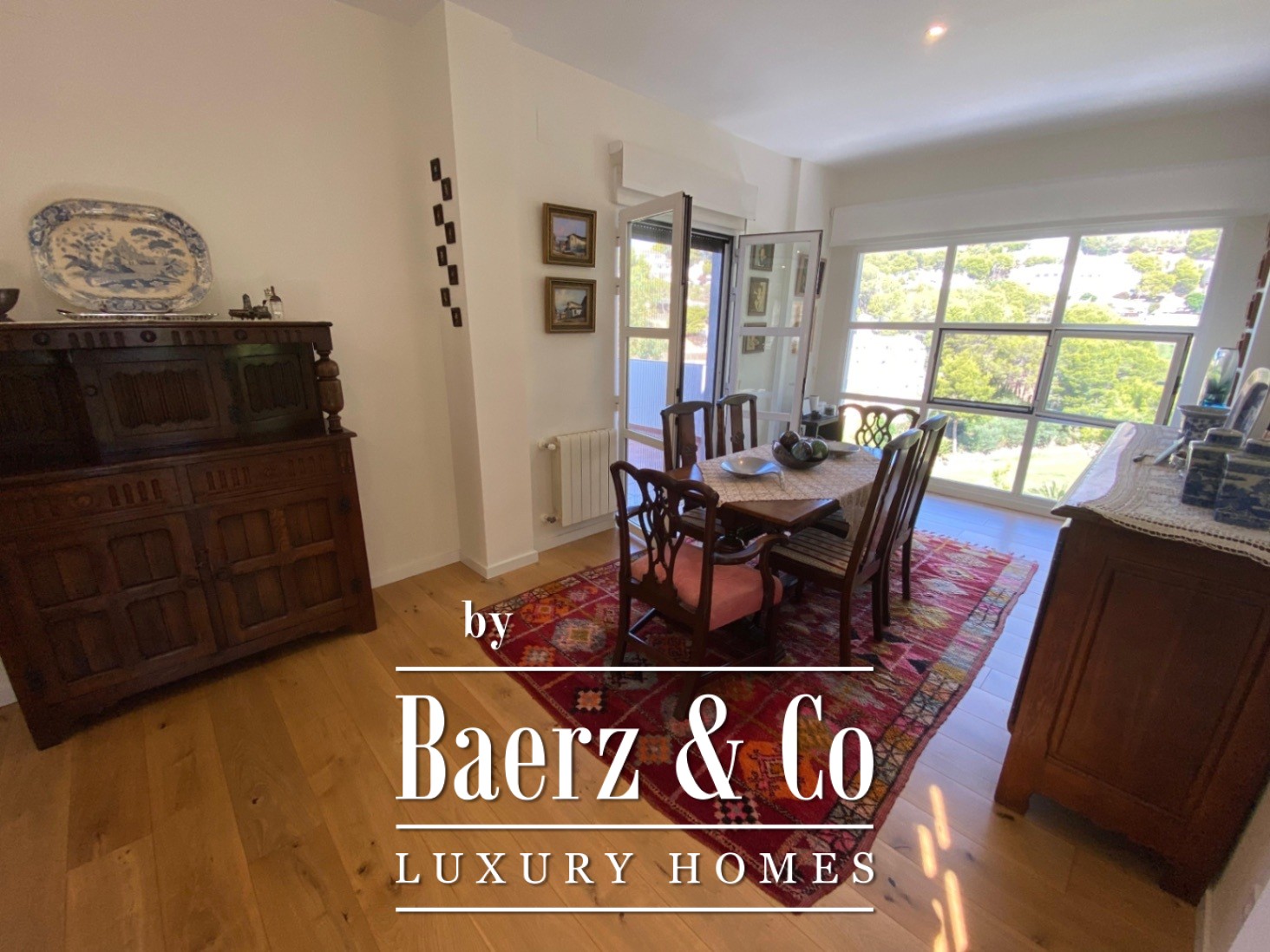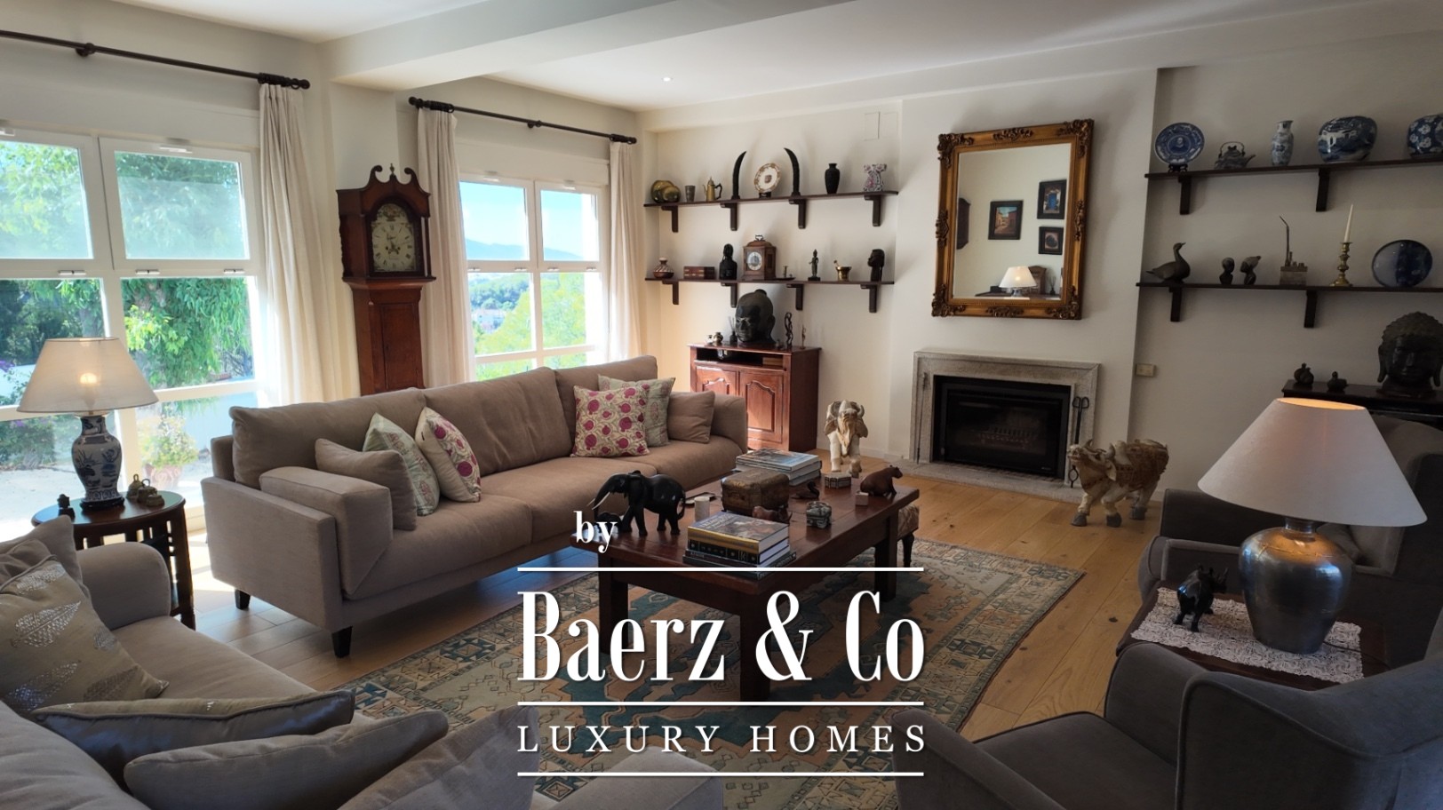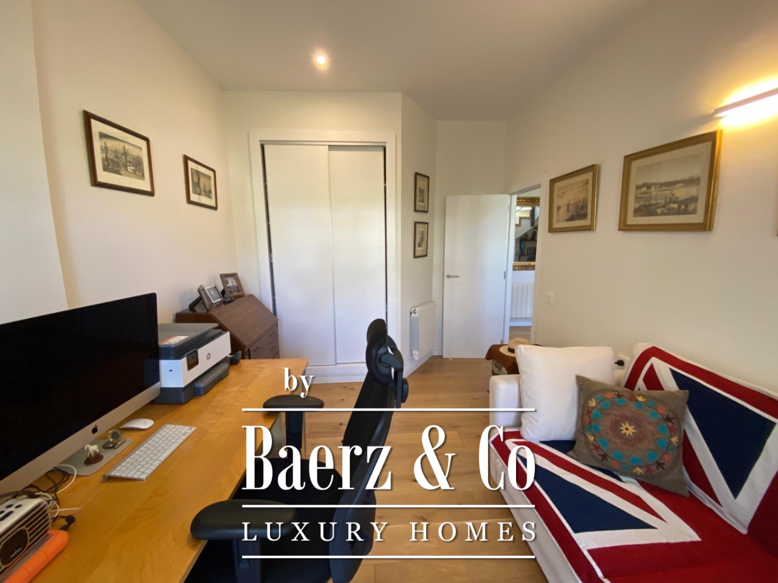 El corazón de la vivienda es un salón de 90 m² presidido por una chimenea y grandes ventanales, que da acceso a una terraza con vistas impresionantes. La cocina de diseño equipada con electrodomésticos de alta gama se complementa con un amplio comedor ideal para reuniones. Cuatro dormitorios y tres baños garantizan espacio y privacidad, mientras que la suite principal disfruta de acceso directo a una vasta terraza acristalada y vistas ininterrumpidas.