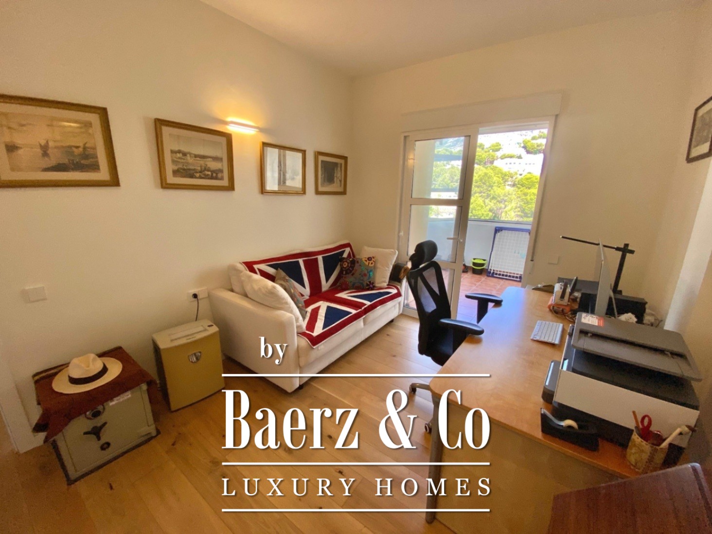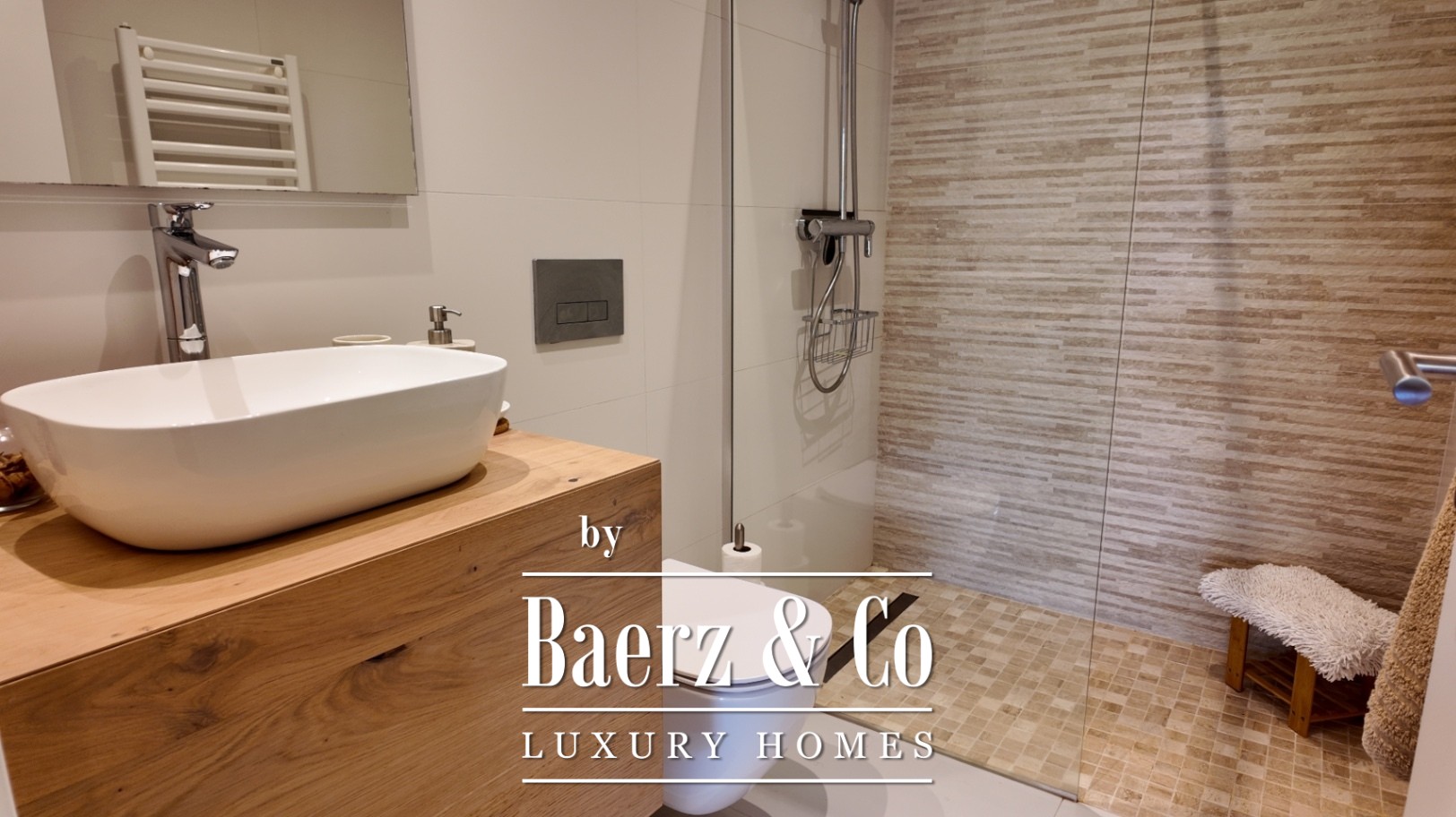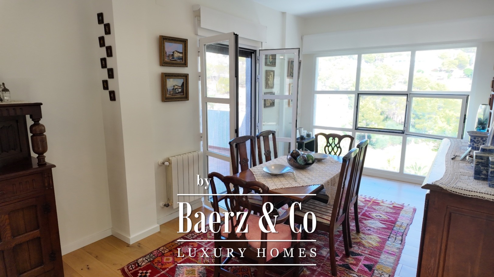 El corazón de la vivienda es un salón de 90 m² presidido por una chimenea y grandes ventanales, que da acceso a una terraza con vistas impresionantes. La cocina de diseño equipada con electrodomésticos de alta gama se complementa con un amplio comedor ideal para reuniones. Cuatro dormitorios y tres baños garantizan espacio y privacidad, mientras que la suite principal disfruta de acceso directo a una vasta terraza acristalada y vistas ininterrumpidas.