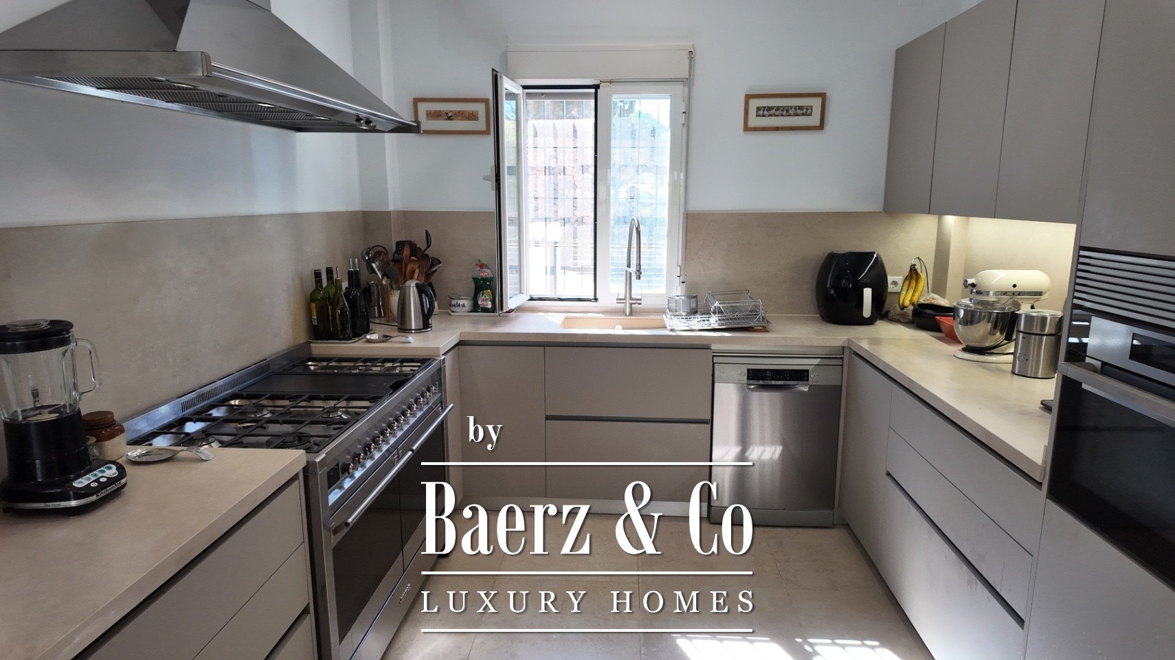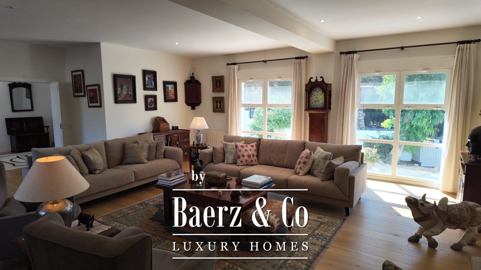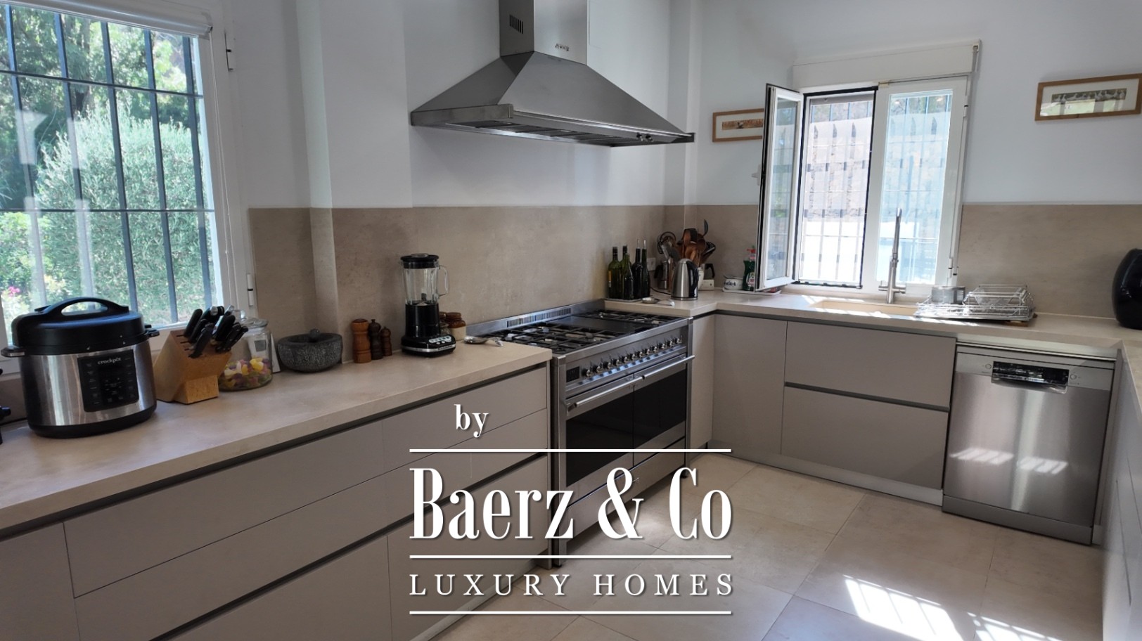Los jardines paisajísticos están diseñados para el disfrute sin esfuerzo y cuentan con una piscina de agua salada con preinstalación de calefacción, amplias terrazas y una cocina de verano totalmente equipada. Un garaje doble, aire acondicionado, calefacción central a gas, paneles solares con baterías, suelos de roble escandinavo, sistemas de seguridad y descalcificador de agua contribuyen al confort y la eficiencia.