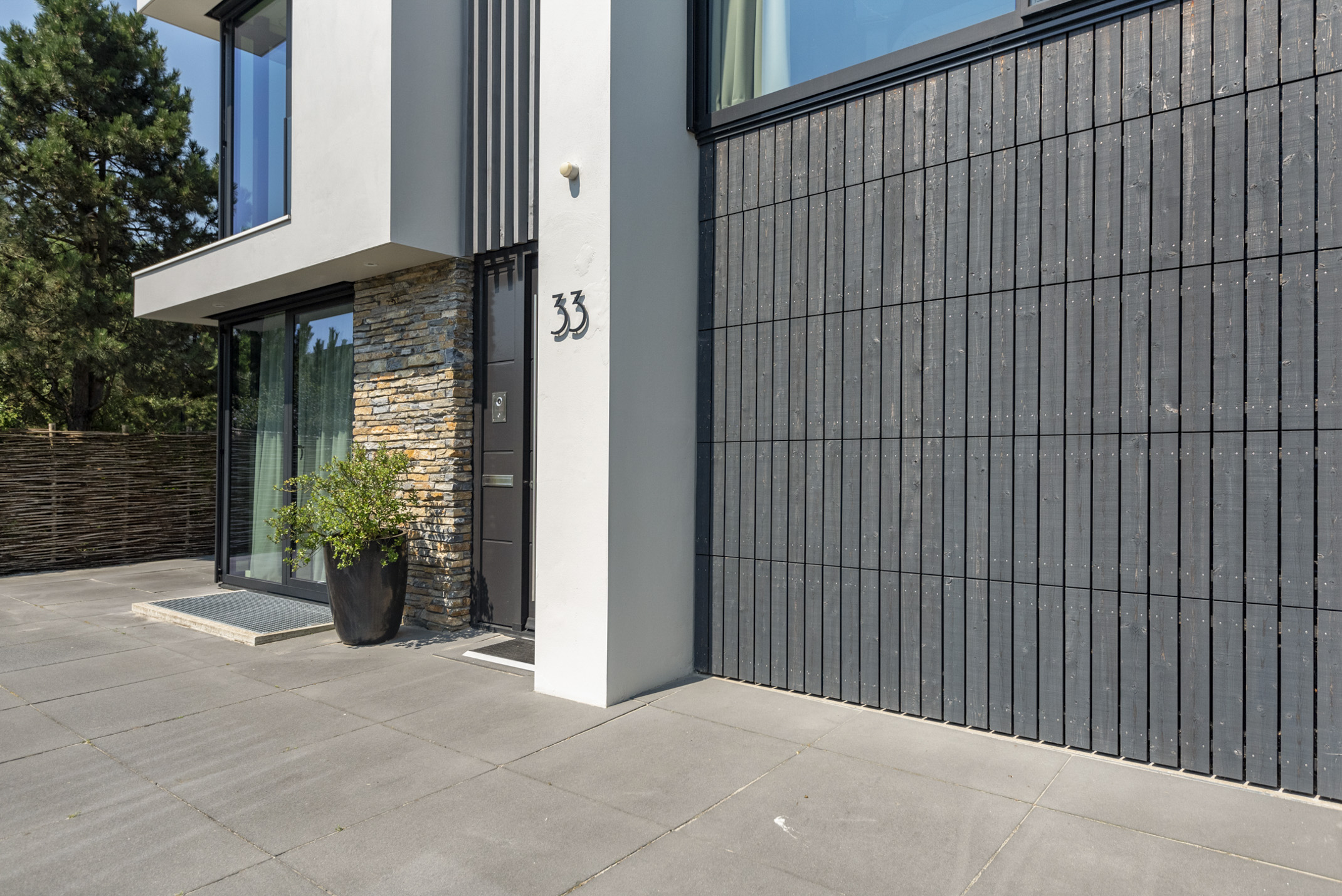 Una amplia terraza de madera dura facilita la transición al exterior, con privacidad acentuada por vistas exclusivas y persianas eléctricas en orientación sur. Aparcamiento seguro para hasta cinco vehículos en el terreno privado, sala de cine en casa y una soleada terraza en la azotea completan la propuesta de valor de la villa. La calificación energética A+ y el derecho de superficie pagado hasta 2058 garantizan confort y tranquilidad a largo plazo.
