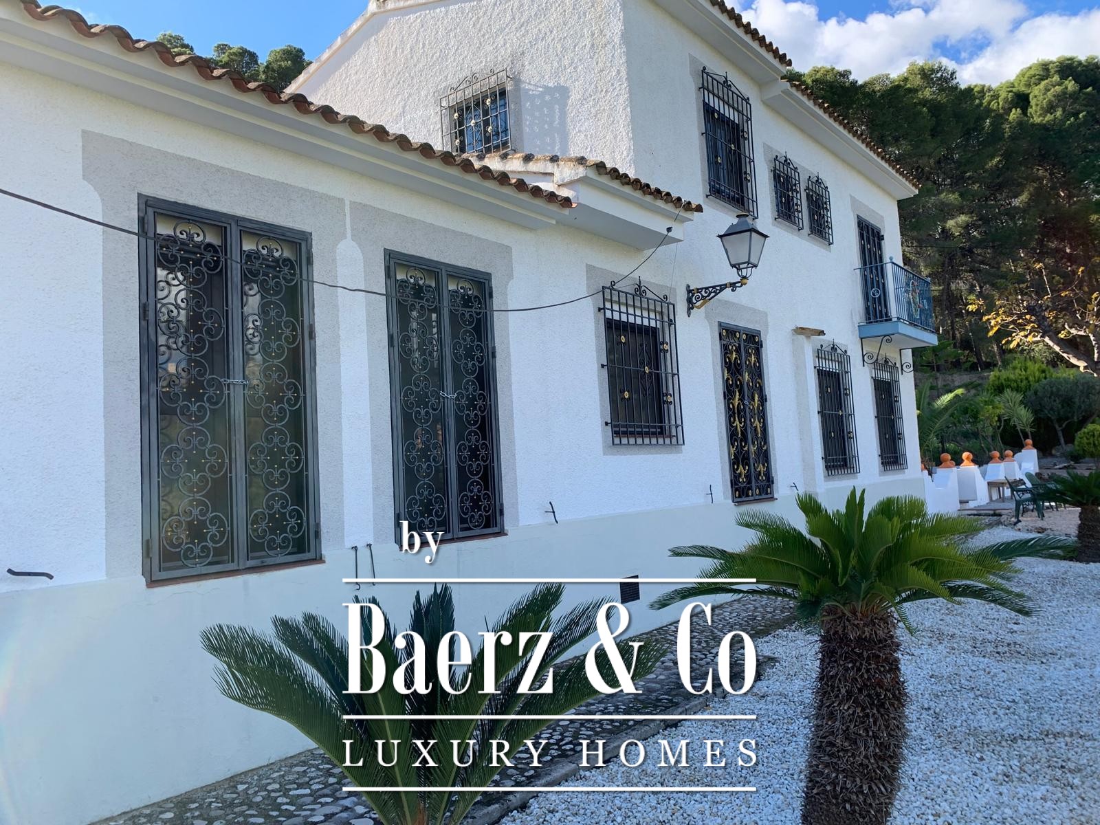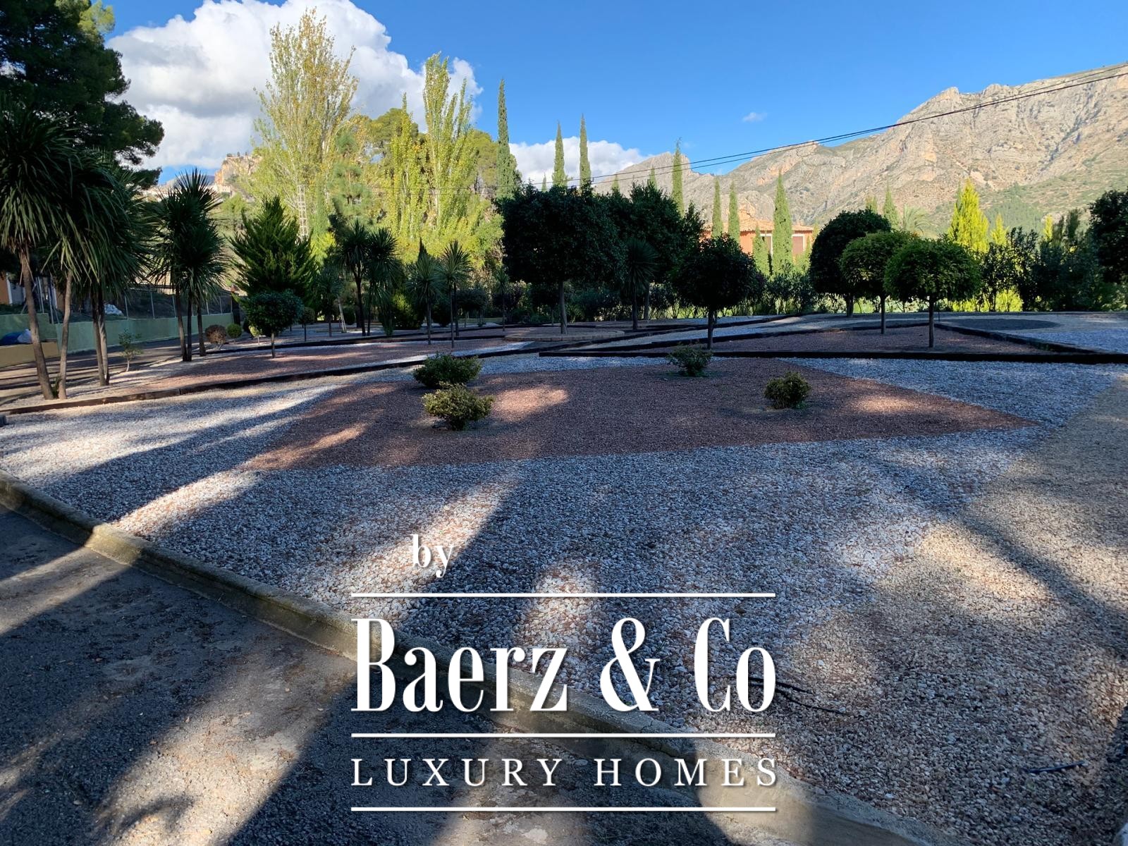 Esta villa rústica en Guadalest ofrece un refugio sereno enmarcado por la silueta imponente del Castillo de Guadalest. Ubicada discretamente en una generosa parcela de 5.750 m², la propiedad fusiona la arquitectura española clásica con un entorno natural envolvente. Al acceder, se percibe de inmediato una sensación de amplitud gracias a los techos altos y la abundante luz natural. La residencia principal se distribuye en dos niveles y suma aproximadamente 230 m², con seis dormitorios y cinco baños diseñados con privacidad y comodidad en mente.