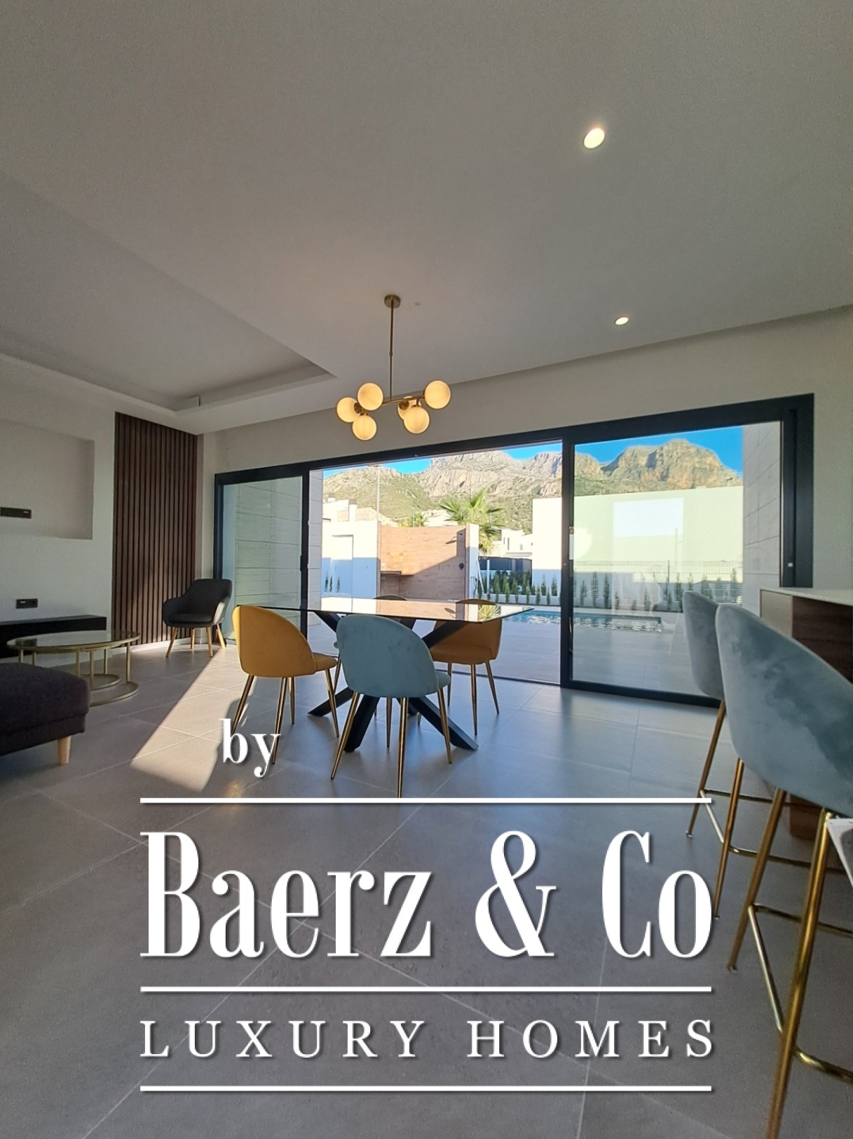 Villa Polop ofrece un estilo de vida contemporáneo en una sola planta, en medio de la tranquilidad del entorno montañoso de España. Construida con esmero en 2024, esta propiedad distribuye la luz y el espacio en sus 100 m² interiores, con tres luminosos dormitorios y dos baños, uno de ellos en suite para mayor privacidad. La cocina está completamente amueblada, pensada para el uso diario, e integrada perfectamente en la cuidada distribución abierta.