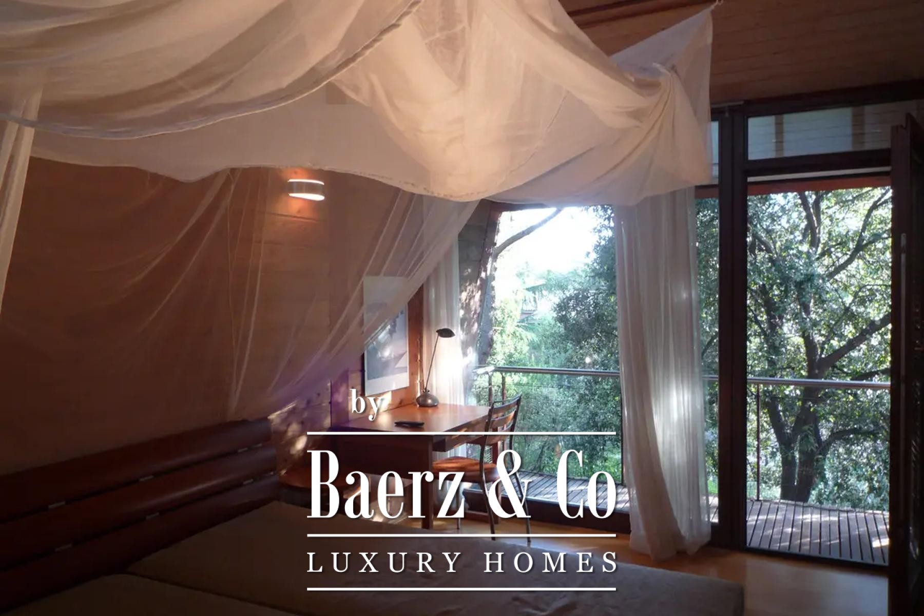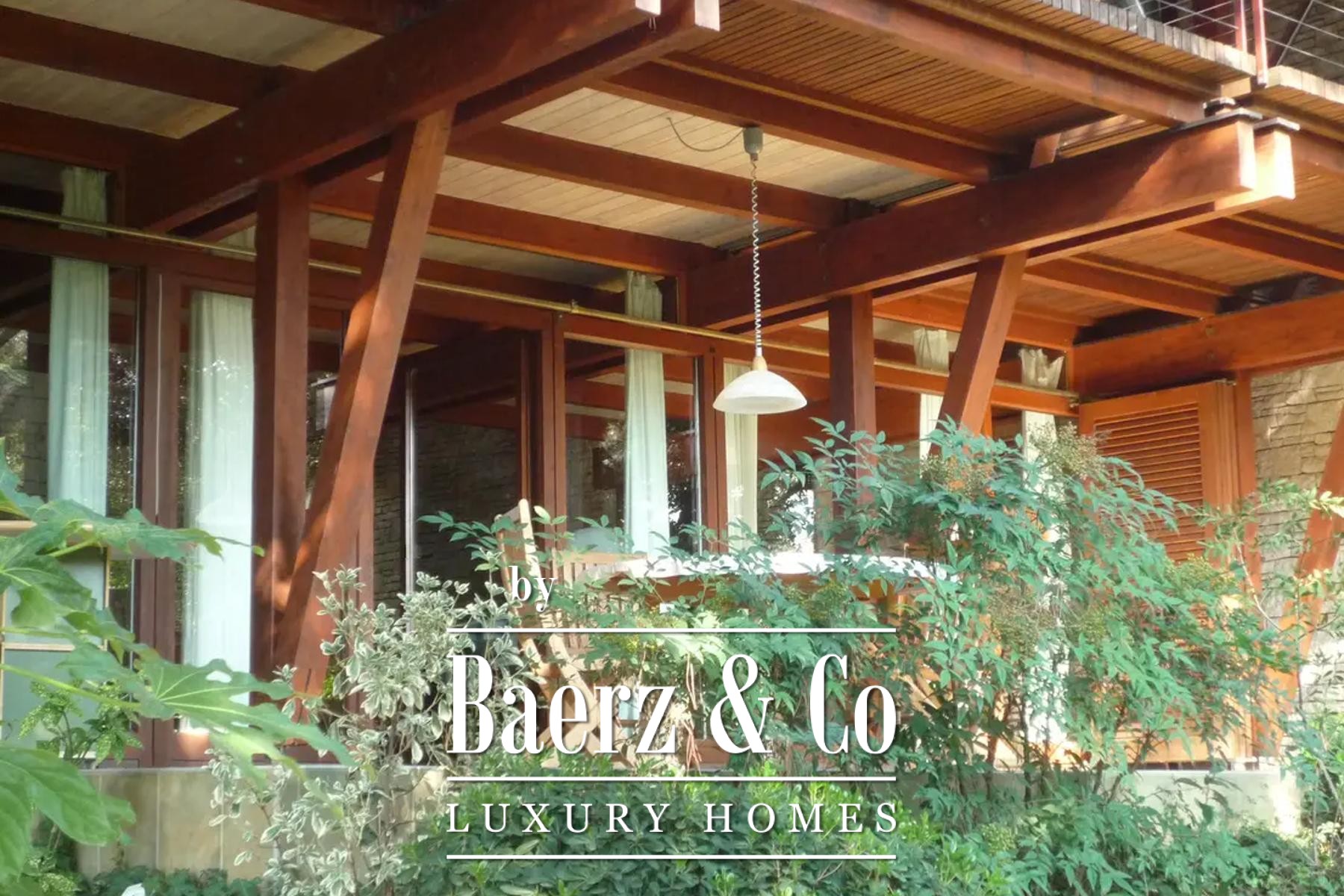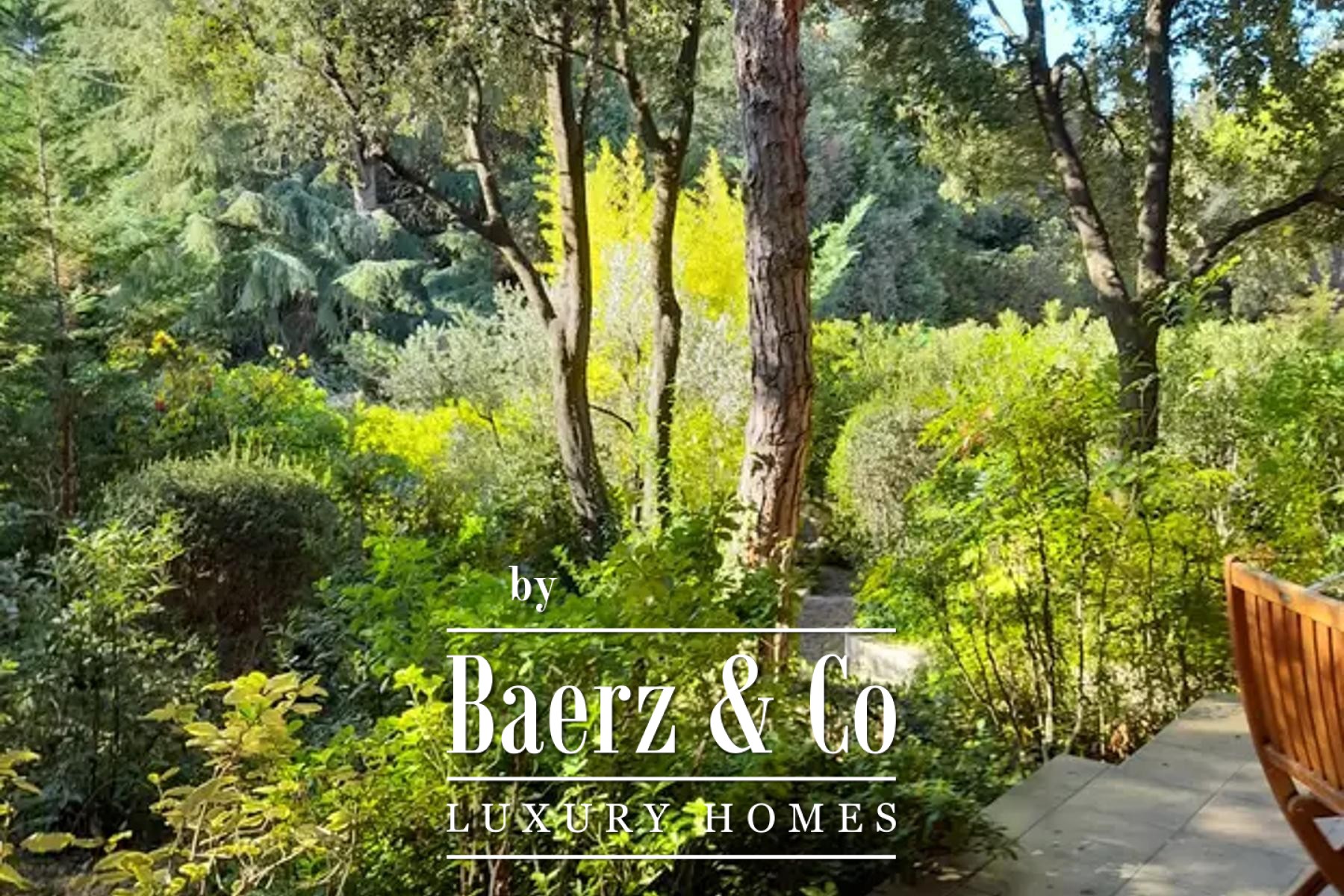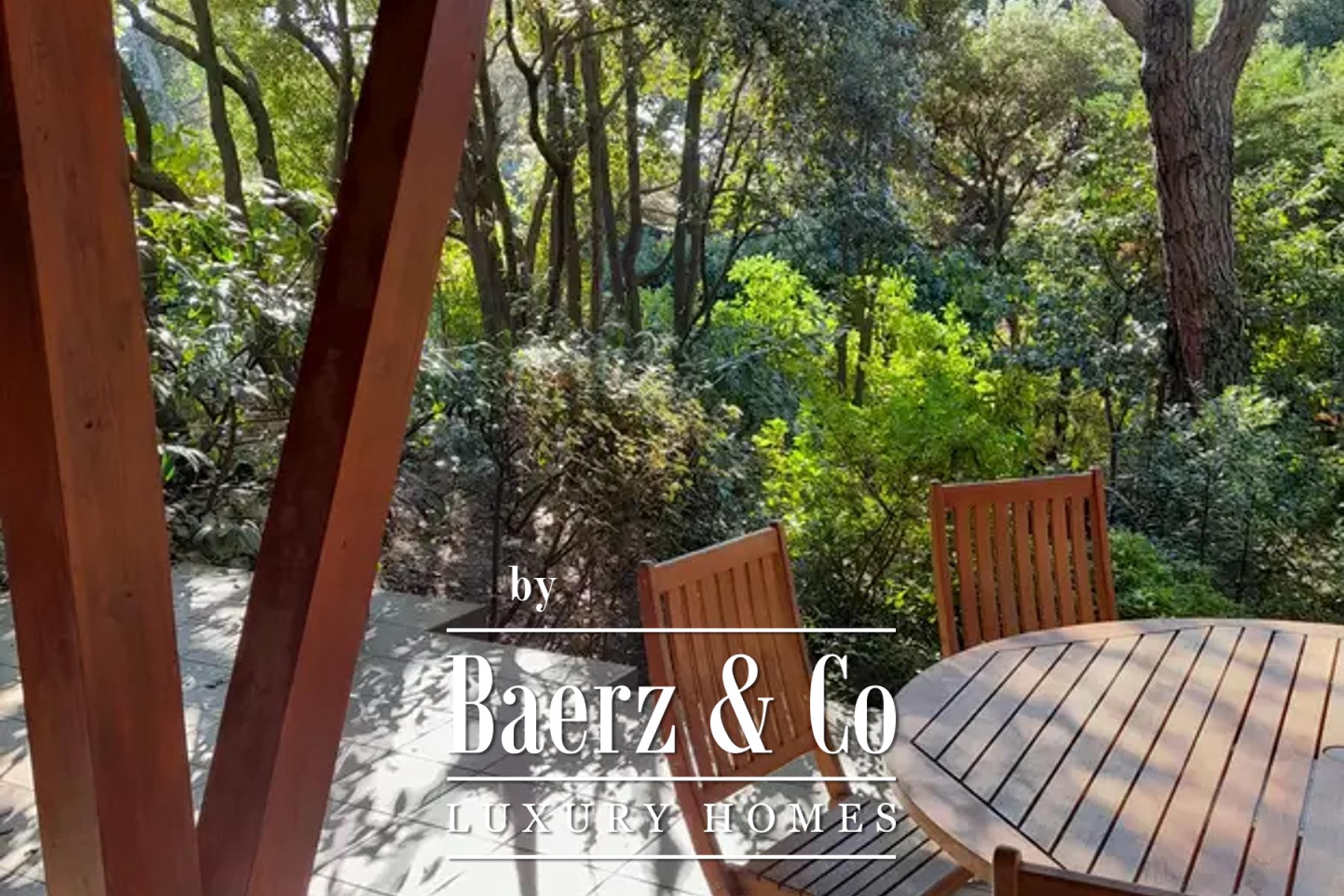 En la planta superior, cuatro dormitorios tranquilos se abren a balcones privados. Una galería y terraza sombreada ofrecen acceso a una exclusiva zona en la azotea, ideal para momentos de contemplación sobre el jardín. En el nivel inferior, una cocina de verano acristalada se combina con un área wellness con sauna, piscinas y terraza ajardinada, mientras que una bodega proporciona espacio de almacenamiento, instalaciones centrales y lavandería.