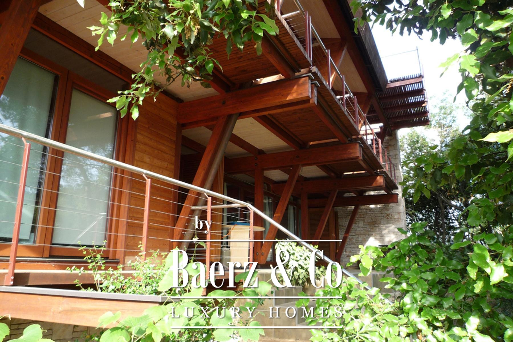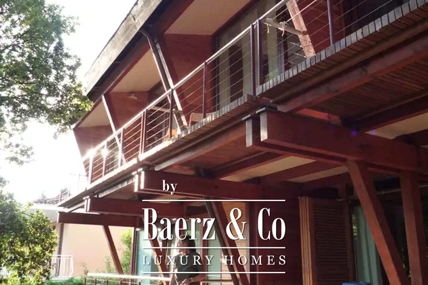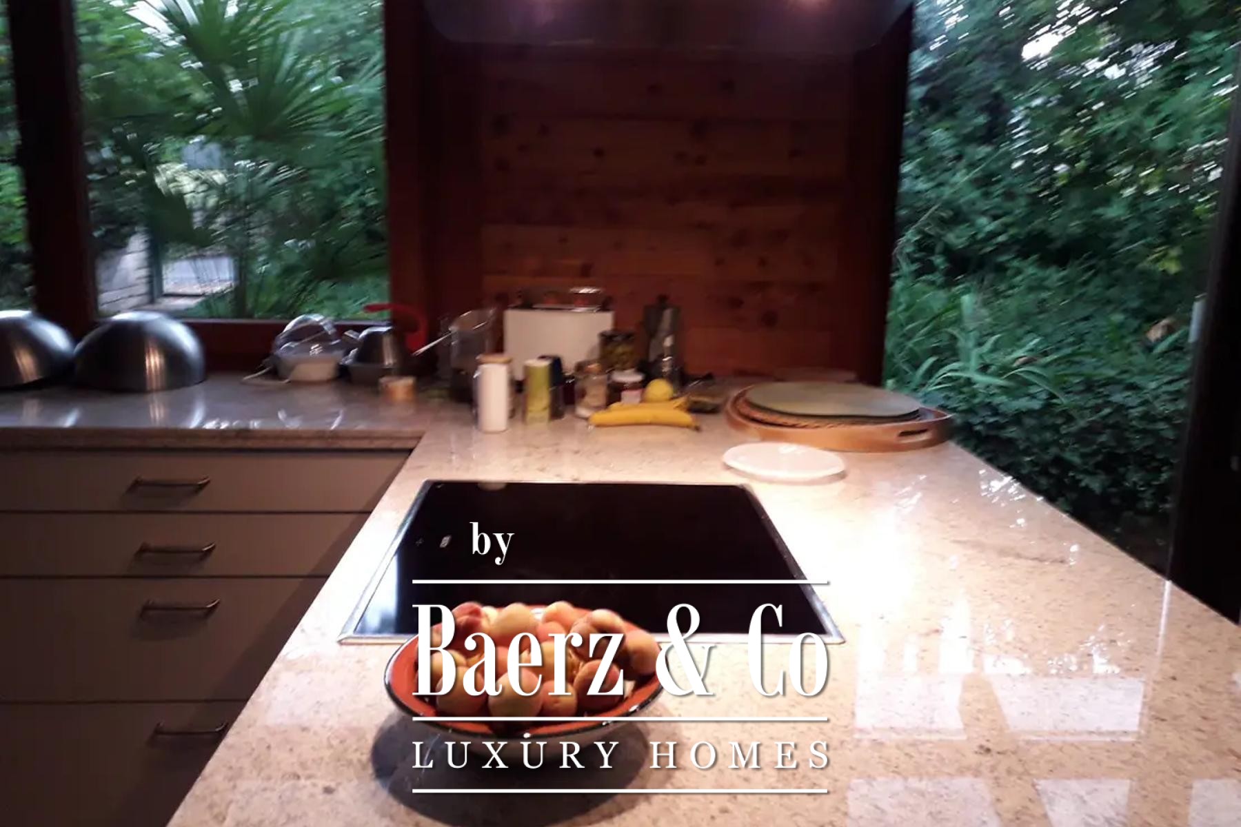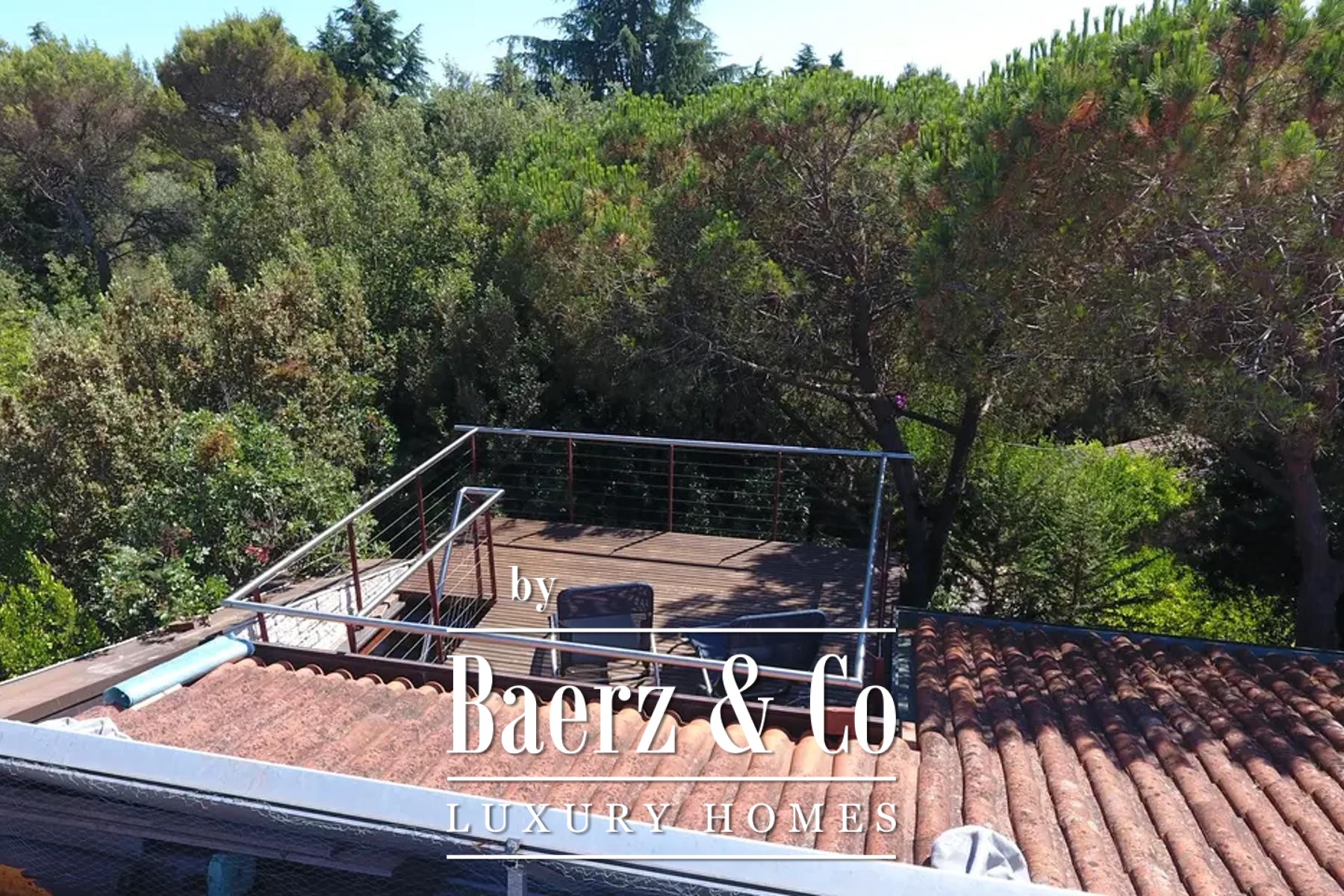 En la planta superior, cuatro dormitorios tranquilos se abren a balcones privados. Una galería y terraza sombreada ofrecen acceso a una exclusiva zona en la azotea, ideal para momentos de contemplación sobre el jardín. En el nivel inferior, una cocina de verano acristalada se combina con un área wellness con sauna, piscinas y terraza ajardinada, mientras que una bodega proporciona espacio de almacenamiento, instalaciones centrales y lavandería.