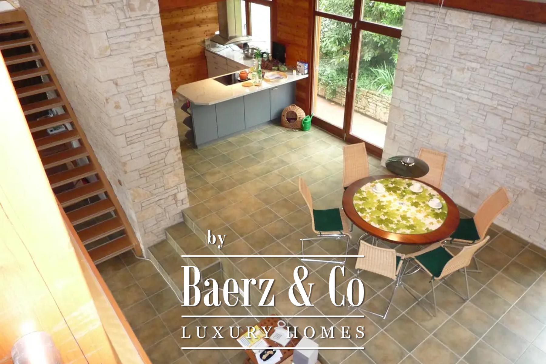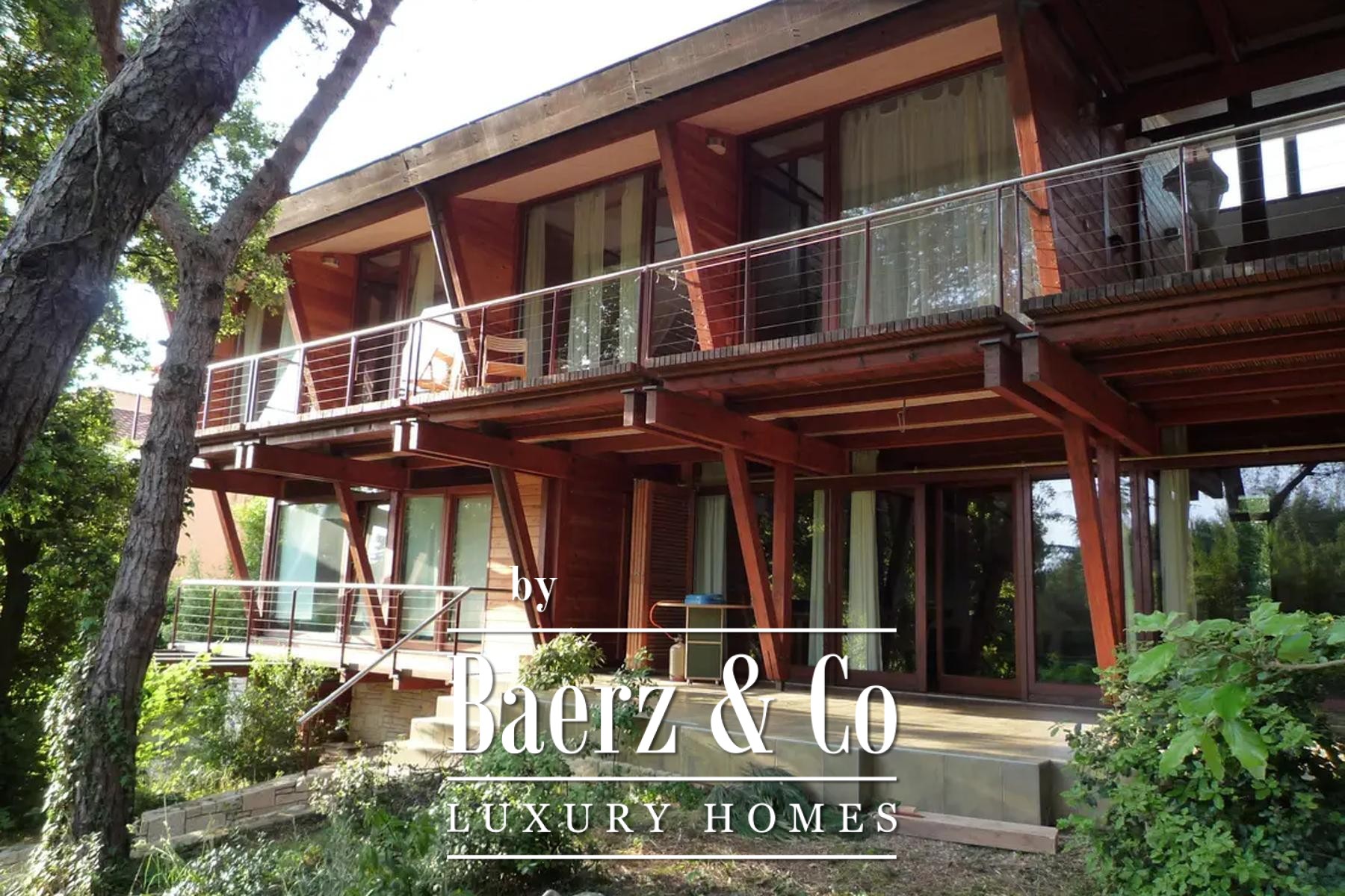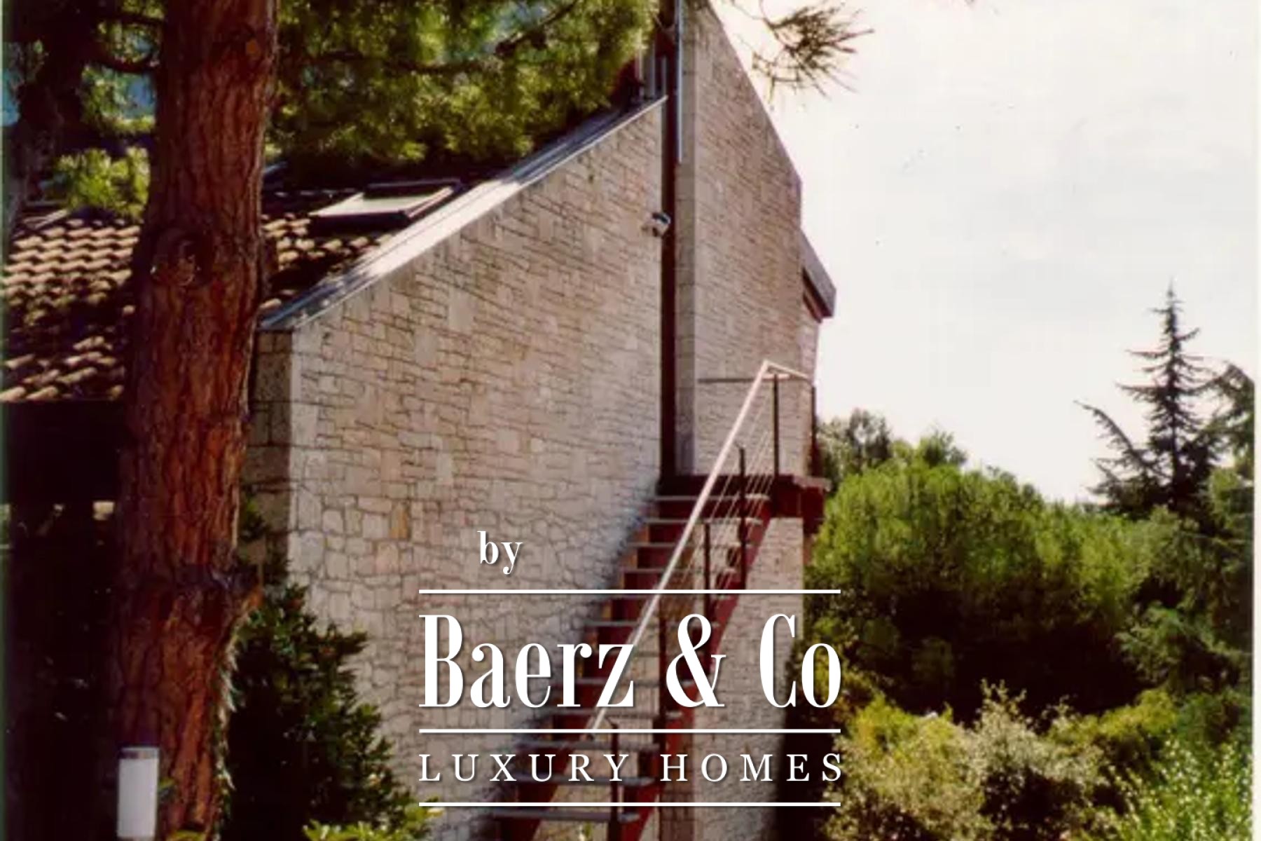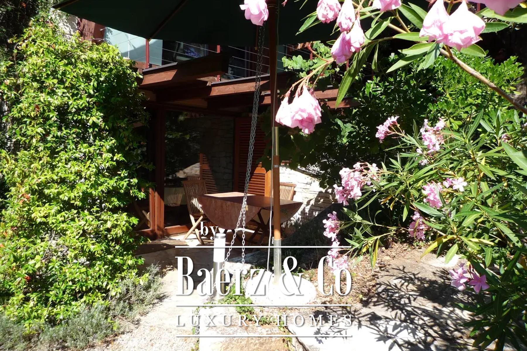 En la planta superior, cuatro dormitorios tranquilos se abren a balcones privados. Una galería y terraza sombreada ofrecen acceso a una exclusiva zona en la azotea, ideal para momentos de contemplación sobre el jardín. En el nivel inferior, una cocina de verano acristalada se combina con un área wellness con sauna, piscinas y terraza ajardinada, mientras que una bodega proporciona espacio de almacenamiento, instalaciones centrales y lavandería.