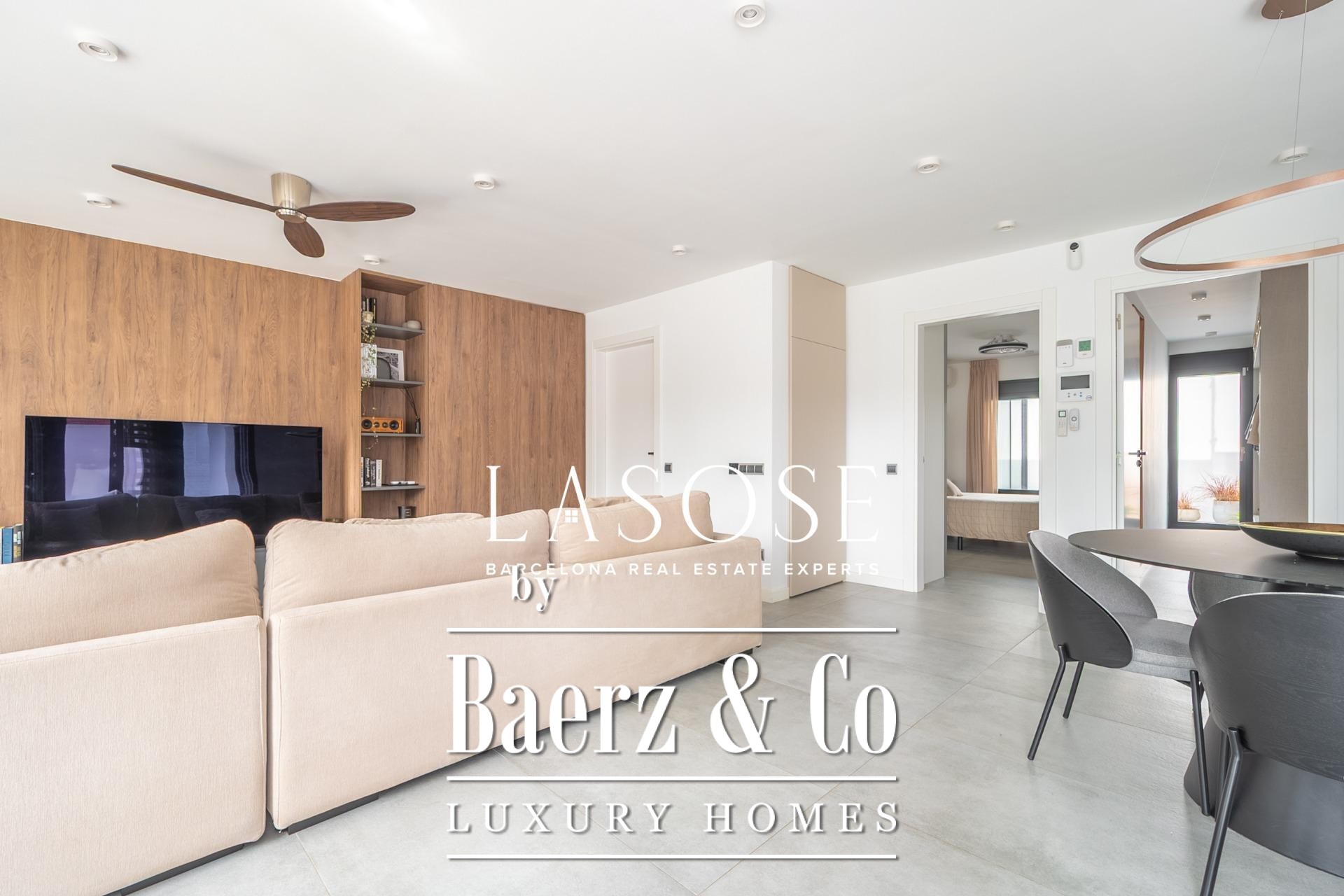 La cocina moderna, equipada con materiales y electrodomésticos de alta gama, se conecta tanto con el núcleo del hogar como con una agradable terraza cubierta, facilitando encuentros al aire libre. La suite principal dispone de un baño de diseño y un amplio vestidor, mientras que el segundo dormitorio cuenta con acceso directo a un baño completo—ofreciendo un equilibrio entre confort y privacidad elegante. El control climático durante todo el año se garantiza mediante bombas de calor y frío en cada estancia; las ventanas doble acristalamiento y persianas regulables refuerzan el aislamiento térmico y acústico. Cada detalle, desde la iluminación hasta los acabados, refleja una sobria sofisticación atemporal.