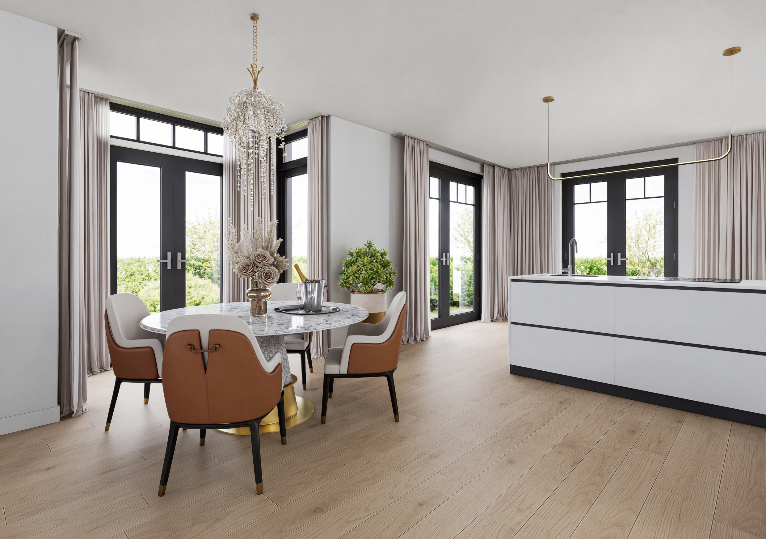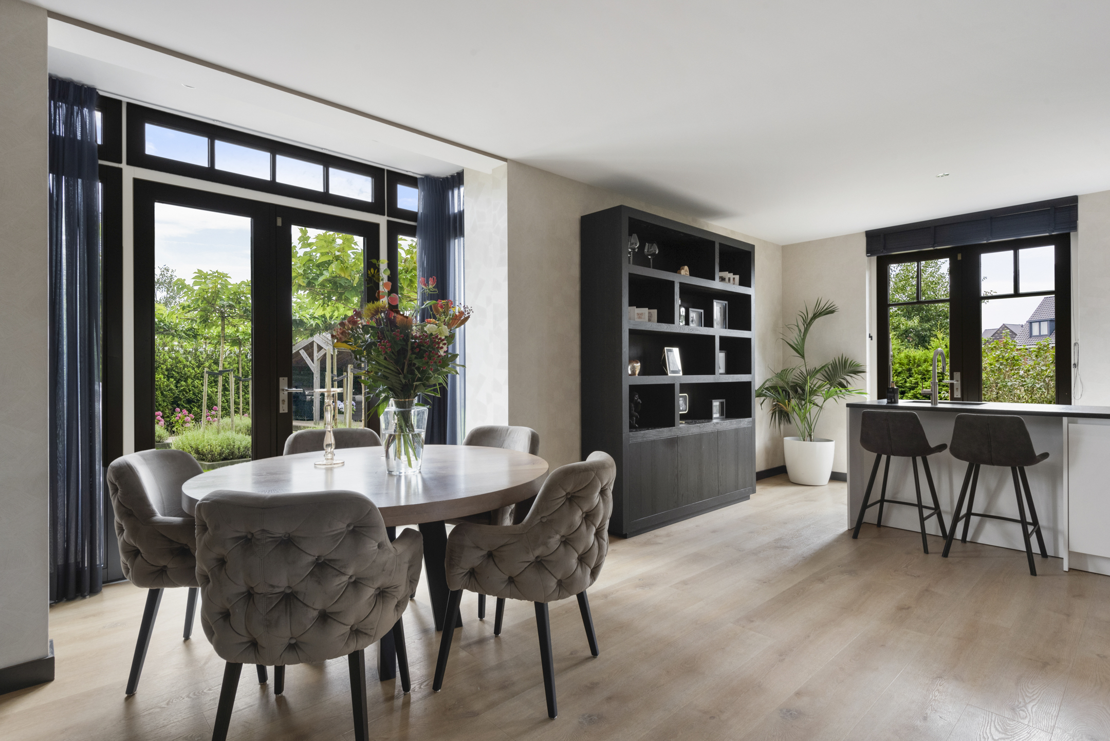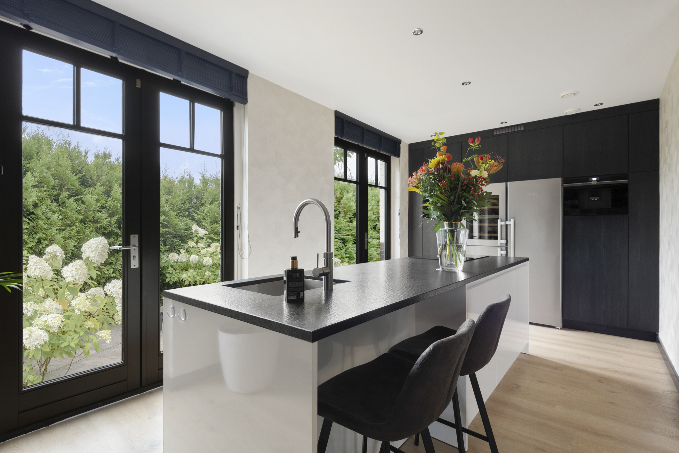 Les espaces salon et salle à manger s’articulent autour d’un mur cinéma sur mesure et d’une cheminée gaz à haut rendement ; plusieurs portes-fenêtres s’ouvrent directement sur le jardin exposé sud-est. La cuisine est équipée d’appareils Miele, Siemens et Bora, idéale pour les amateurs de grande gastronomie. À l’extérieur, une terrasse couverte de 22 m², un salon chauffé et une piscine privée composent un refuge utilisable toute l’année. Le terrain comprend un garage et des emplacements pour plusieurs véhicules, mettant l’accent sur la confidentialité et la praticité.