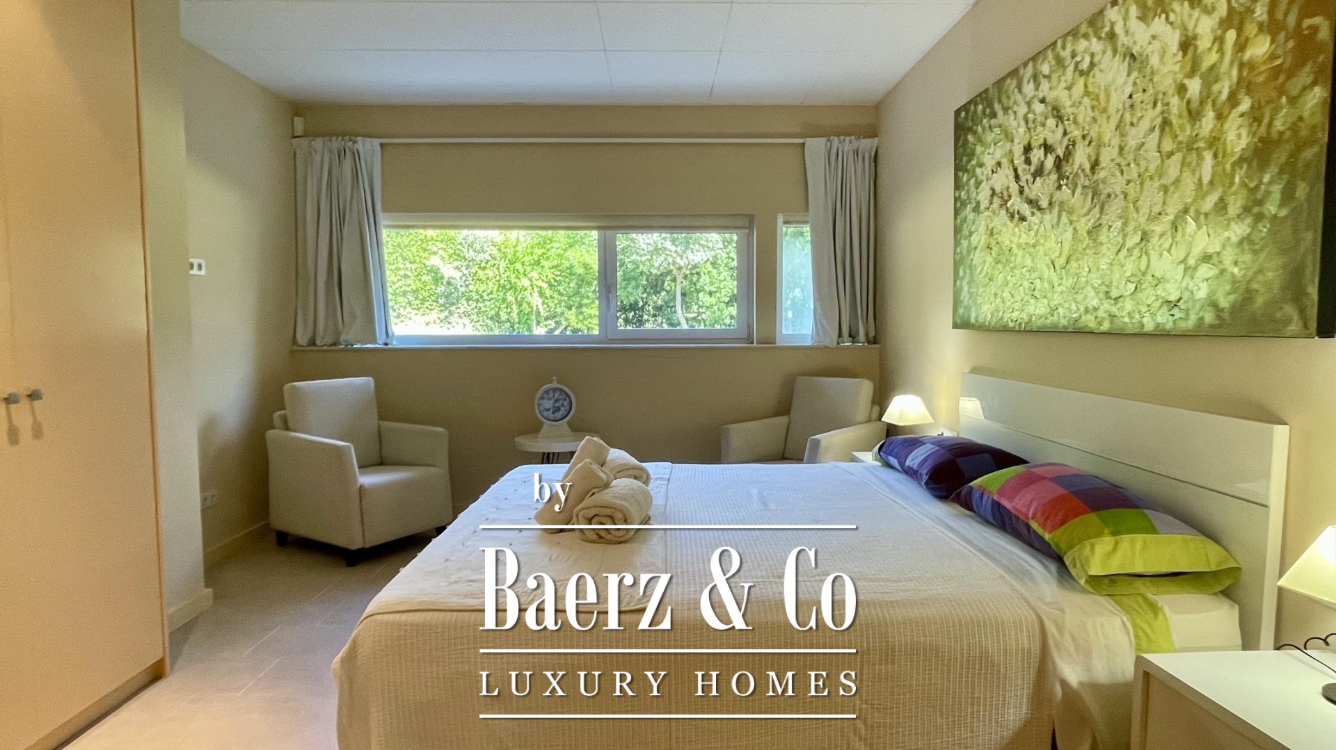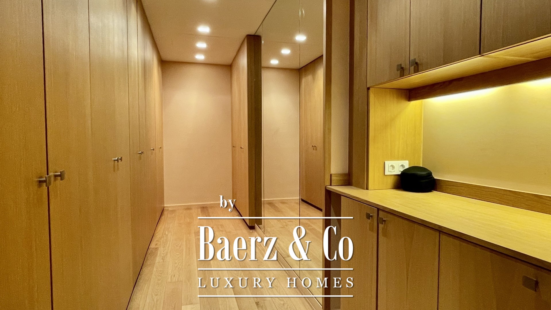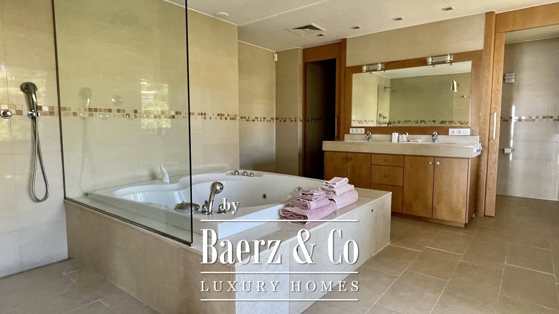 Un niveau inférieur, dédié aux invités et au bien-être, élargit les perspectives grâce à une piscine intérieure chauffée, une salle de sport, un spa et trois chambres doubles en suite, idéales pour recevoir ou loger le personnel. À l’extérieur, une piscine de 21 x 7 mètres s’impose au cœur des jardins soignés, entourée de terrasses et d’un patio propice à la contemplation.