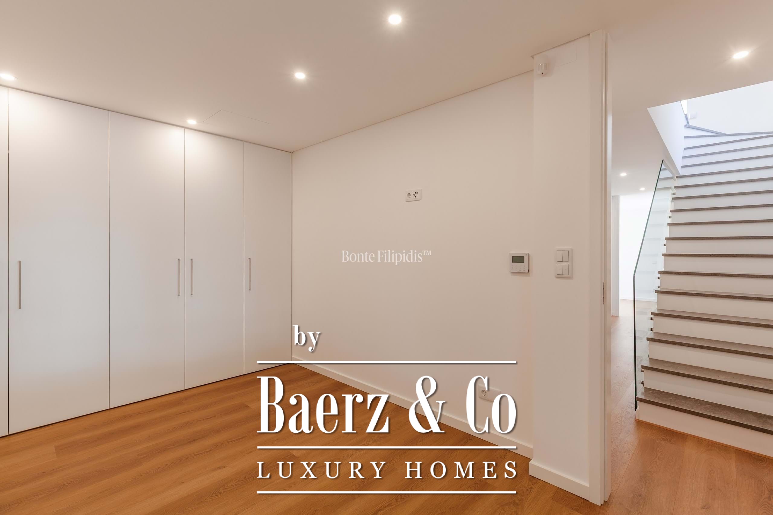 Cette maison de ville à Carcavelos e Parede s’inspire de l’architecture contemporaine pour offrir un cadre de vie élégant et discret, déployé sur 217 m² et trois étages soigneusement agencés. La cuisine ouverte, équipée d’appareils haut de gamme, s’intègre harmonieusement au salon, laissant la lumière naturelle circuler tout en reliant l’intérieur à l’espace extérieur et à la terrasse paysagée. Une suite supplémentaire au niveau d’entrée apporte polyvalence et intimité, idéale pour recevoir ou pour s’adapter à différents modes de vie.