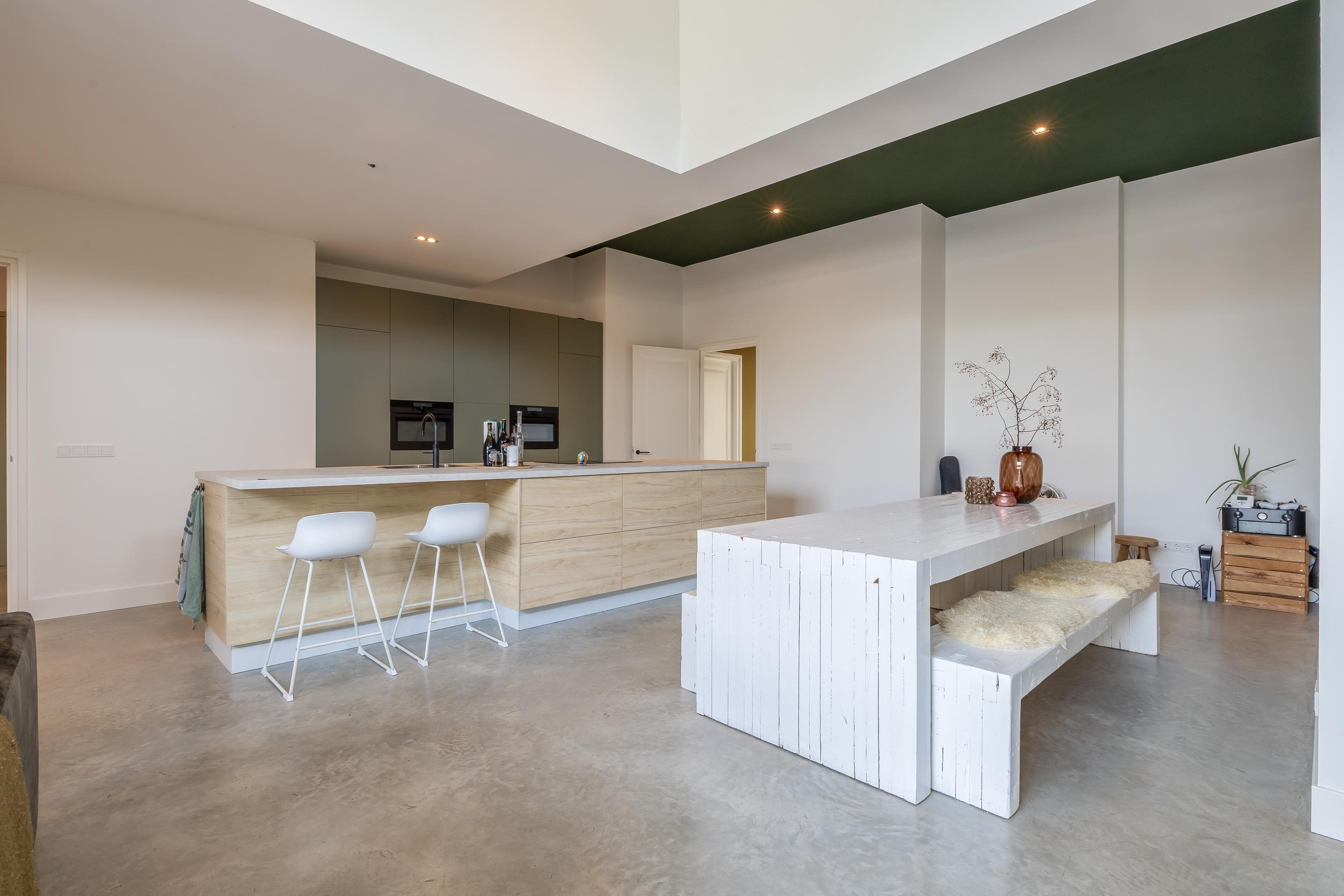 Cet appartement de style loft à Horst offre 180 m² de vie raffinée sur un généreux terrain de 379 m², idéalement situé en toute discrétion au cœur de la ville. Entièrement rénovée en 2022, la résidence séduit par son design soigné et ses matériaux durables, affichant un label énergétique A+++. Dès l'entrée, lumière et espace rythment les lieux, avec un vaste séjour ouvert sur une cuisine élégante dotée d’un îlot central, d’une plaque à induction Bora, d’un robinet Quooker et d’équipements haut de gamme. Les plafonds majestueux et les larges baies vitrées inondent la pièce de lumière naturelle, créant une atmosphère de sophistication apaisée.