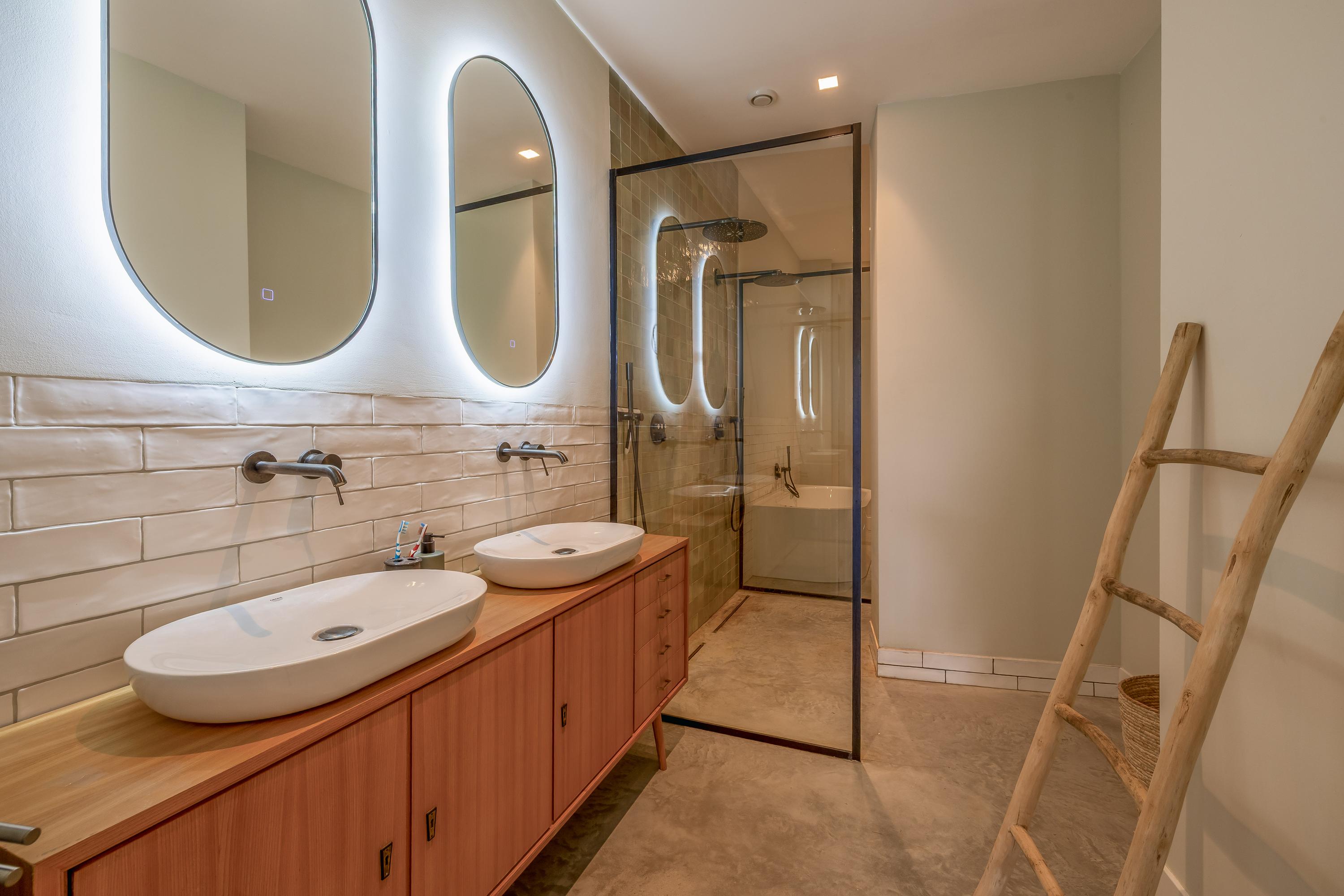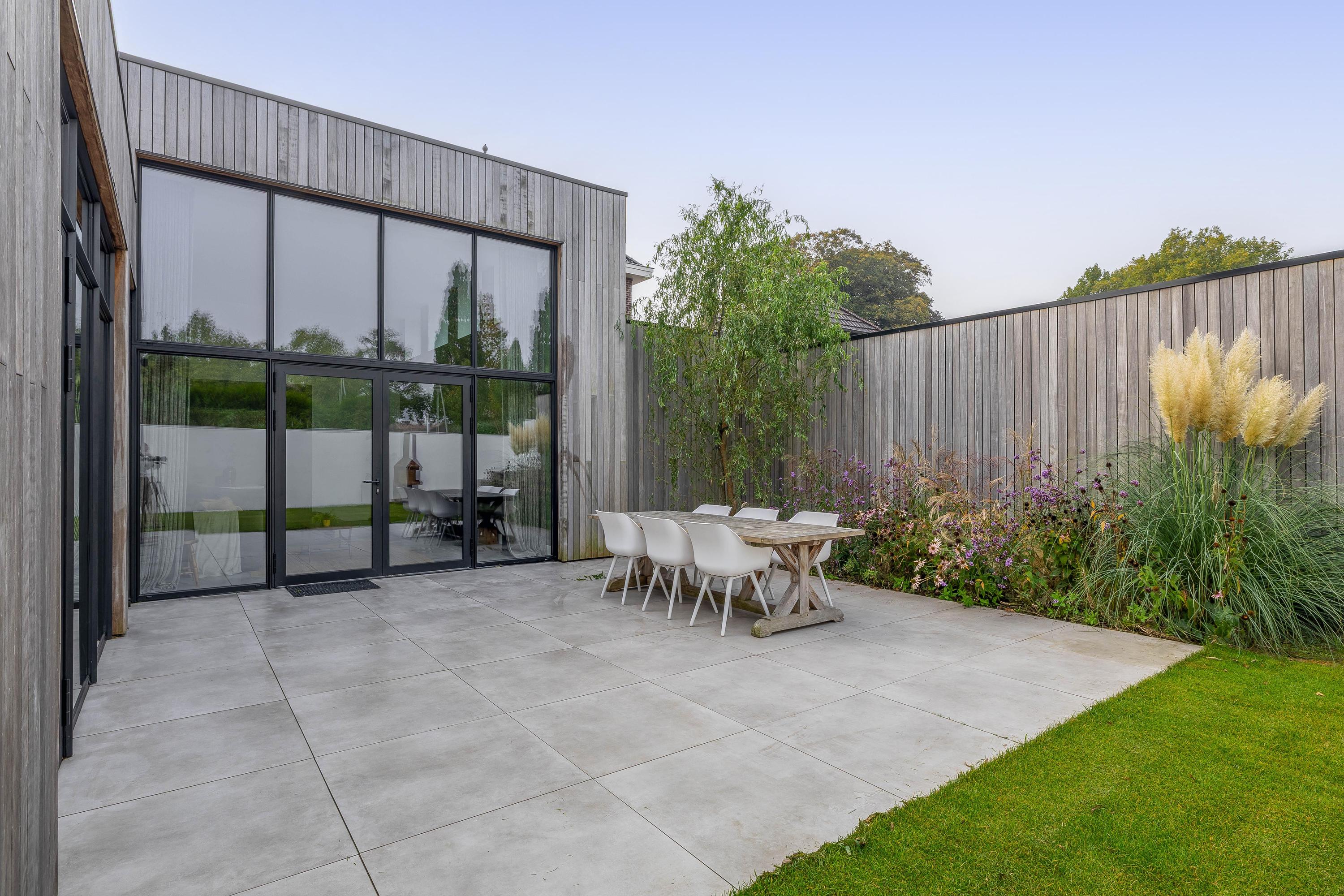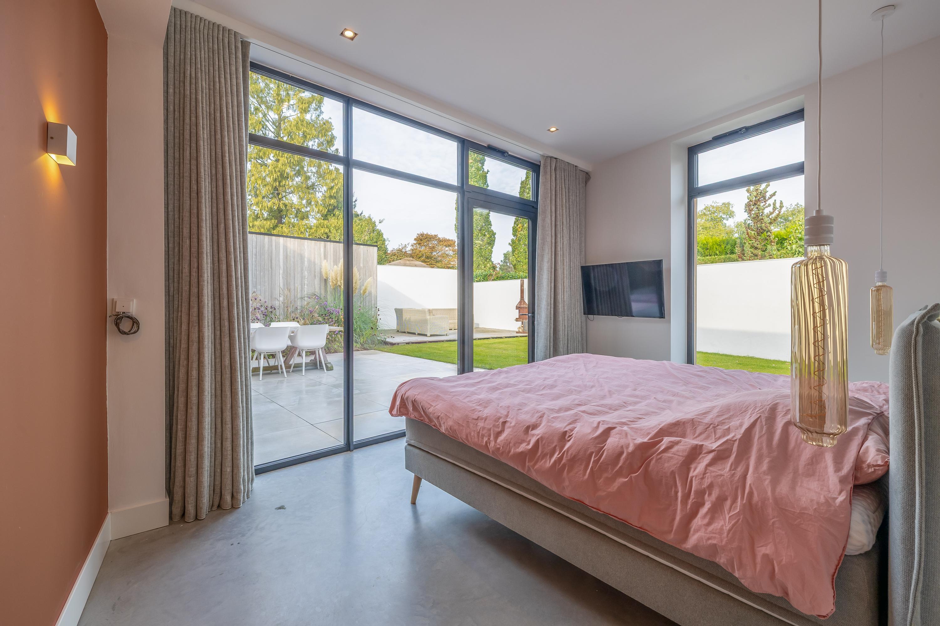 Quatre chambres spacieuses, équipées de fenêtres toute hauteur donnant sur le jardin privé paysager, dont une suite avec accès direct à l’extérieur, offrent un confort exceptionnel. Une pièce supplémentaire, attenante au hall, s'adapte à vos besoins de loisirs, bureau ou salle de jeux, soulignant la polyvalence des espaces. La grande salle de bains procure un confort luxueux avec baignoire, double douche à l’italienne et double vasque. Le chauffage au sol s’étend à l’ensemble de la propriété, complété par des châssis aluminium équipés de vitrages HR+++, une isolation de haute performance et des panneaux solaires.