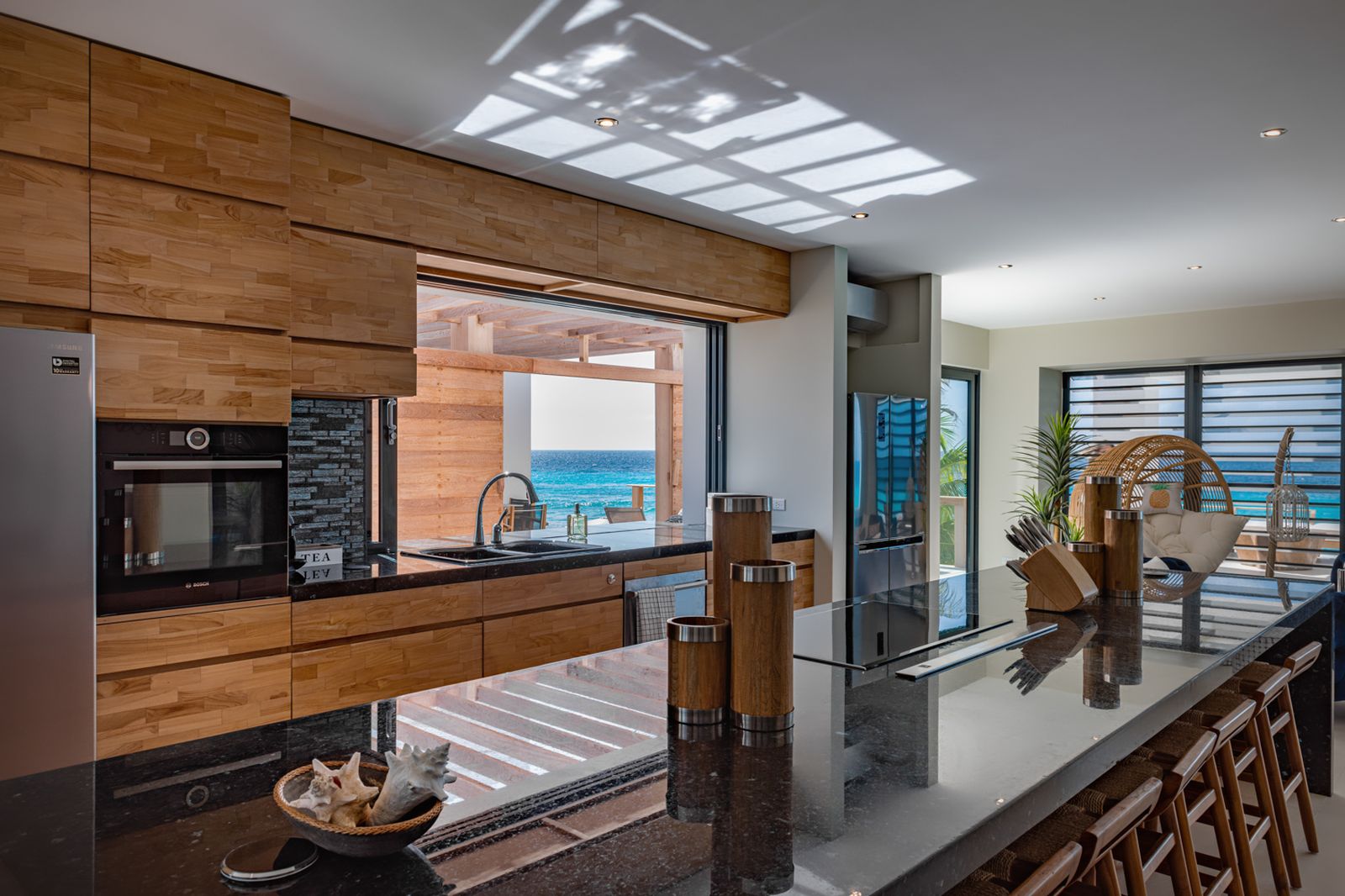 La villa de plage Kralendijk s’érige sur la paisible côte sud, offrant un accès immédiat à la mer des Caraïbes et une immersion totale dans des vues océaniques majestueuses. L’architecture contemporaine de la villa se distingue par des lignes épurées, de larges baies vitrées et une palette sobre qui met en valeur la lumière naturelle et la perspective dégagée sur la mer. Dès l’entrée, la lumière glisse sur les sols en béton poli, rehaussés d’accents de bois chaleureux pour instaurer une atmosphère paisible et durable.