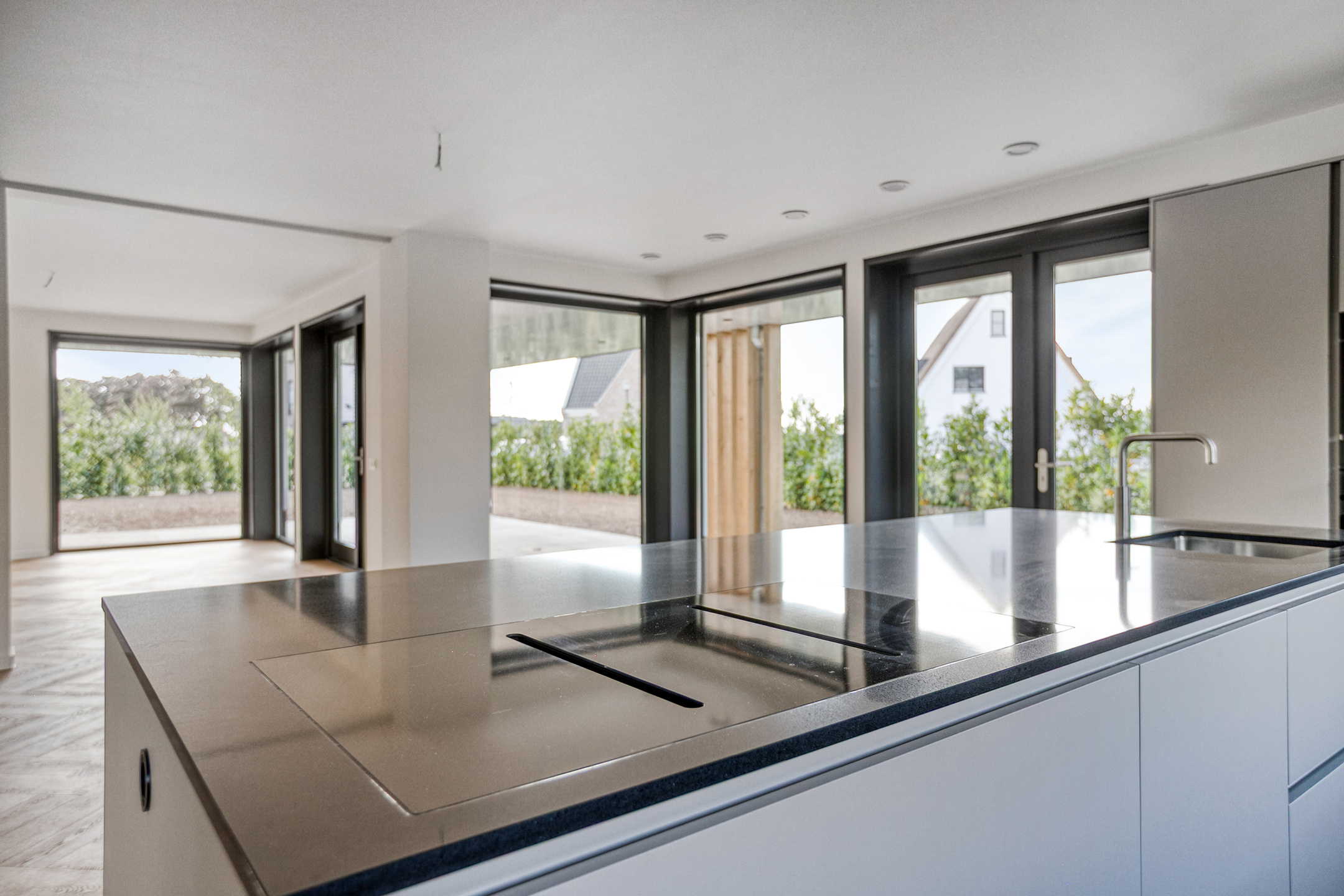 Cette villa de luxe à vendre à Meteren est livrée sans gaz, équipée de panneaux solaires, d’une pompe à chaleur géothermique, et bénéficie du label énergétique A+++. Le chauffage et la climatisation par le sol associés à une isolation haut de gamme assurent un environnement paisible et économe. Le jardin, pensé pour l’intimité et la détente, enveloppe la maison et invite à un aménagement paysager personnalisé.