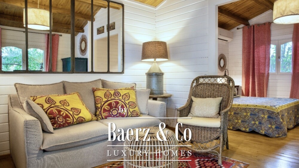 2. Aangrenzend aan het hoofdgebouw bevinden zich nog twee gastenkamers, eveneens met een eigen badkamer, waarvan één ook een kleine woonkamer met kitchenette heeft.