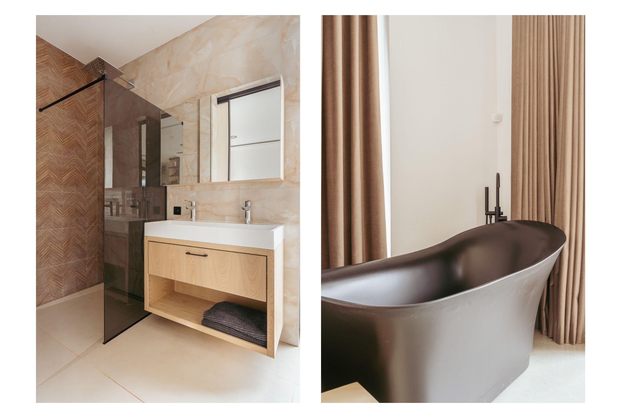 Op de begane grond bevindt zich de riante master bedroom met en-suite badkamer. Deze luxe badkamer is voorzien van een inloopdouche, dubbele wastafel met meubel en toilet. Het vrijstaande ligbad dat direct in de slaapkamer is gesitueerd draagt bij aan een hotelwaardige uitstraling. Daarnaast is er een comfortabel gastenverblijf aanwezig, eveneens met een eigen badkamer welke is uitegerust met wastafel met meubel, inloopdouce en toilet. Uniek is de volledig zelfstandige extra woonruimte op deze verdieping, bestaande uit een eigen woonkamer met keuken, slaapkamer en badkamer. Deze ruimte is uitermate geschikt voor bijvoorbeeld een au pair, mantelzorg, gastenverblijf of kantoor aan huis. Verder bevinden zich op deze verdieping een separaat toilet, de meterkast en diverse praktische bergruimtes. De fraai aangelegde tuin is op het zuiden gesitueerd. Er is een royaal terras met een vaste buitenkeuken en barbecue gerealiseerd, ideaal voor lange zomeravonden. Achter in de tuin bevindt zich een vrijstaand tuinhuis, dat uitstekend kan worden ingericht als home gym, hobbyruimte of werkplek aan huis.
