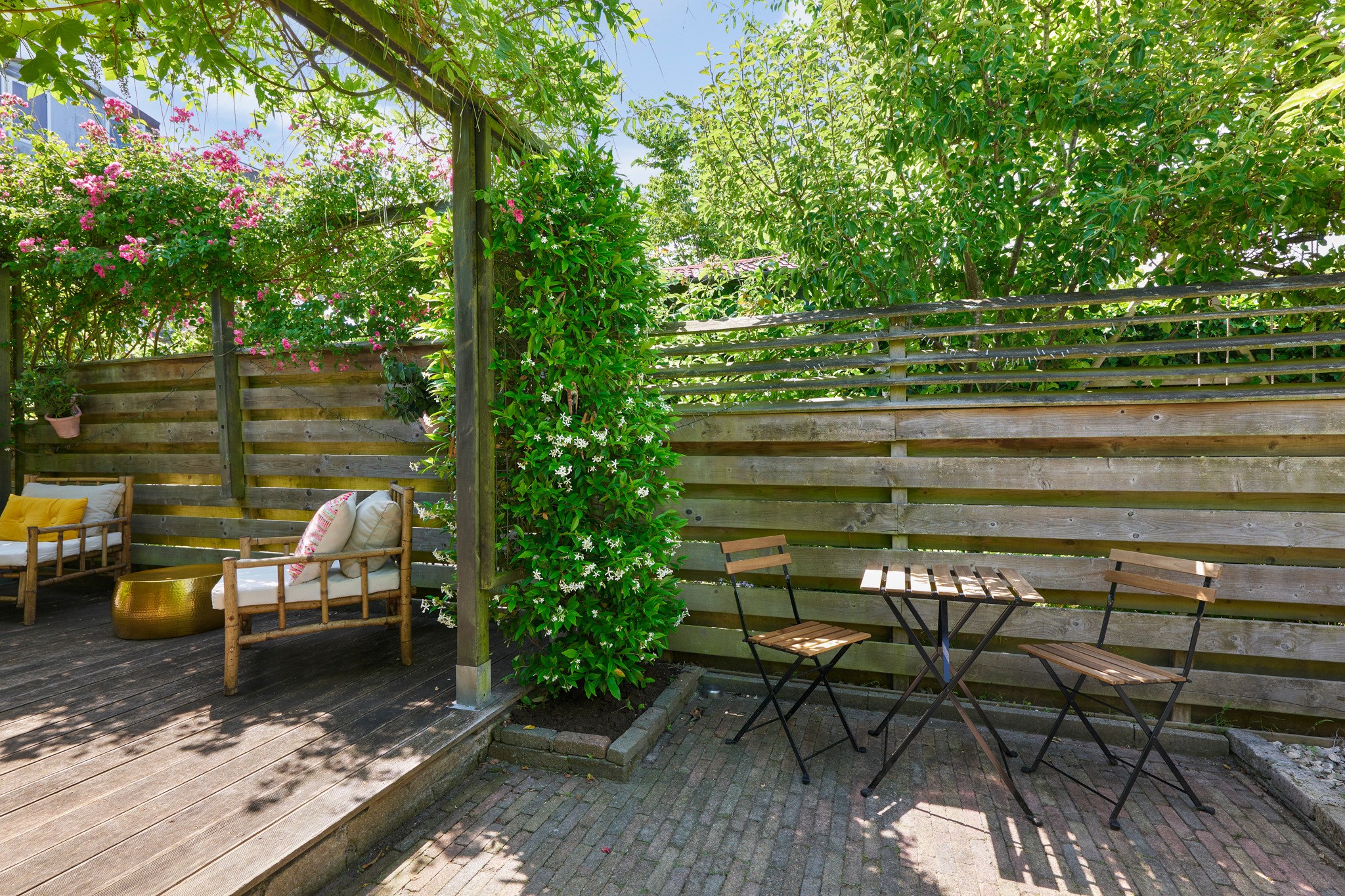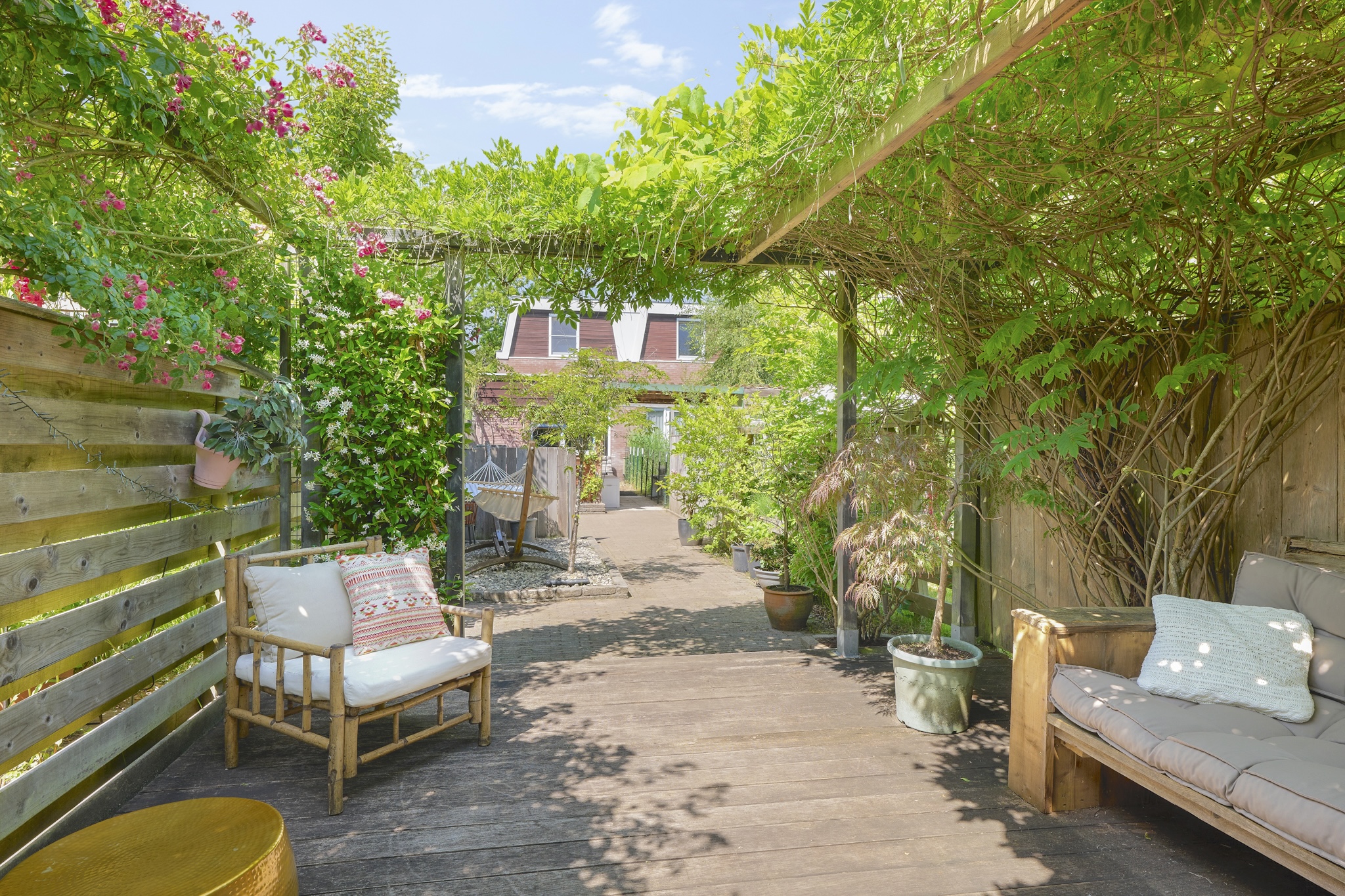 De tuin is fraai aangelegd met een combinatie van terrassen, borders en veel beplanting.Dankzij de royale afmetingen biedt de tuin volop mogelijkheden voor kinderen om te spelen, voor het plaatsen van een buitenkeuken of zelfs het aanleggen van een moestuin. Het geheel ademt de sfeer van een groene stadsidylle: een oase van rust en privacy, midden in Amstelveen, waar u optimaal van het buitenleven kunt genieten.