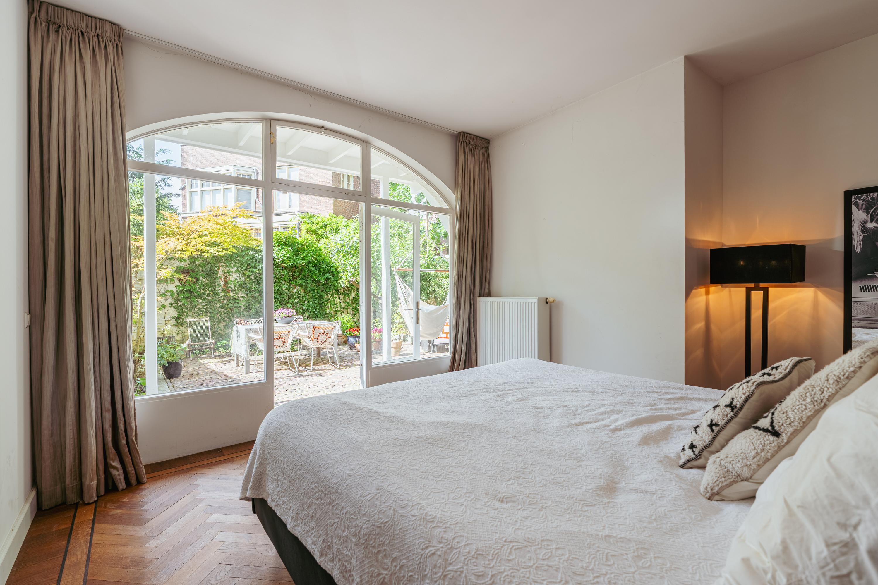 Het volwaardige souterrain biedt twee goed bemeten slaapkamers. De grootste slaapkamer is extra bijzonder dankzij de aanwezigheid van een authentieke open haard. Beide slaapkamers hebben openslaande deuren naar de diepe en beschutte achtertuin van circa 56 m², waar u in volledige privacy kunt ontspannen.
