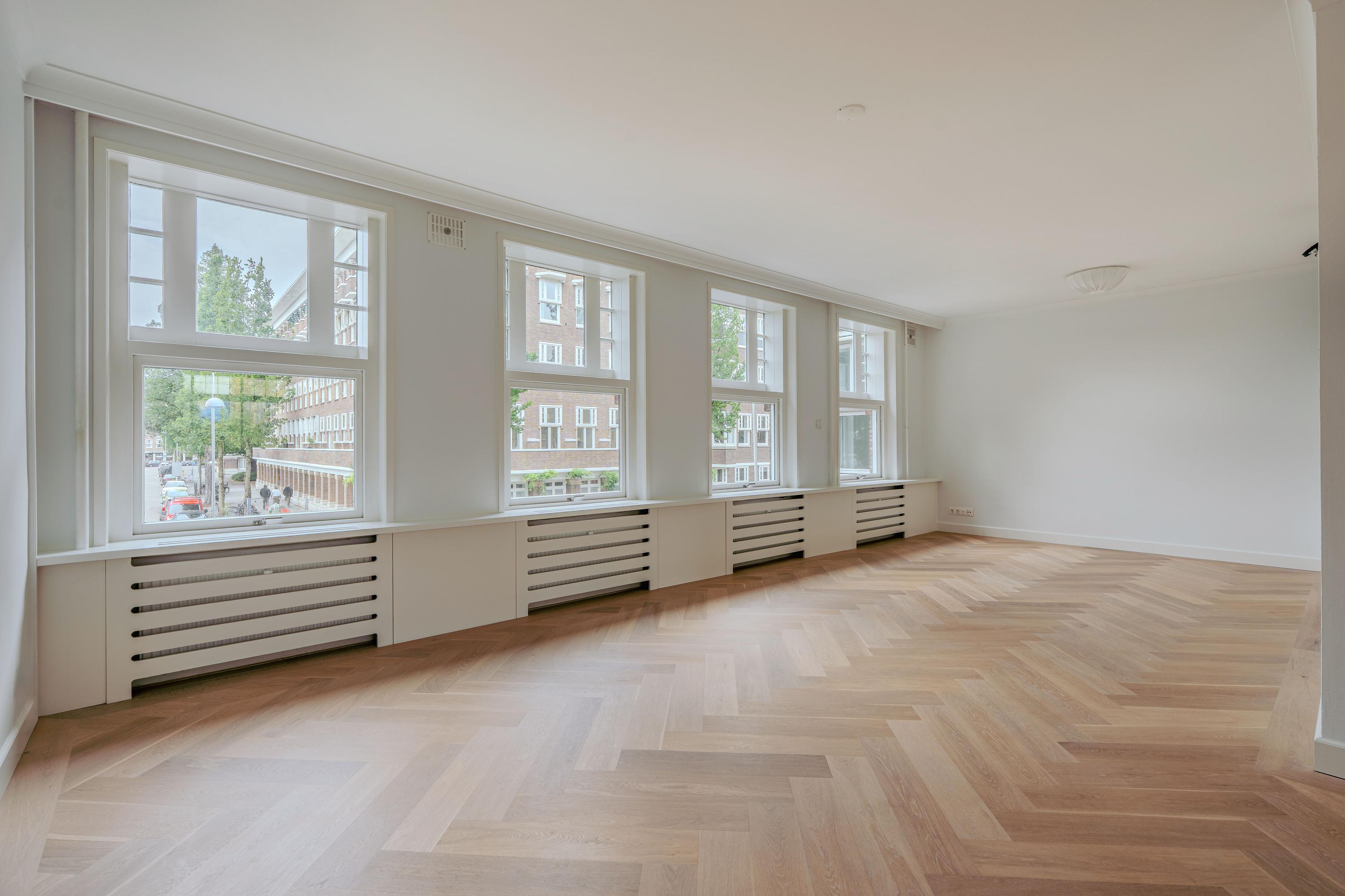 Prachtig licht en luxe verbouwd 3-kamerappartement van ca. 123 m² met sauna, lift, balkon en privéberging, gelegen op een toplocatie in Amsterdam-Zuid, om de hoek van de Beethovenstraat. De woning beschikt over twee ruime slaapkamers met eigen badkamers maar is ruim genoeg om eenvoudig een extra slaapkamer te creëren.