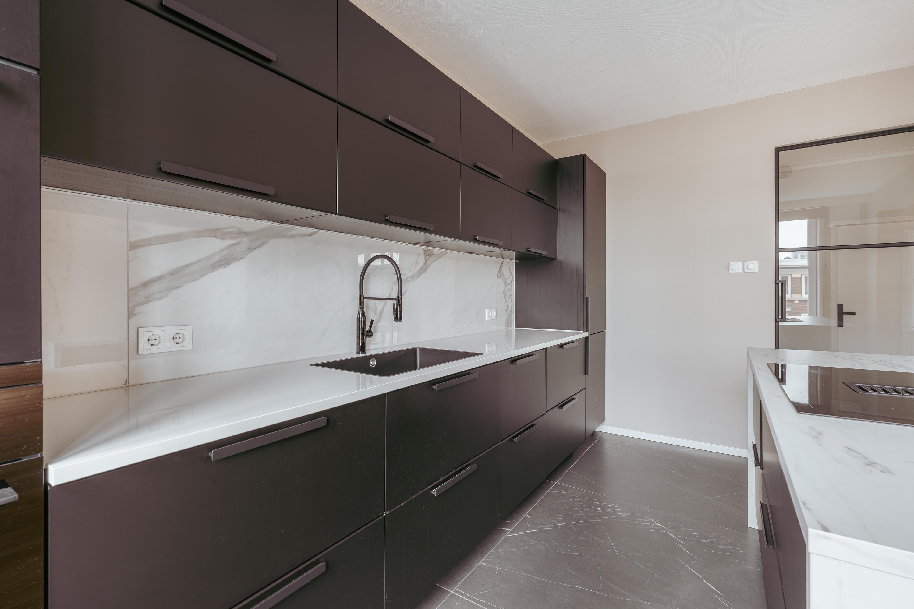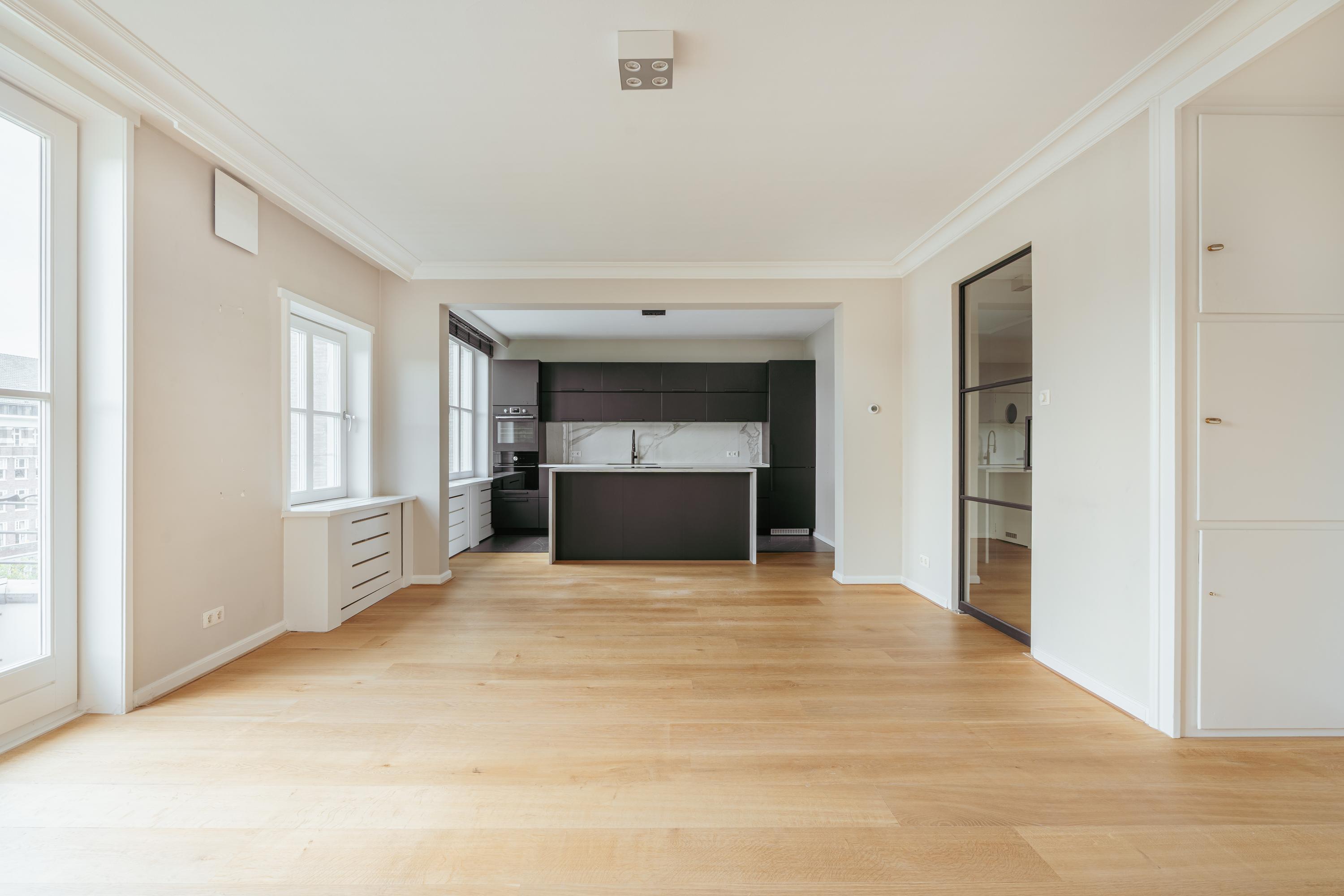 Via de entree komt u in een royale hal die toegang biedt tot alle vertrekken. Aan de voorzijde bevindt zich de lichte, ruime living met een sfeervolle open keuken. Deze woon- en kookruimte is voorzien van ingebouwde kasten en airconditioning, en beschikt over openslaande deuren naar een charmant zuidelijk georiënteerd balkon. De moderne open keuken is uitgerust met diverse hoogwaardige inbouwapparatuur en een centraal kookeiland met gezellig bargedeelte. Hier vindt u een inductiekookplaat met geïntegreerd afzuigsysteem, een combi-oven, vaatwasser, koelkast en vriezer.