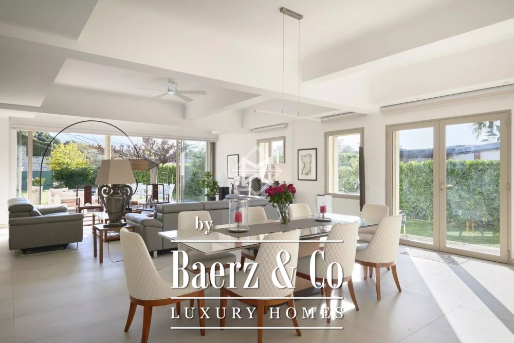 Villa Antibes biedt een zeldzame combinatie van gerenoveerde luxe en panoramisch zeezicht. Deze villa in Antibes beslaat 400 m² verdeeld over meerdere niveaus, discreet gelegen binnen een privé domein op korte loopafstand van de stranden. De entree vloeit over in ruime woon- en eetkamers die naadloos overgaan in de tuin, een schaduwrijk terras en een zwembad. Op de begane grond bevindt zich een royale, volledig uitgeruste keuken en een speciaal petanqueterrein, waardoor een subtiele balans ontstaat tussen binnen- en buitenleven. Een slaapkamer met en-suite badkamer completeert dit niveau.