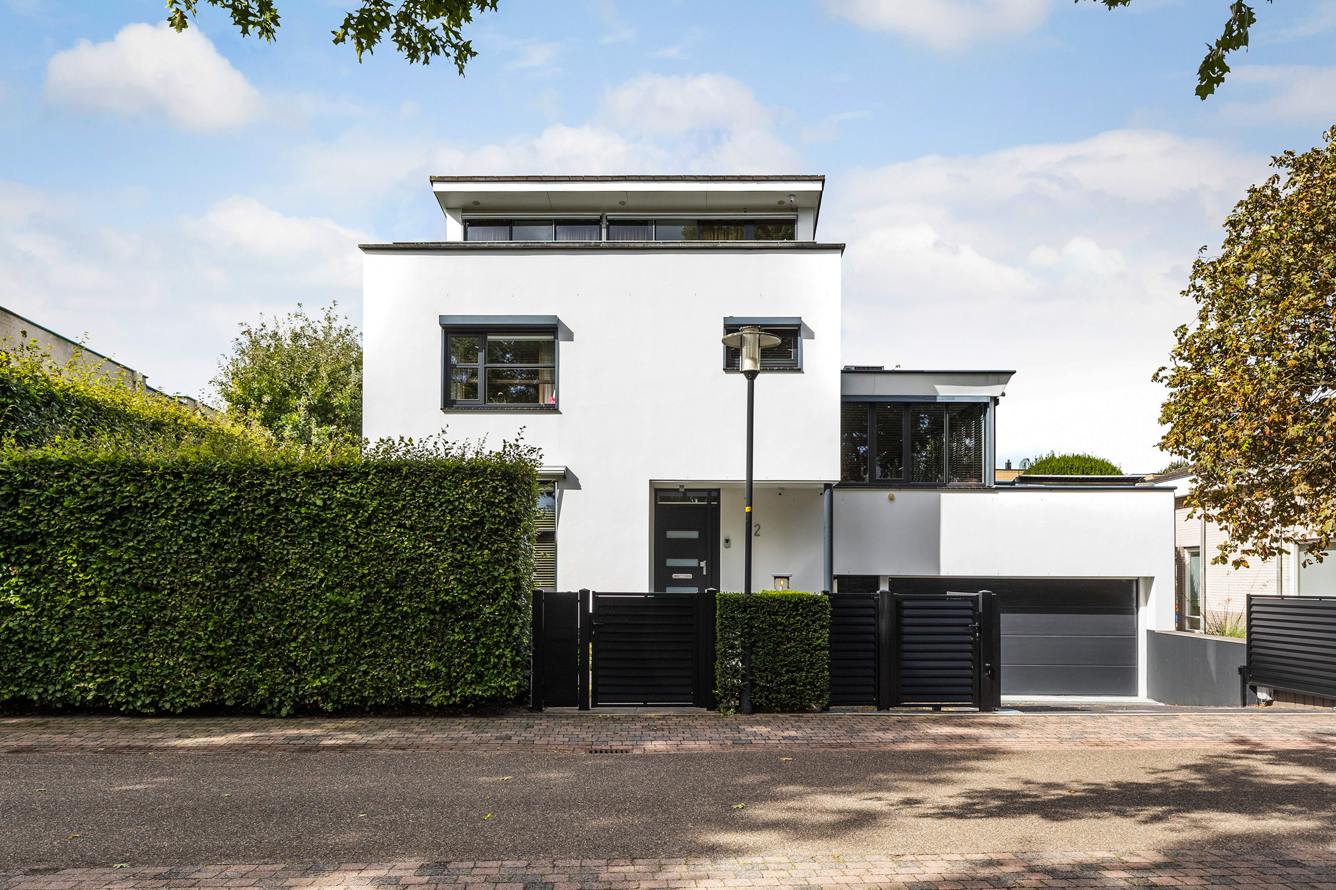 De living ademt rustige luxe, met een sfeervolle gashaard, maatwerkkasten en een geïntegreerde televisieopstelling. Grote raampartijen verbinden het interieur naadloos met de tuin; het lichtspel in huis is spectaculair.