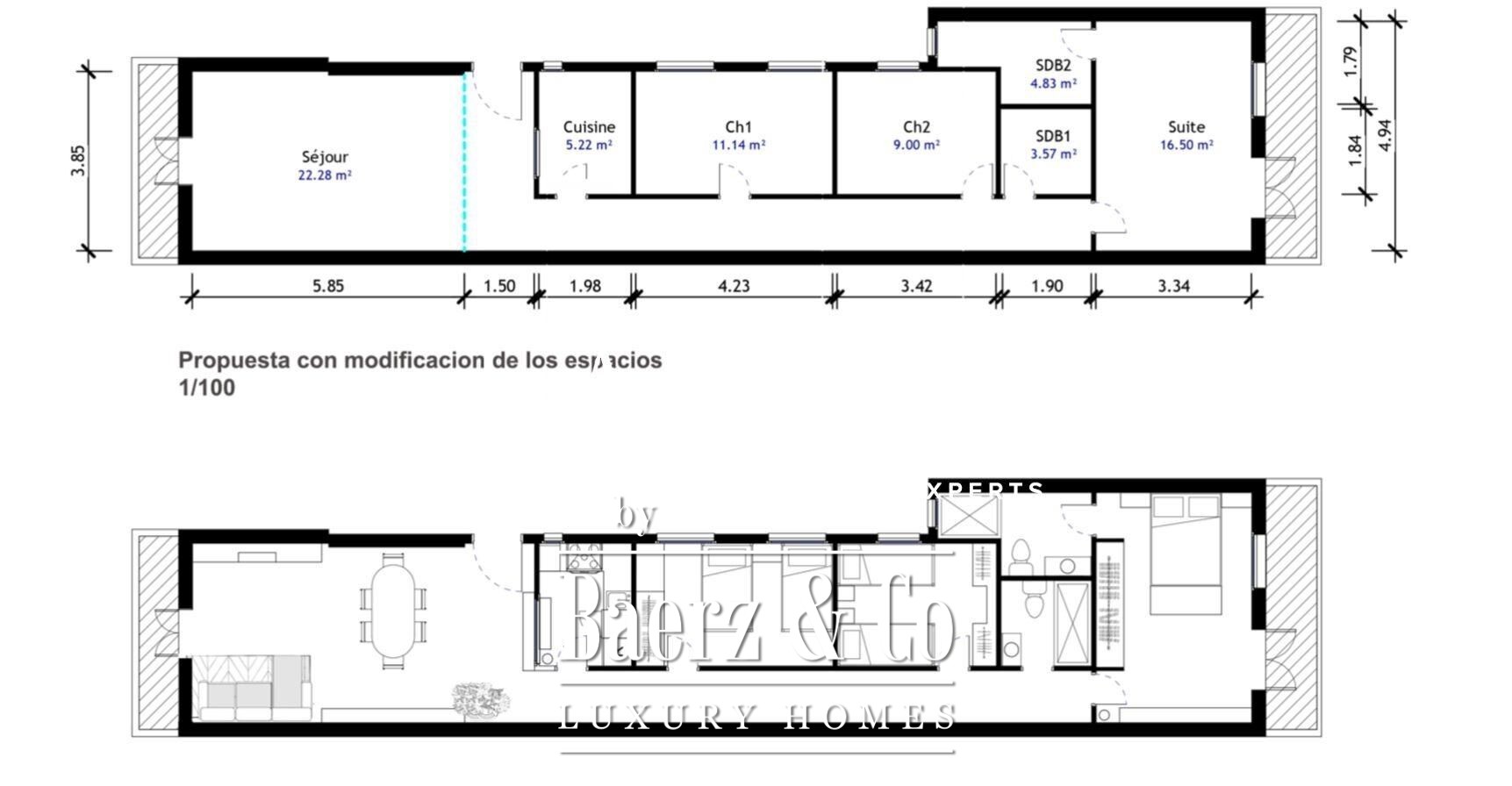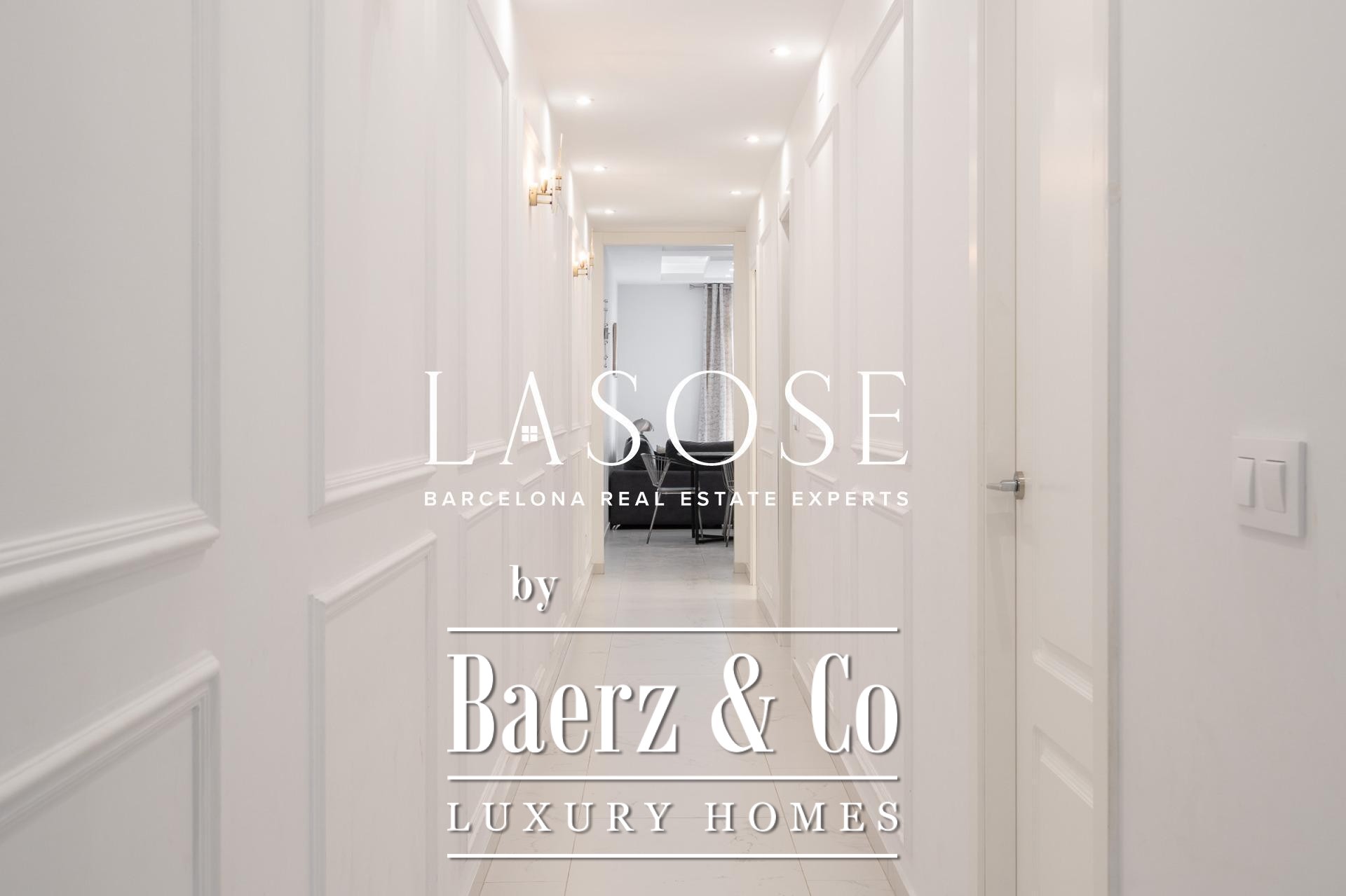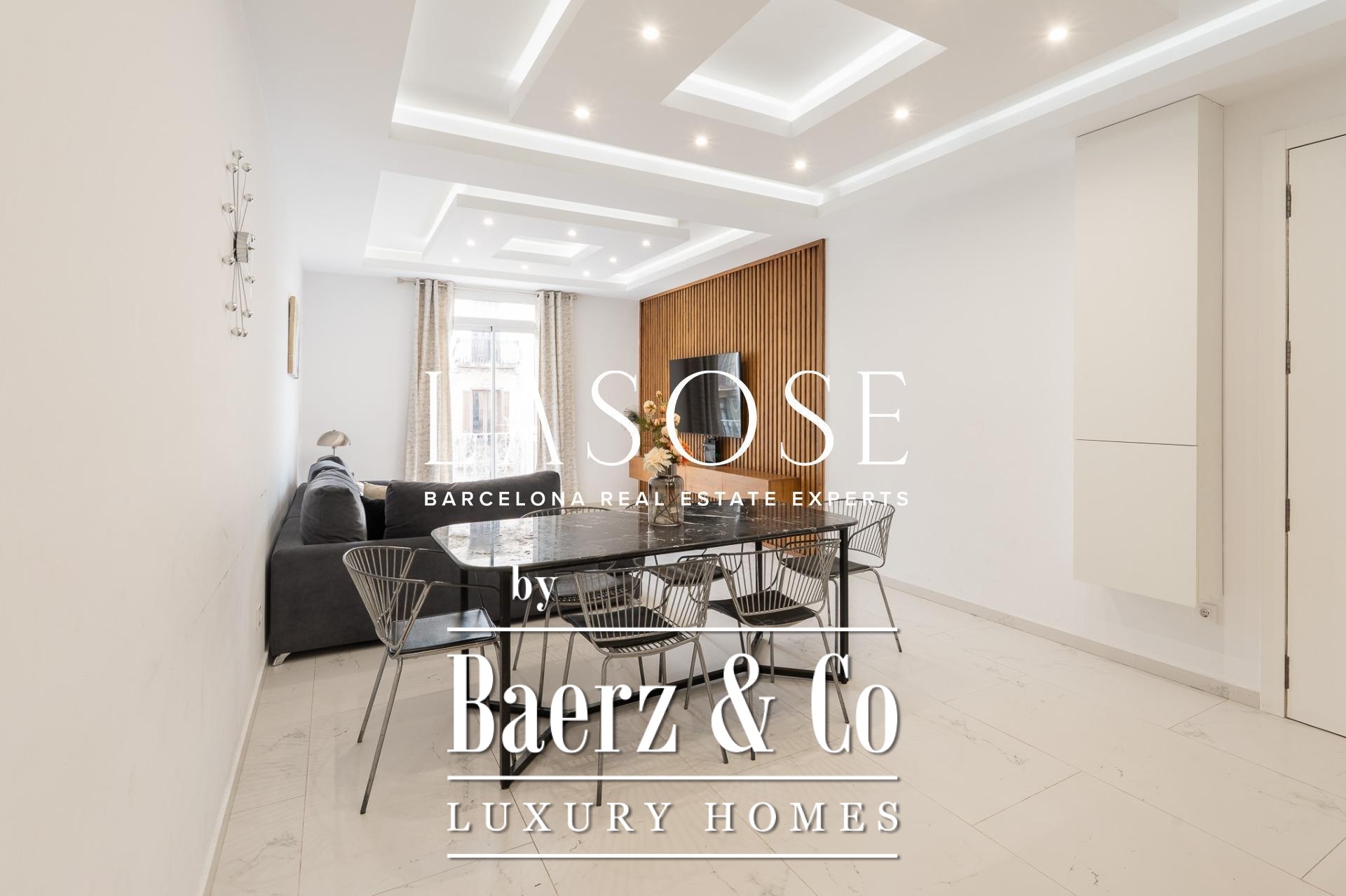 Appartement Barcelona Eixample Esquerra onderscheidt zich door zijn adres aan een exclusieve straat in het hart van de Consell de Cent. Deze woning van 109 m² is in 2022 gerenoveerd, waarbij hedendaags design samenkomt met verfijnd vakmanschap en hoogwaardige materialen. De zuidelijke oriëntatie zorgt ervoor dat daglicht elk hoekje bereikt en de elegante texturen en open ruimtes subtiel tot hun recht komen.