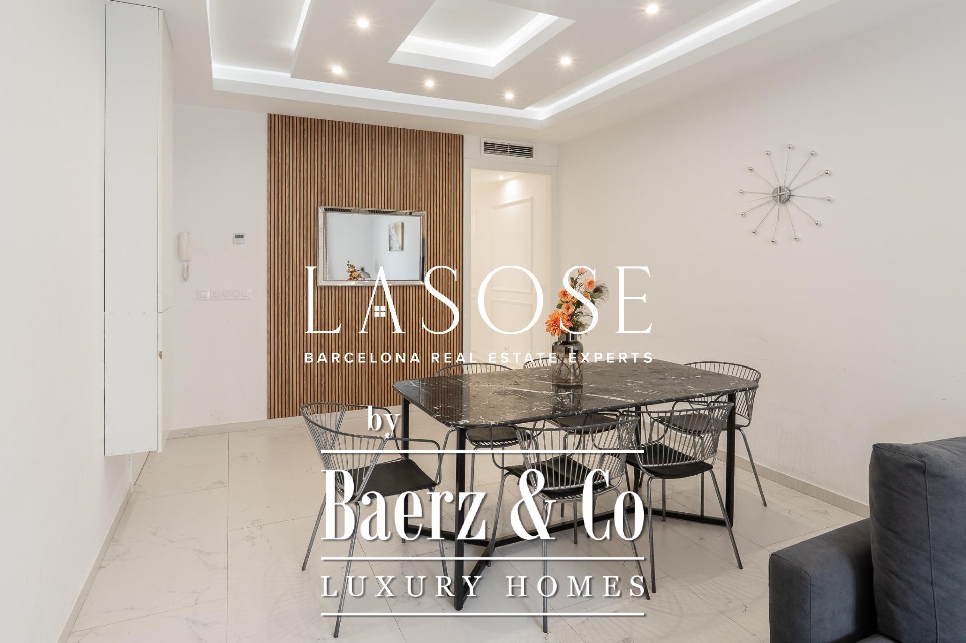 Geïntegreerde airconditioning voor zowel verwarming als koeling, aluminium kozijnen, inbouwkasten en de focus op energiezuinigheid onderstrepen het eigentijdse karakter. Het appartement wordt volledig gemeubileerd aangeboden. Buiten zijn de Rambla Catalunya en Passeig de Gràcia op steenworp afstand, met gerenommeerde restaurants, stijlvolle boetieks en uitstekende openbaar vervoersverbindingen. Hier ligt het ritme van Barcelona letterlijk aan uw voeten—een instapklare woning in Eixample Esquerra voor wie waarde hecht aan balans en stedelijk comfort.