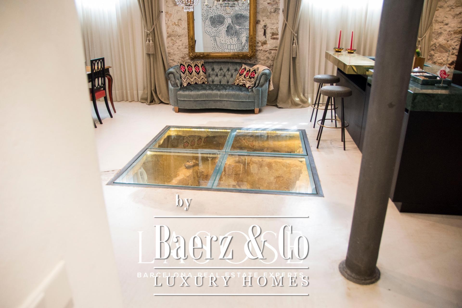 De woon- en eetruimtes zijn bij uitstek geschikt voor samenkomsten, versterkt door een Hi-Fi surround sound systeem en een projectiescherm voor meeslepende avonden. De volledig uitgeruste keuken biedt een uniek centraal zicht op Romeinse ruïnes, waardoor dagelijks leven wordt verbonden met de blijvende geest van Barcelona. Een ondergrondse wijnkelder biedt een privé toevluchtsoord beneden.