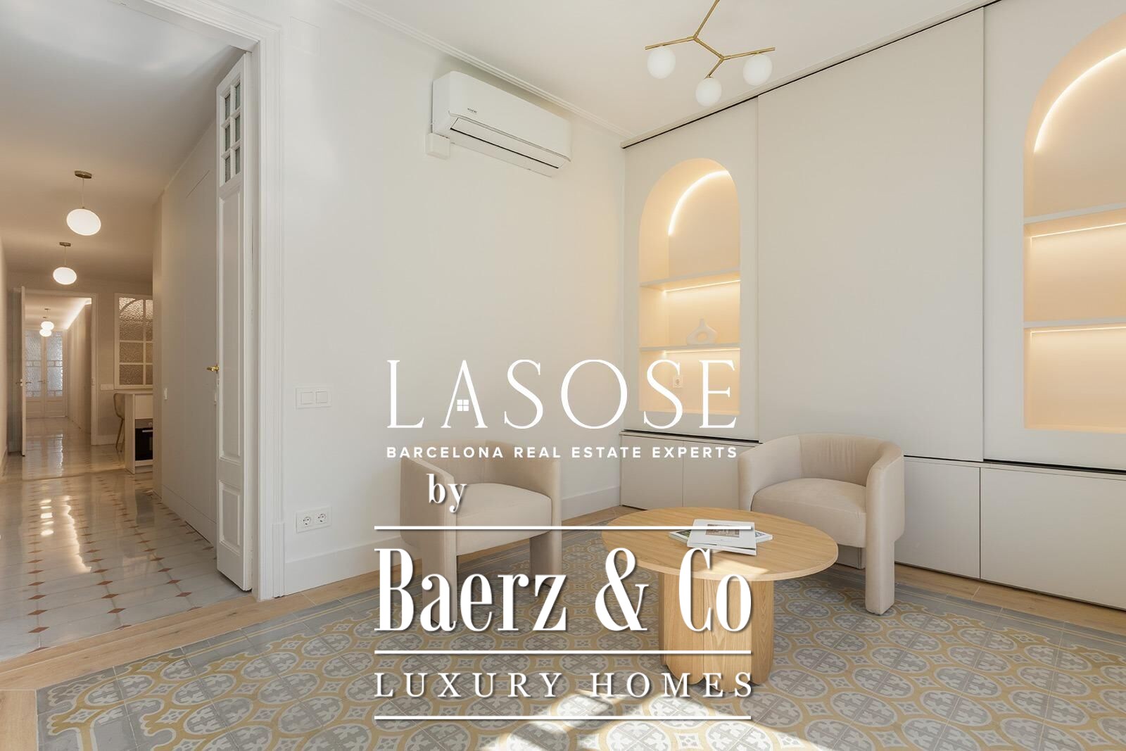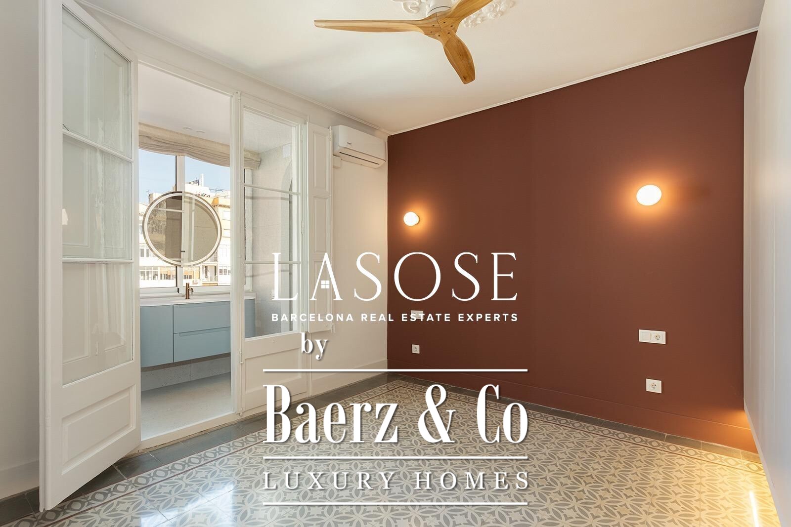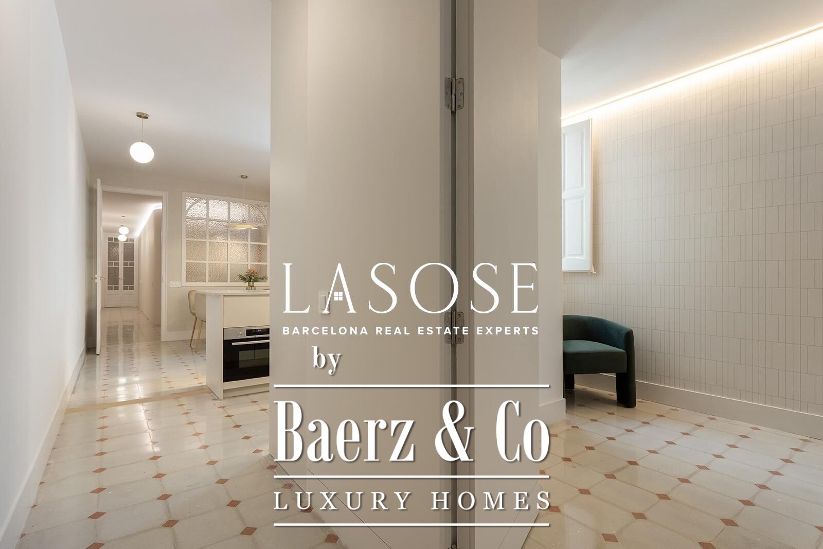 Apartment Barcelona is een residentie waar erfgoedarchitectuur harmonieus samengaat met eigentijdse renovatie, gelegen op de bovenste verdieping in Eixample. Het appartement van 115 m², volledig vernieuwd in 2025, geniet van overvloedig natuurlijk licht dankzij het zuidoostelijk georiënteerde balkon, waardoor de living zich vult met warmte en u vanuit de lounge een vrij uitzicht heeft. Originele hydraulische vloertegels en een zorgvuldig gerestaureerd Catalaans plafond benadrukken het vakmanschap uit de periode, terwijl moderne verlichting, stijlvolle badkamers en gloednieuwe apparatuur naadloos opgaan in het verfijnde geheel van dit huis.