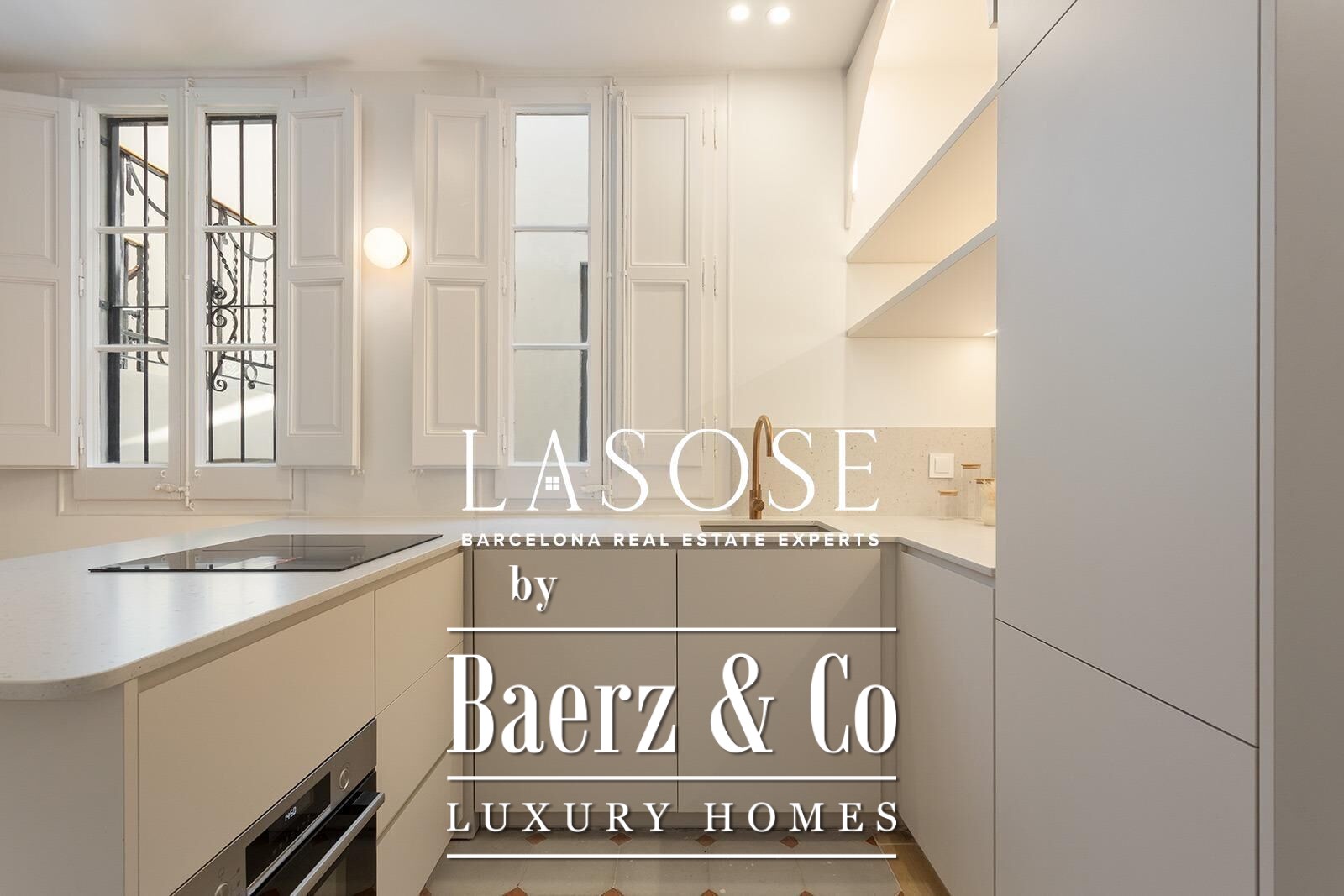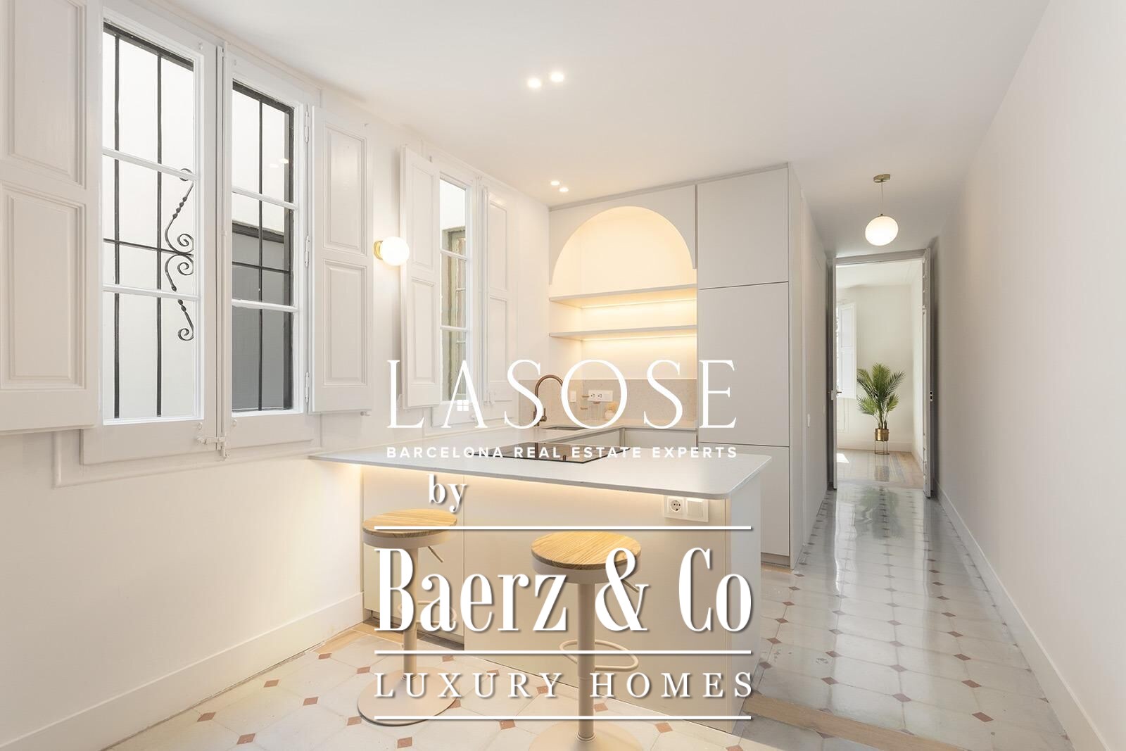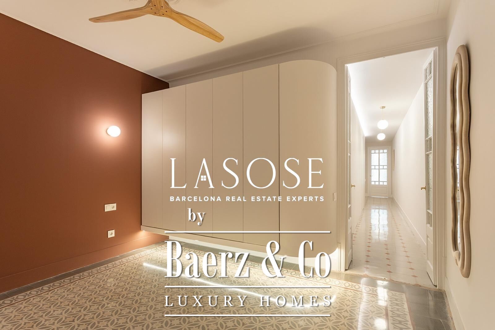 Apartment Barcelona is een residentie waar erfgoedarchitectuur harmonieus samengaat met eigentijdse renovatie, gelegen op de bovenste verdieping in Eixample. Het appartement van 115 m², volledig vernieuwd in 2025, geniet van overvloedig natuurlijk licht dankzij het zuidoostelijk georiënteerde balkon, waardoor de living zich vult met warmte en u vanuit de lounge een vrij uitzicht heeft. Originele hydraulische vloertegels en een zorgvuldig gerestaureerd Catalaans plafond benadrukken het vakmanschap uit de periode, terwijl moderne verlichting, stijlvolle badkamers en gloednieuwe apparatuur naadloos opgaan in het verfijnde geheel van dit huis.