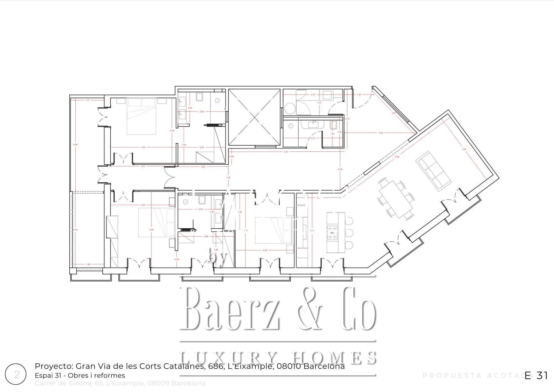 Penthouse Barcelona Quadrat d'Or bevindt zich op het felbegeerde kruispunt van Calle Girona en Gran Via de les Corts Catalanes en biedt 201 m² aan verfijnde leefruimte met een terras van 20 m². Deze woning combineert historie met hedendaags design, op slechts enkele passen van de Passeig de Gràcia en Plaça Catalunya. Omringd door hotels, theaters, restaurants, scholen en exclusieve winkels en volledig ontsloten door het openbaar vervoer, bevindt u zich hier in het hart van Barcelona’s iconische Quadrat d'Or.
