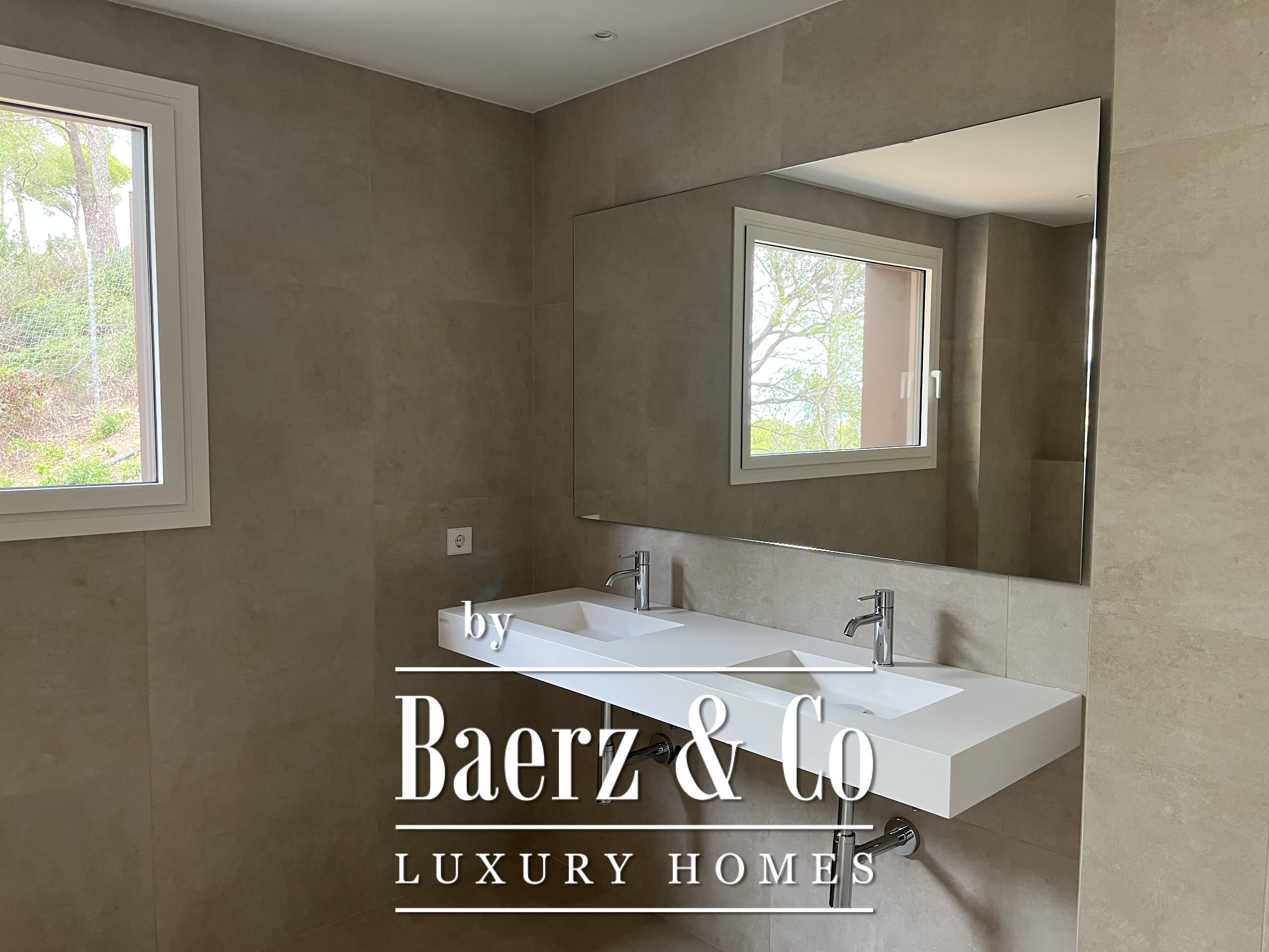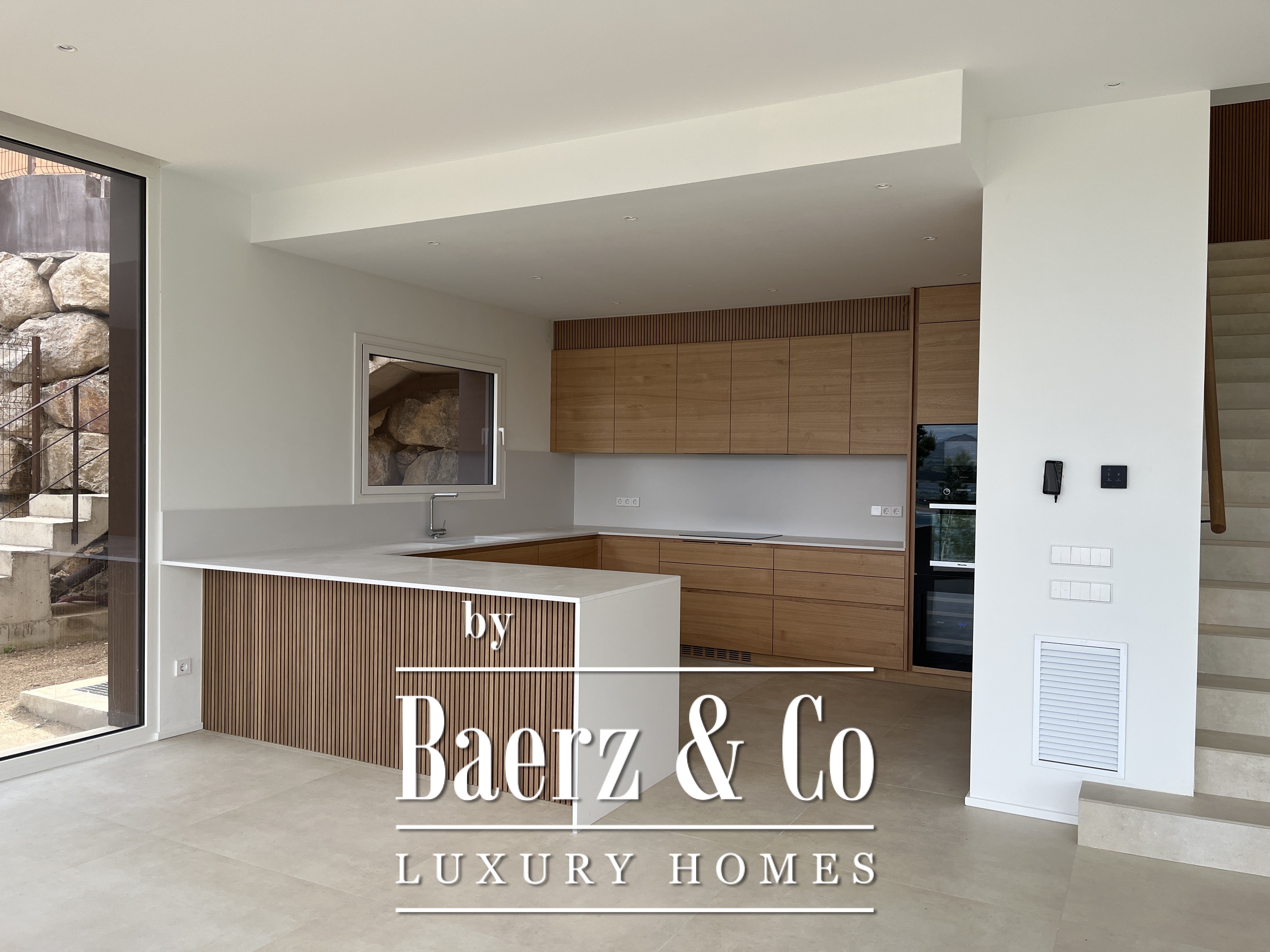 Binnen de 329 m² woonoppervlakte combineert de villa open interieurs met duurzame materialen, waarbij kamerhoge ramen iedere ruimte verbinden met zee en hemel. De architectuur kenmerkt zich door helderheid en ingetogenheid, gericht op individuele wensen, waardoor elke woning net zo uniek is als het omliggende landschap. De villa beschikt over vier slaapkamers, drie badkamers, een zorgvuldig aangelegde tuin, zwembad, privéparkeerplaats en een dakterras. Slimme domotica, beveiligingssystemen, airconditioning en een aparte speelkamer maken het geheel compleet.